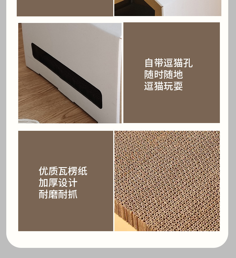 严选瓦楞纸猫抓板猫爪别墅猫屋猫房子纸壳盒猫咪纸箱猫窝四季通用