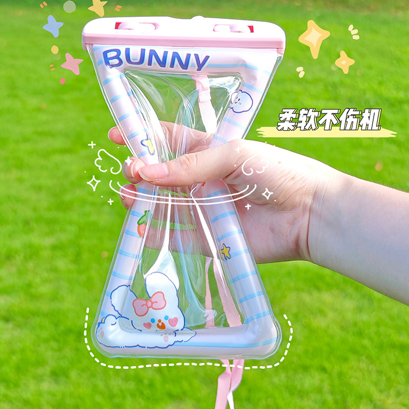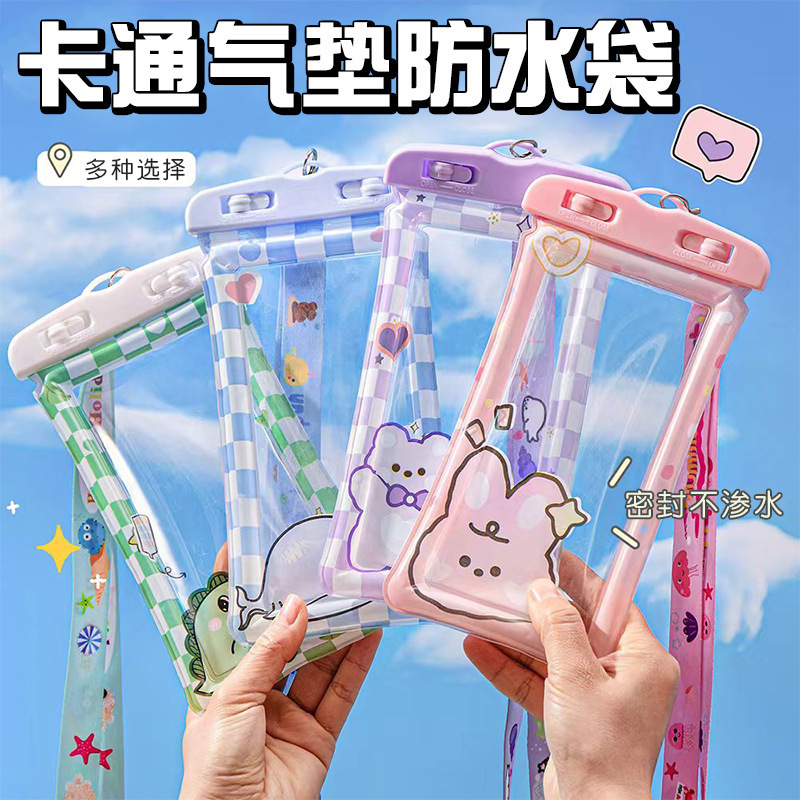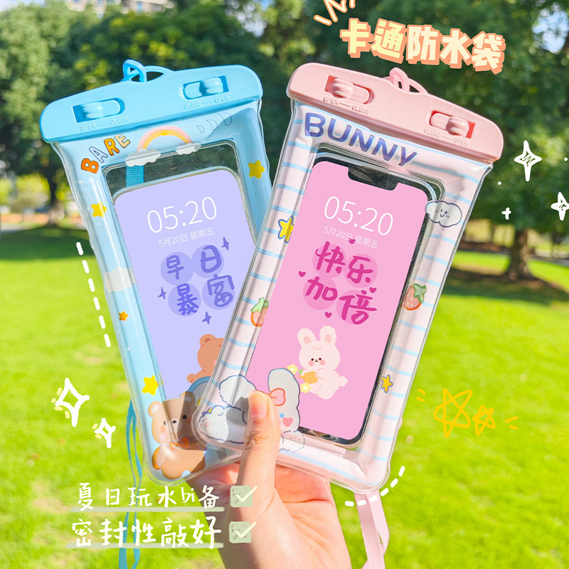 手机防水袋密封可触屏游泳水下拍照潜水漂流带气囊挂脖卡通手机套