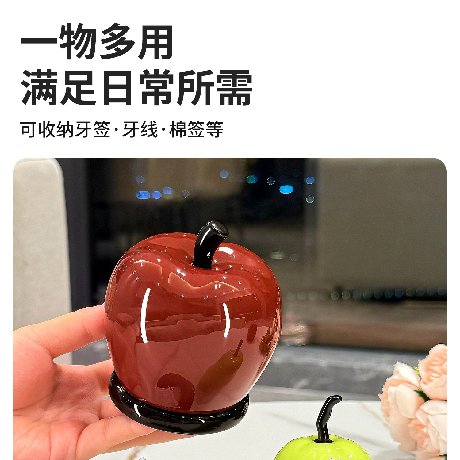 新款创意苹果牙线牙签收纳盒牙签筒家用多功能棉签盒高颜值牙签盒