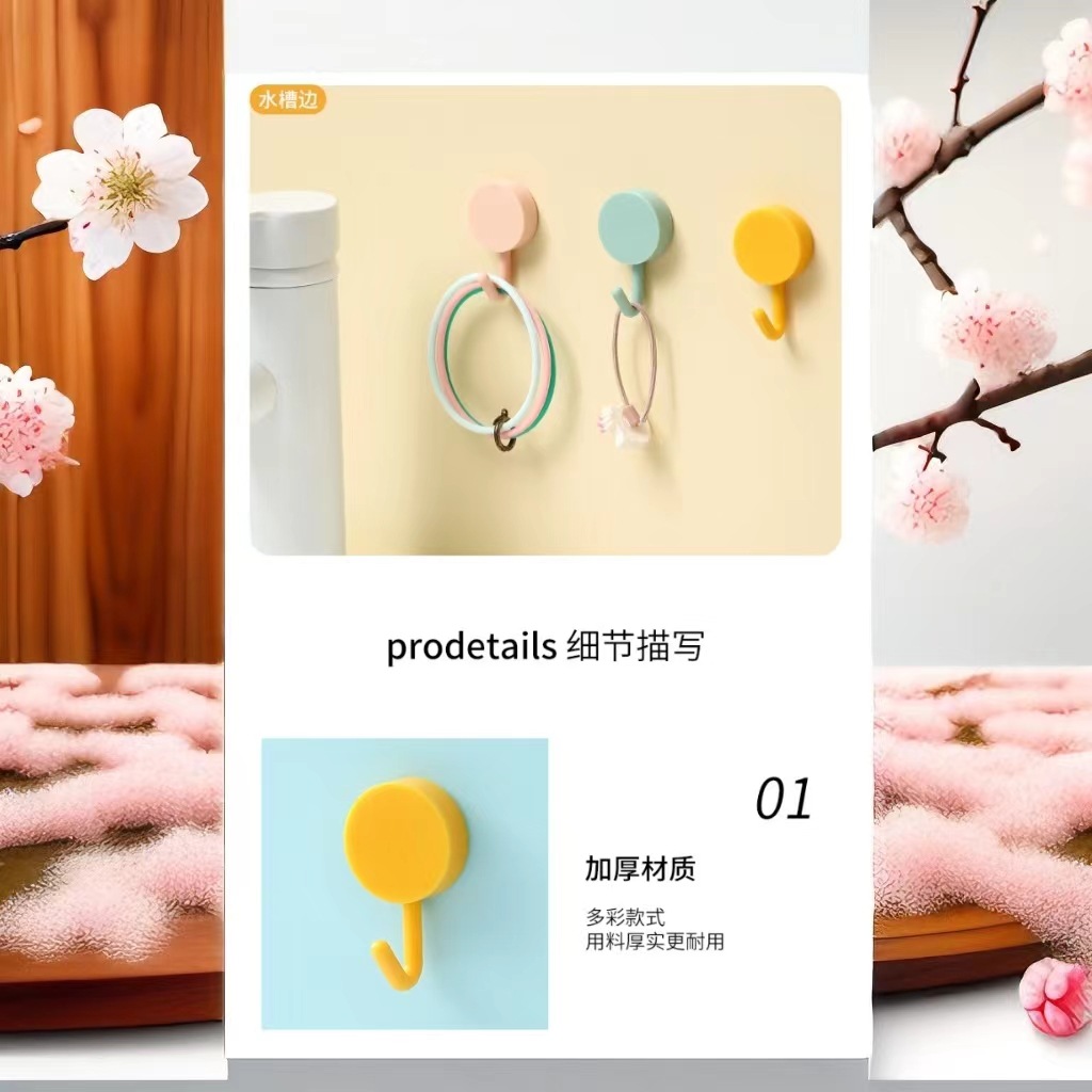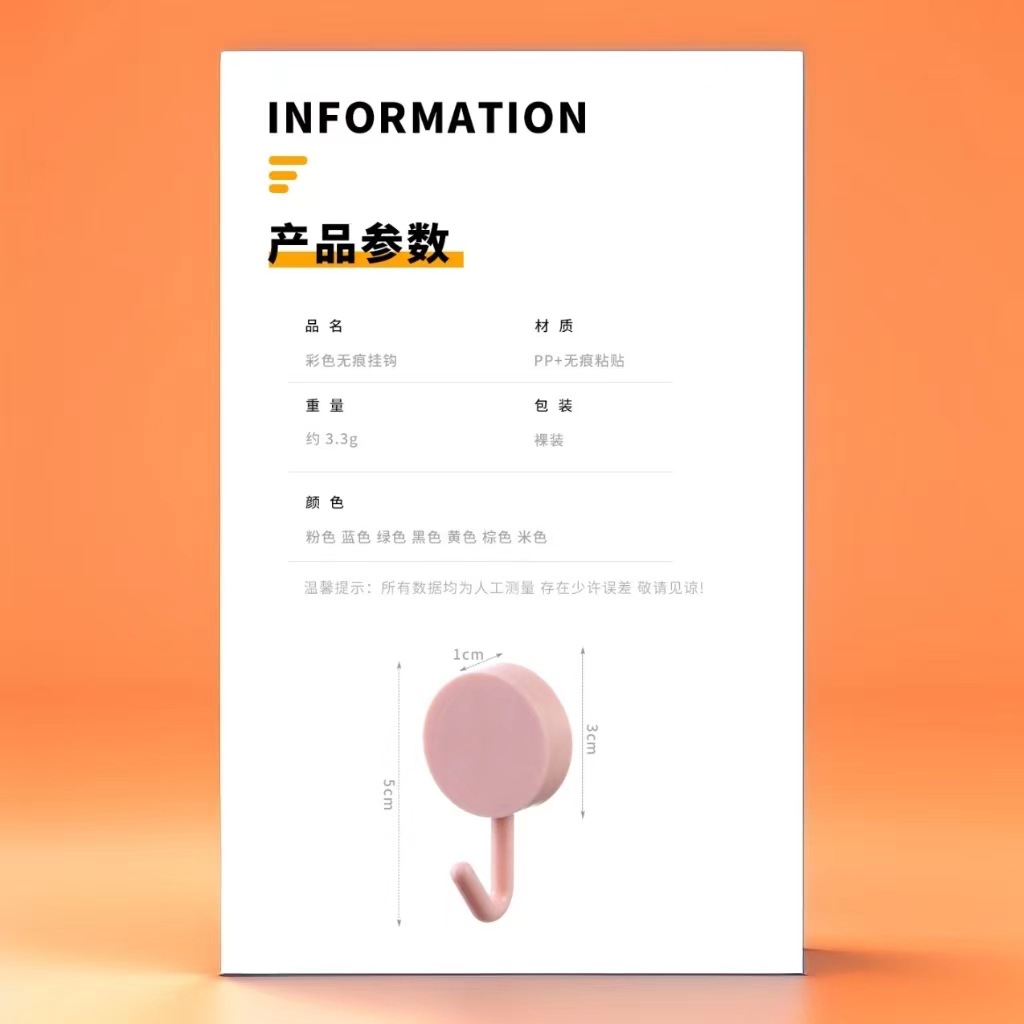 马卡龙彩色挂钩免打孔无痕强力粘钩创意家用墙壁贴钩衣圆形小挂钩