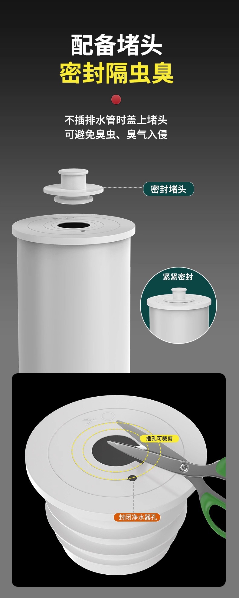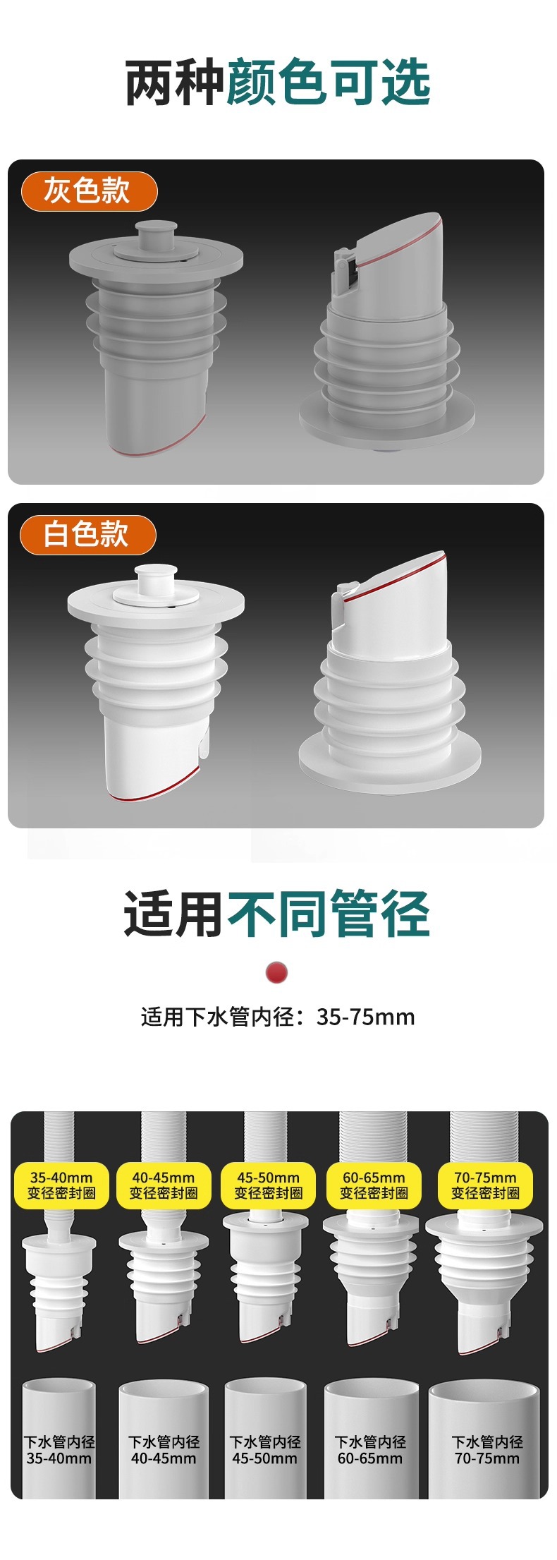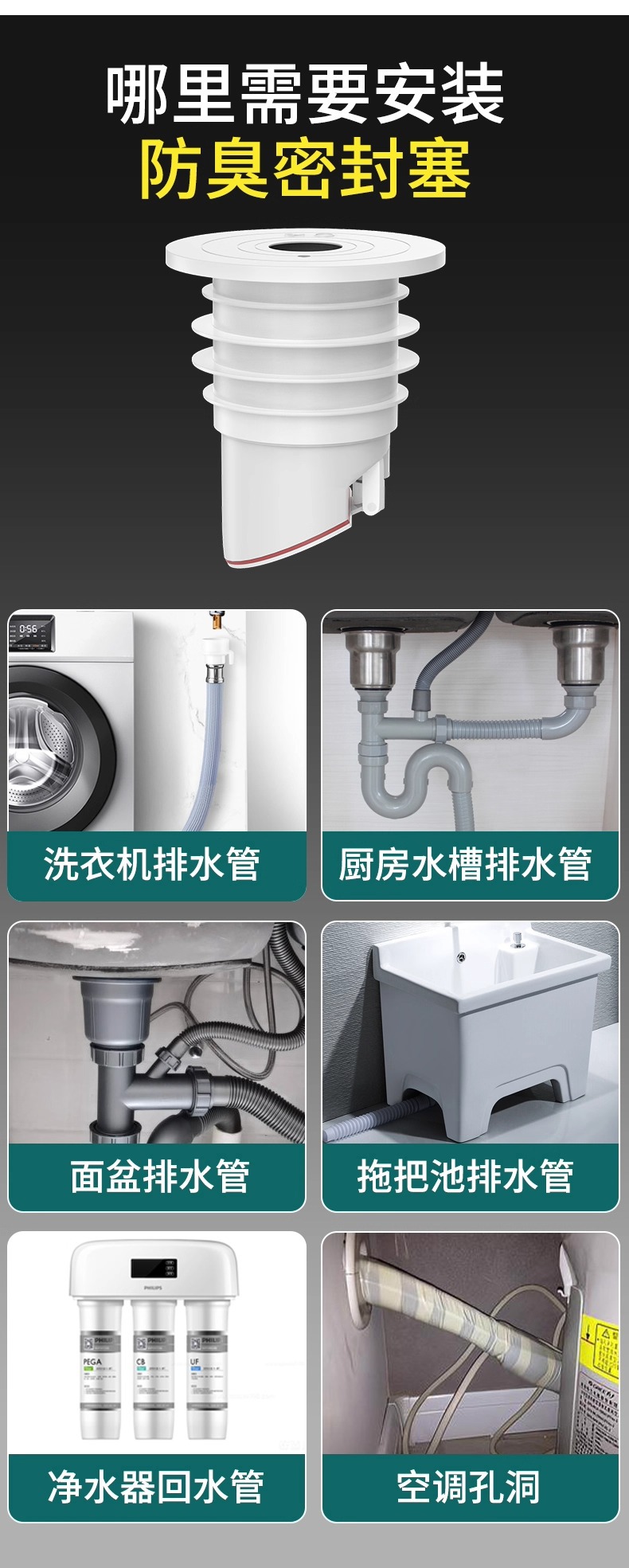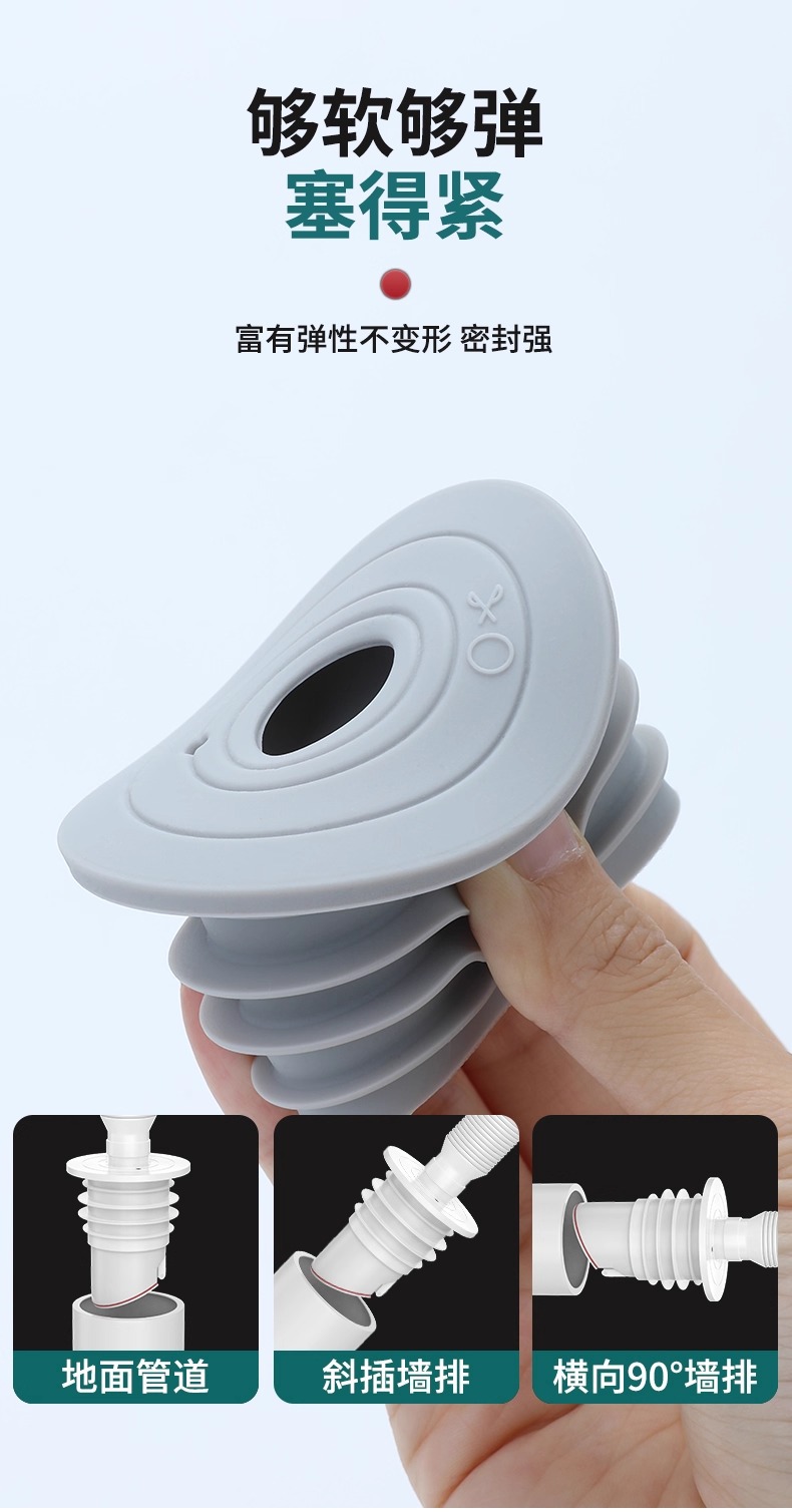 下水管道防臭密封圈硅胶塞厨房洗手盆洗衣机排水管堵口防返臭