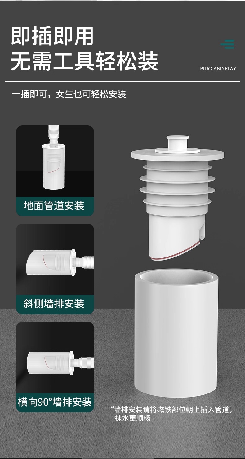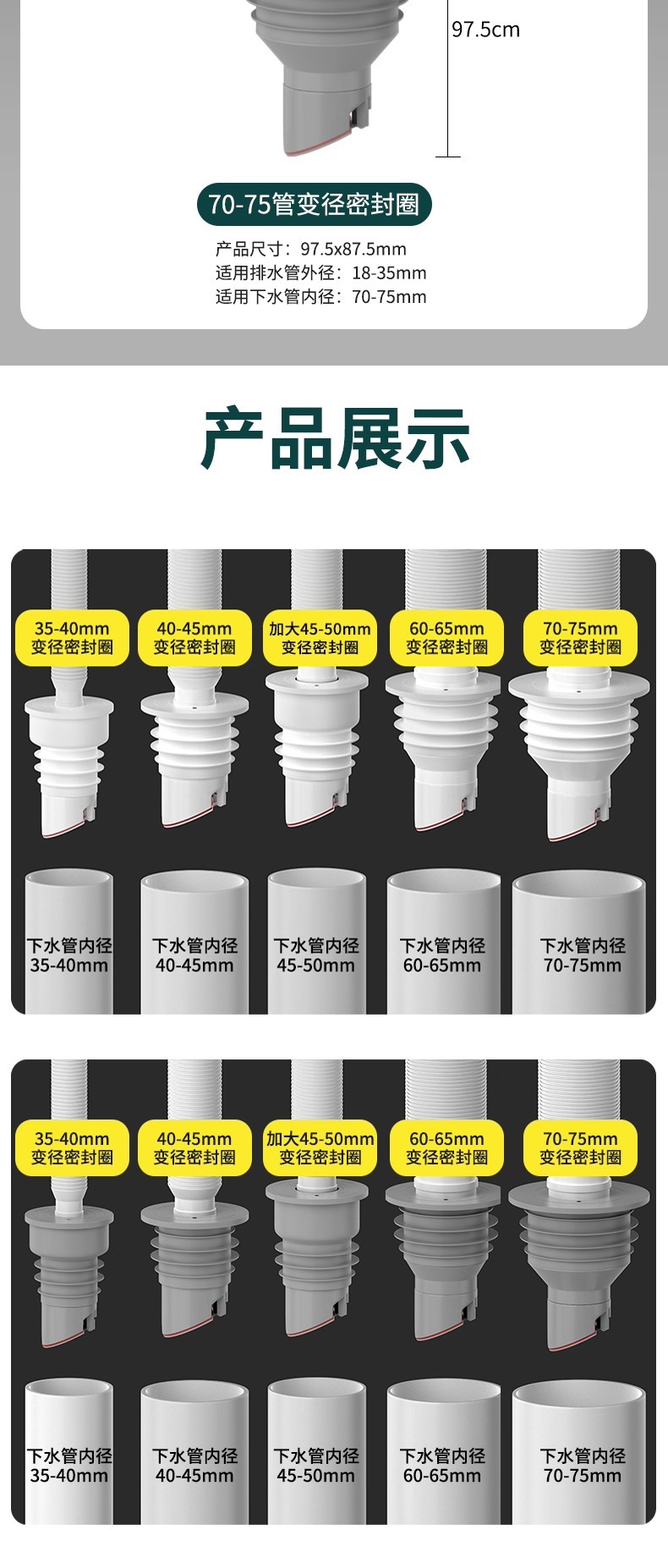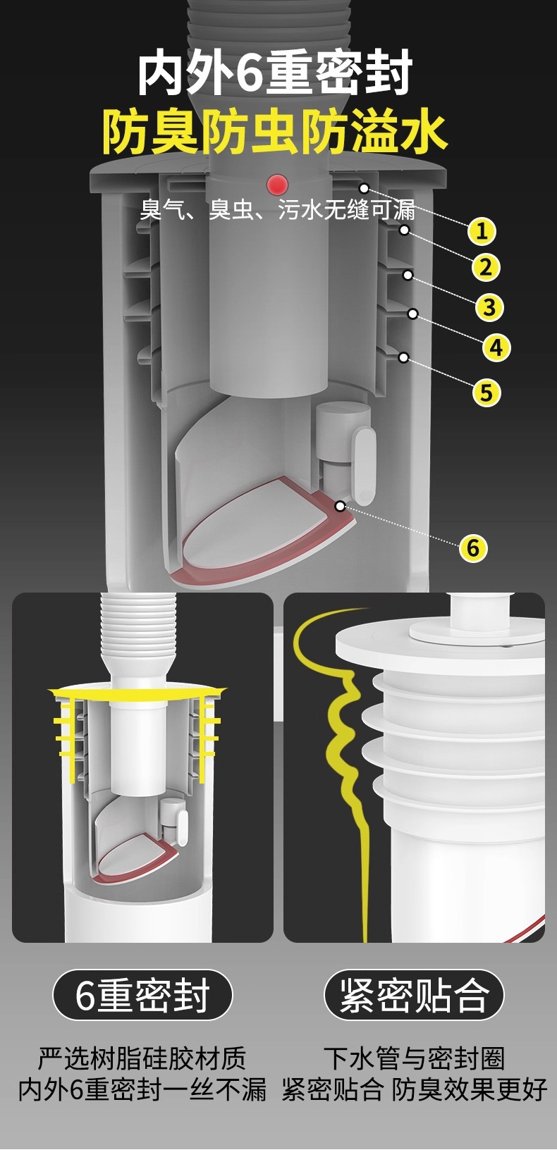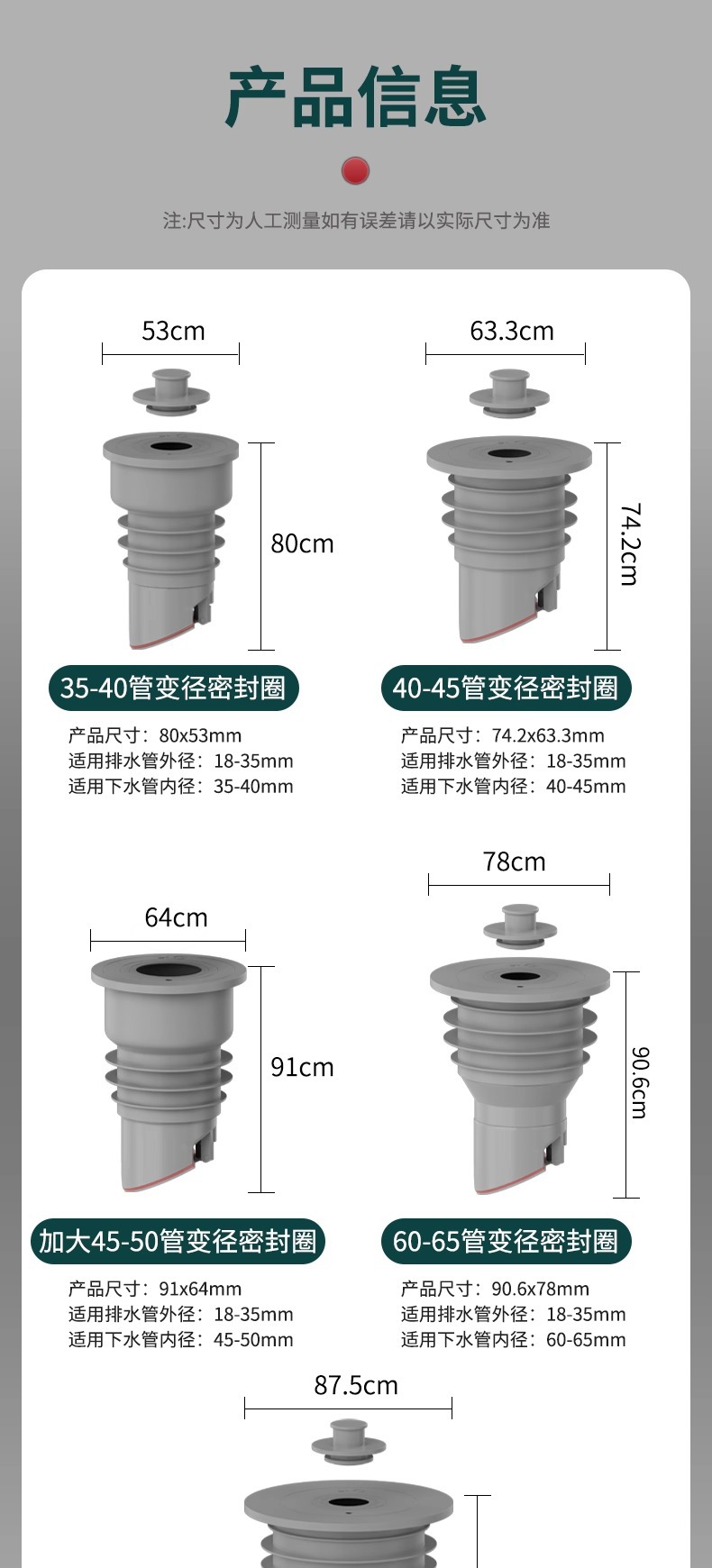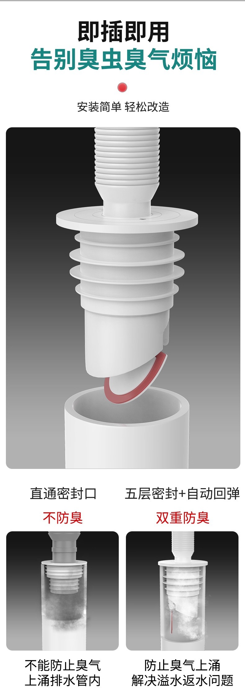 下水管道防臭密封圈硅胶塞厨房洗手盆洗衣机排水管堵口防返臭
