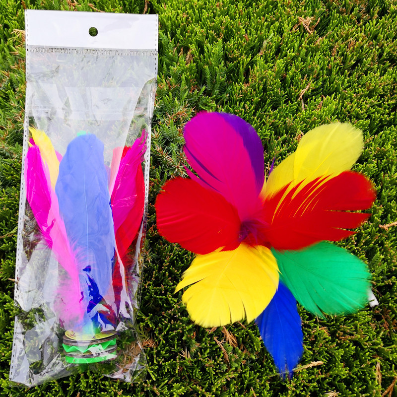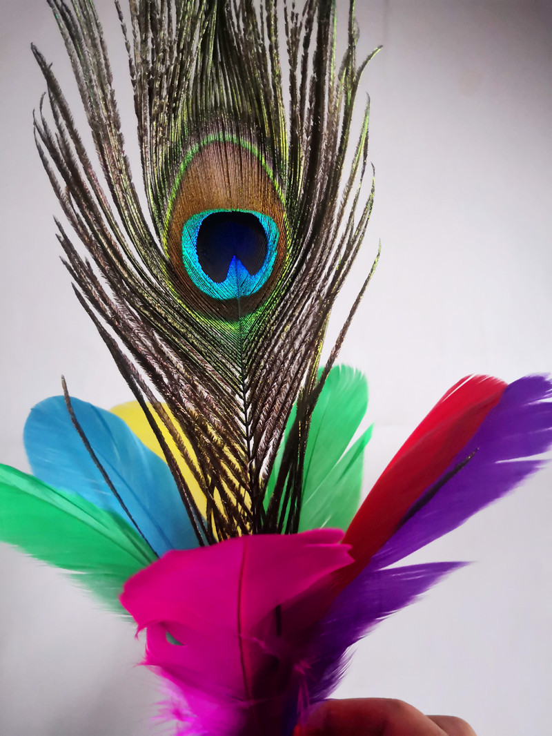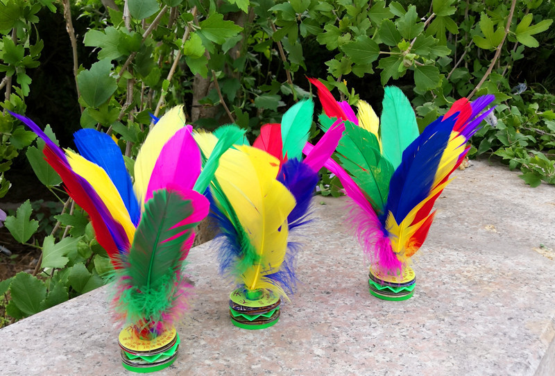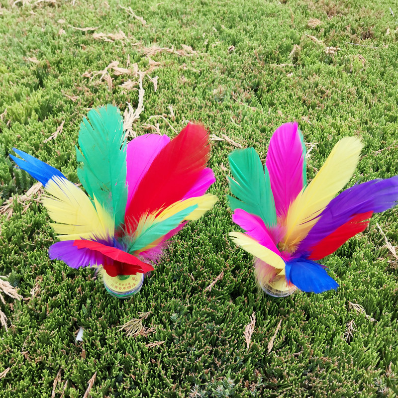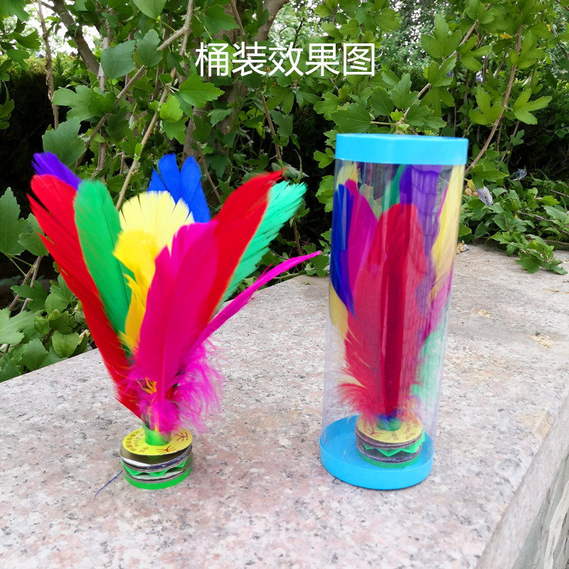 带孔雀毛彩色荷花毽子羽毛比赛用鹅毛宽毽球厂家批发