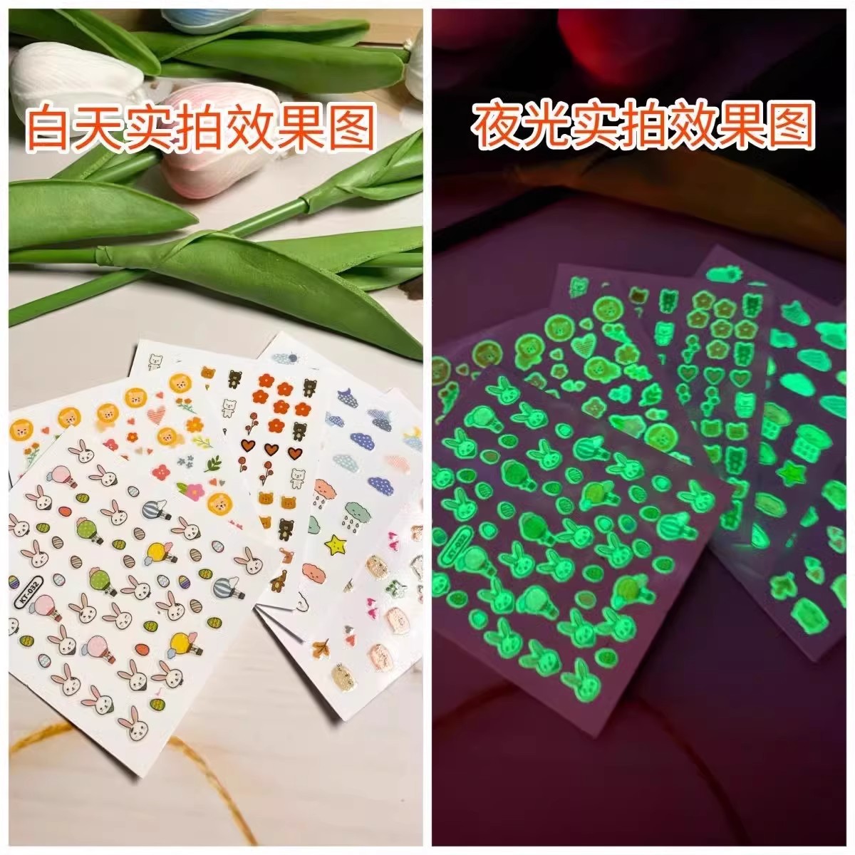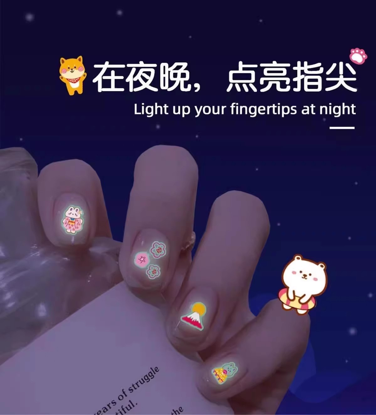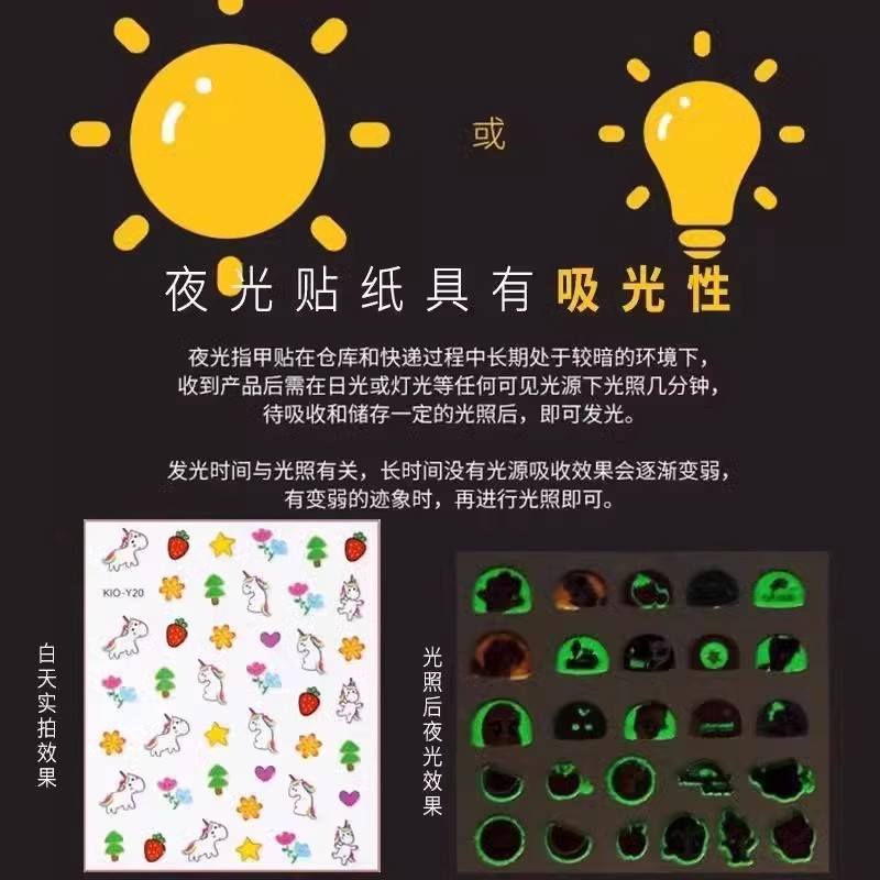 夜光儿童指甲贴小女孩美甲贴纸安全发光可爱环保防水公主卡通ins