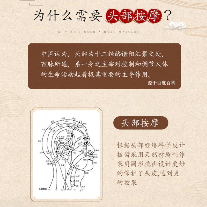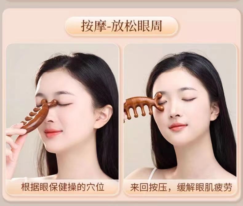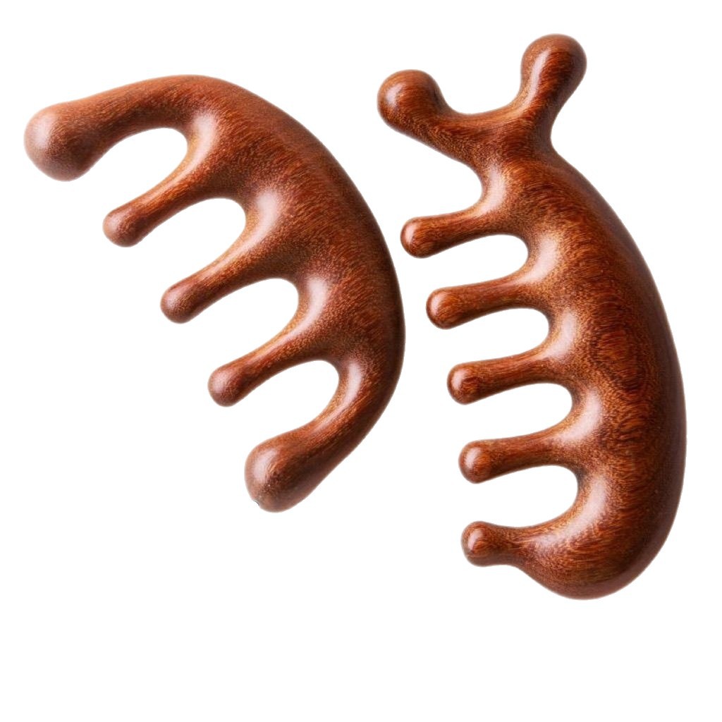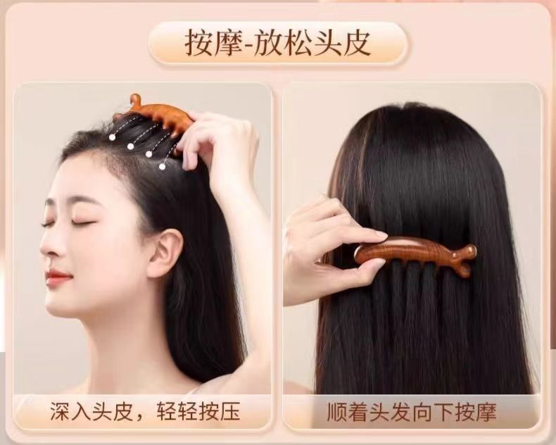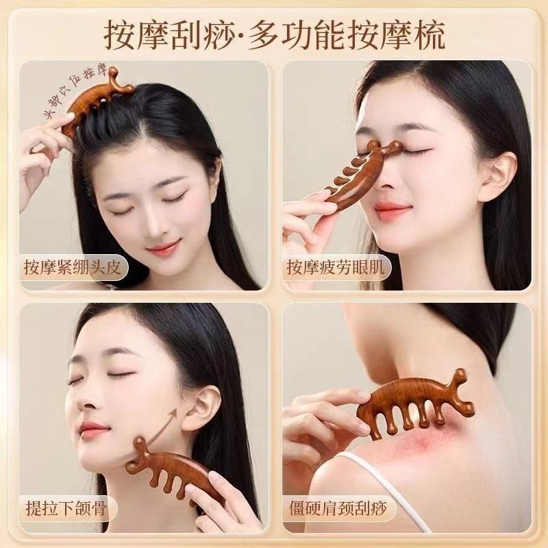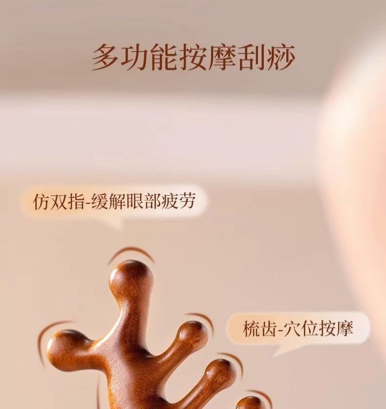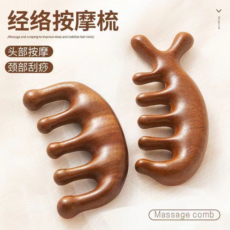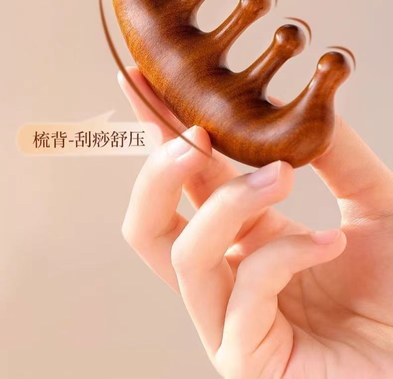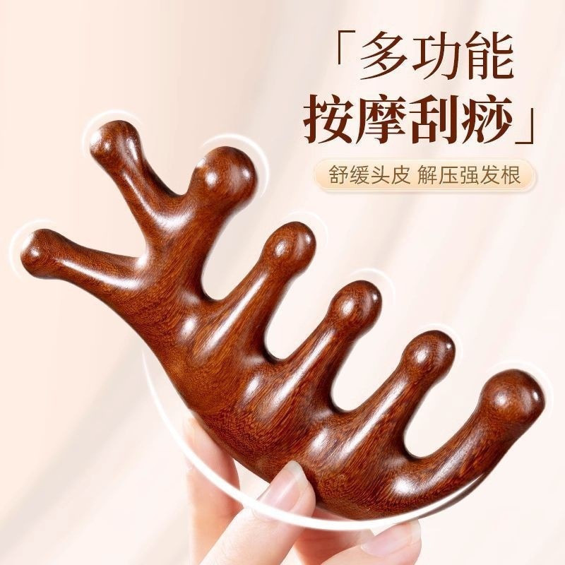 按摩梳檀木经络防穴位头部按摩脱发通用五指按摩梳子头颈刮痧