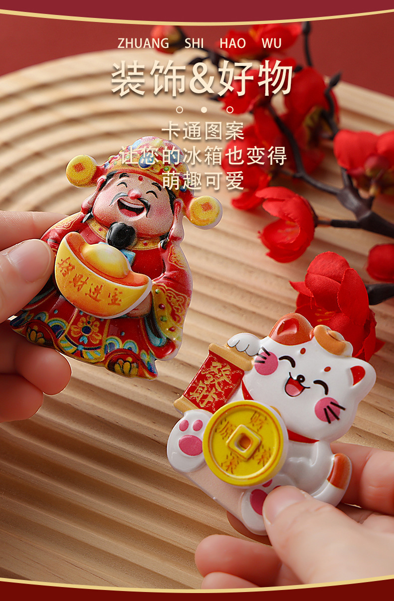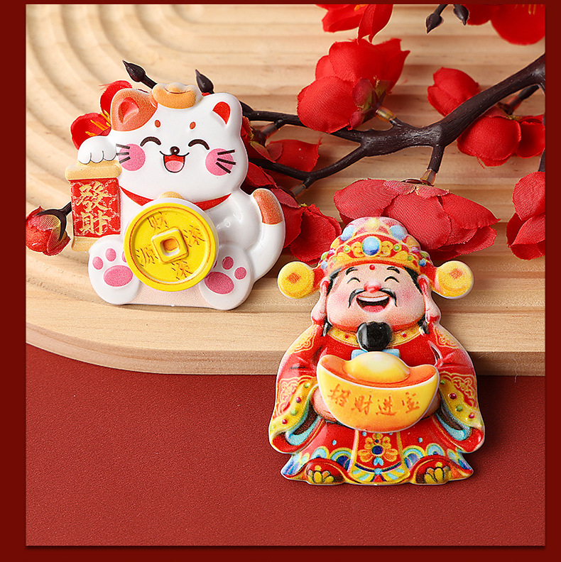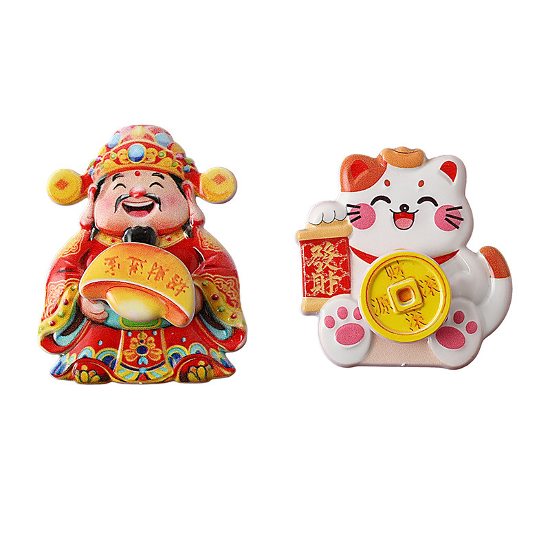 摇头财神磁吸可旋转冰箱贴摇摆财神爷猫装饰喜庆摆件