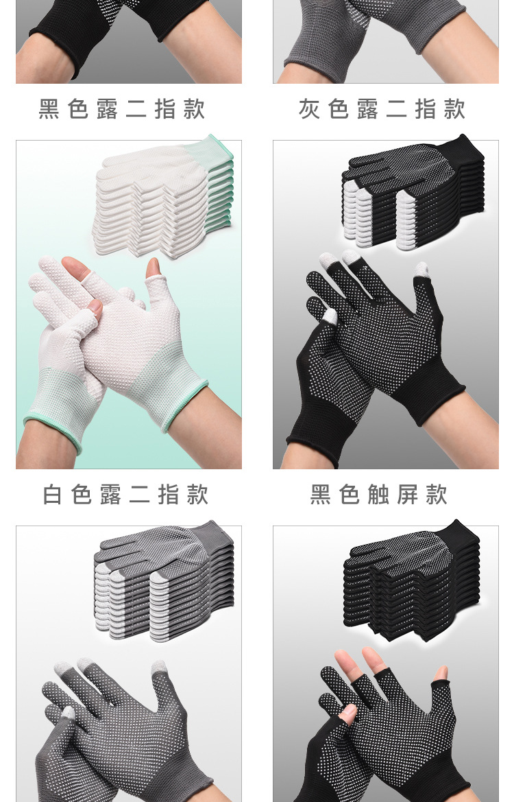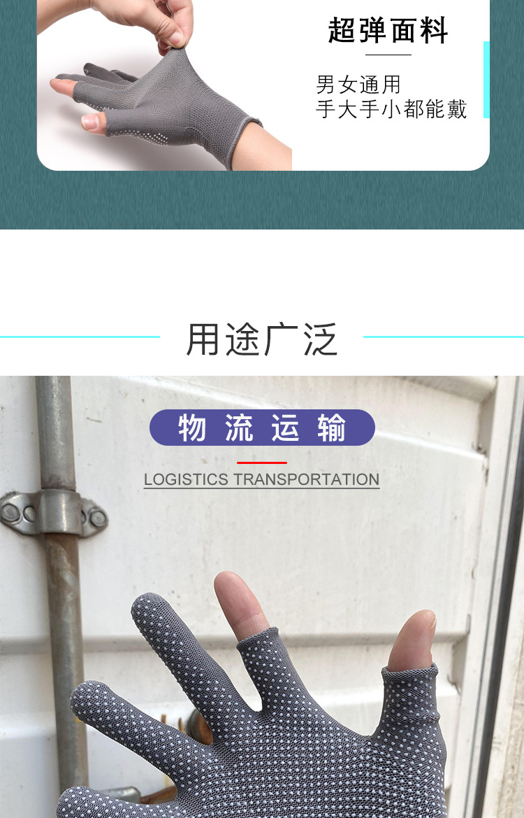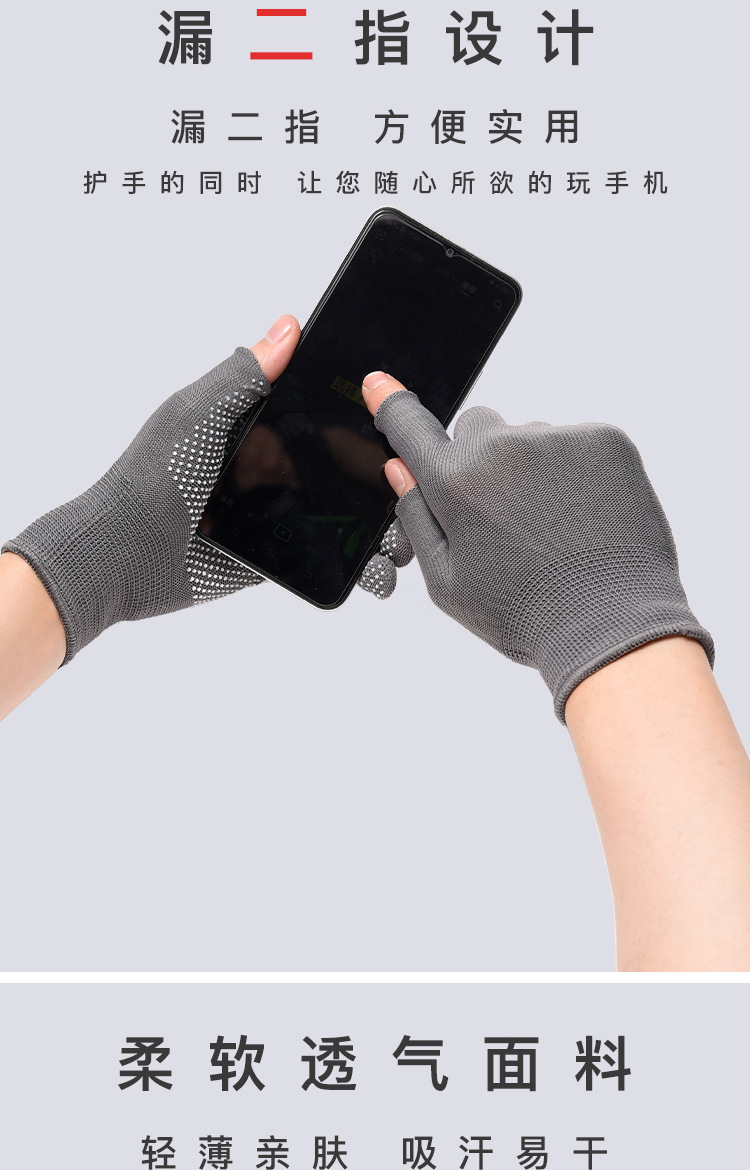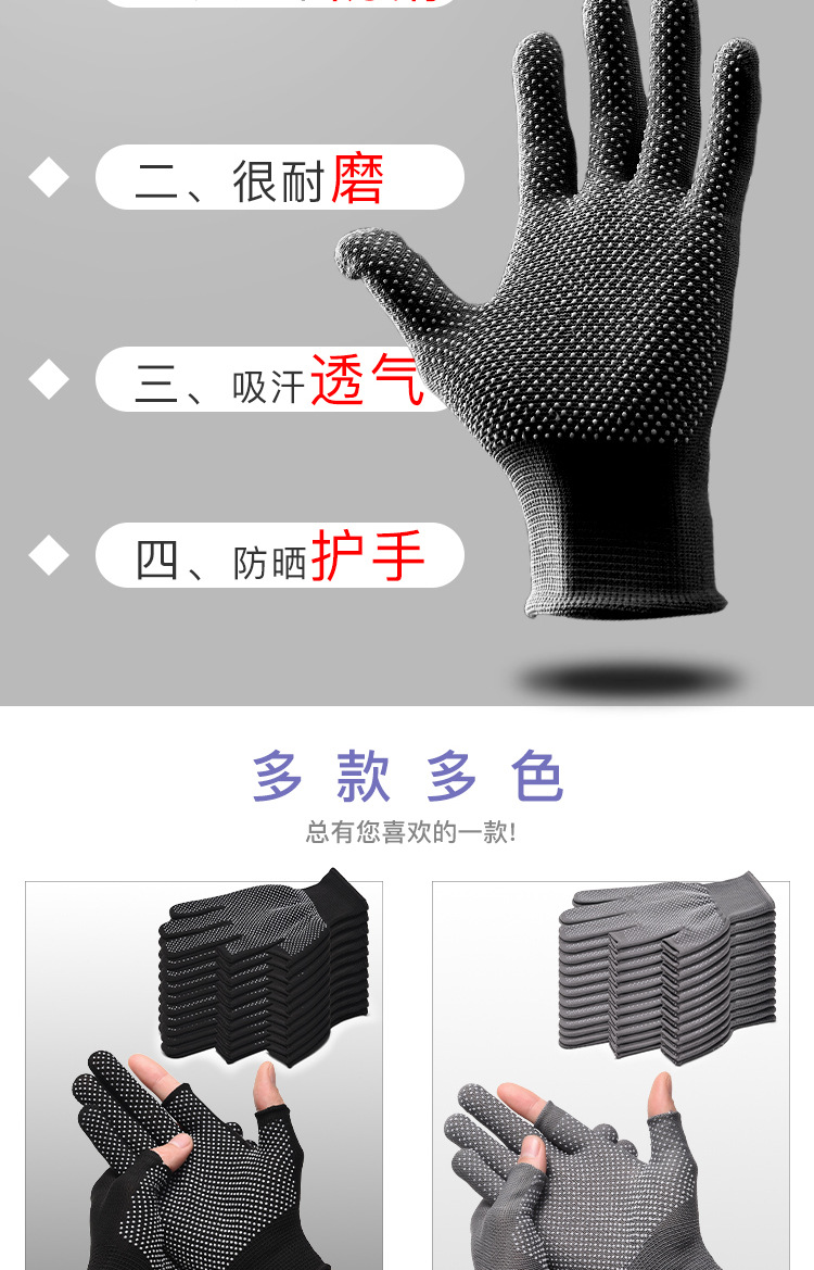 薄款手套女夏季防晒采茶劳保点胶防滑二指半指户外男露漏两指触屏