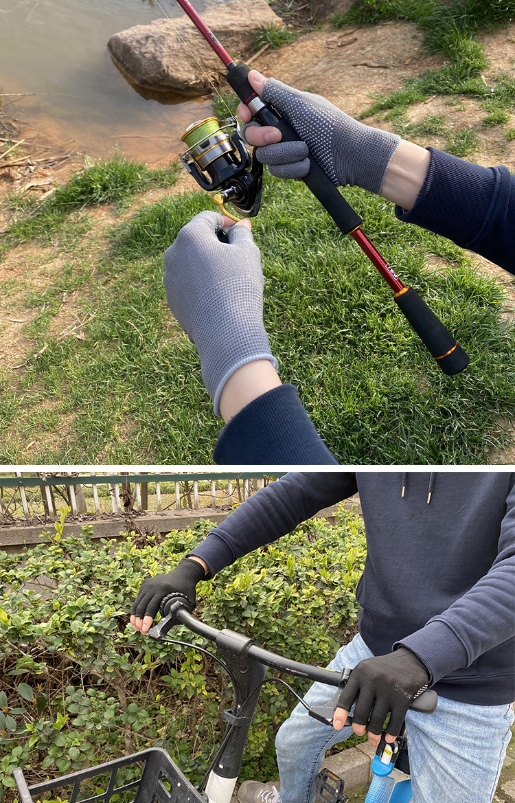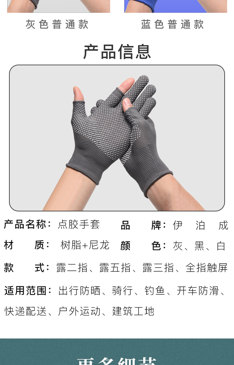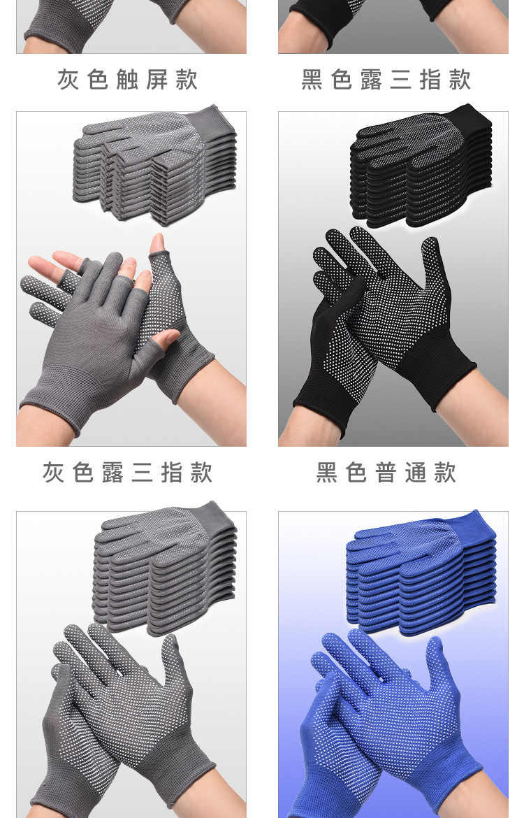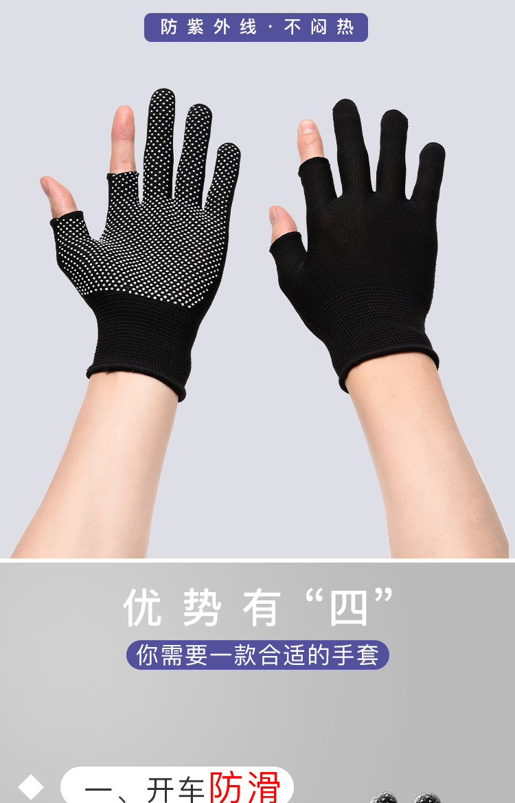 薄款手套女夏季防晒采茶劳保点胶防滑二指半指户外男露漏两指触屏