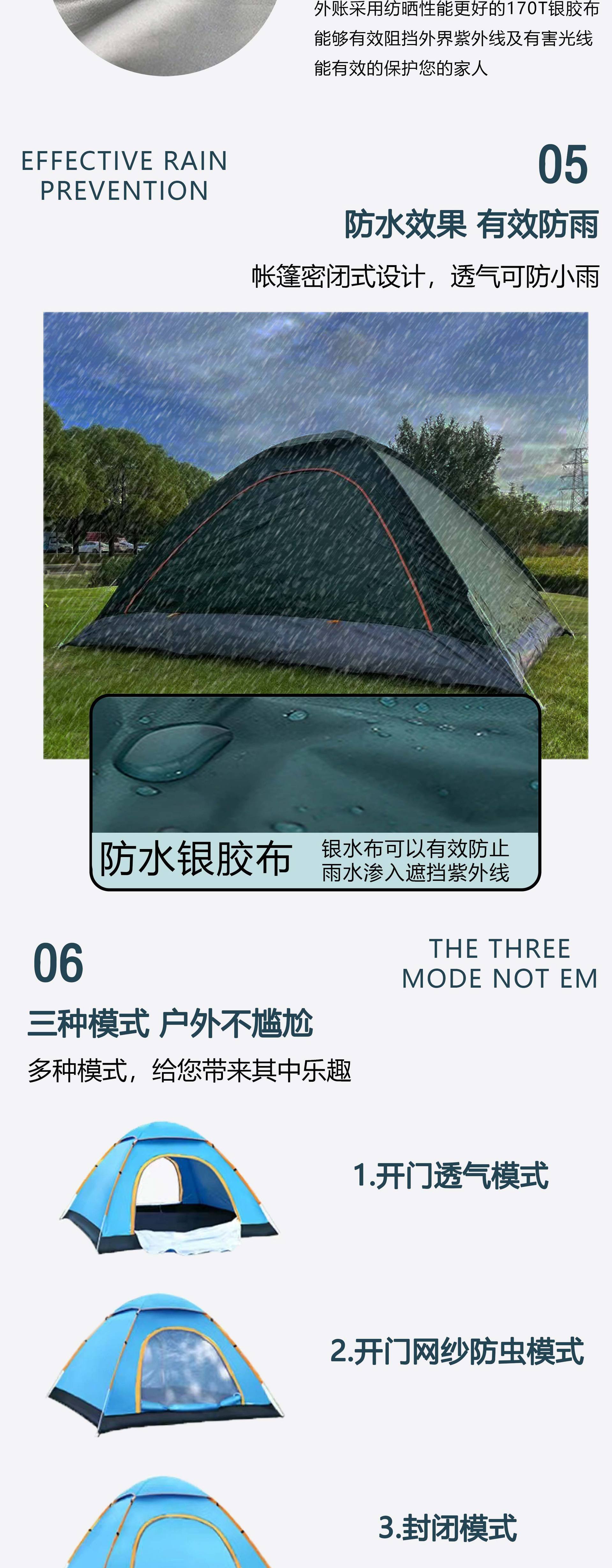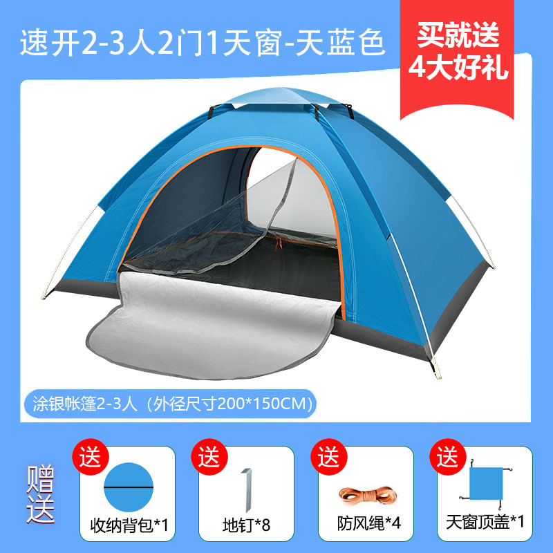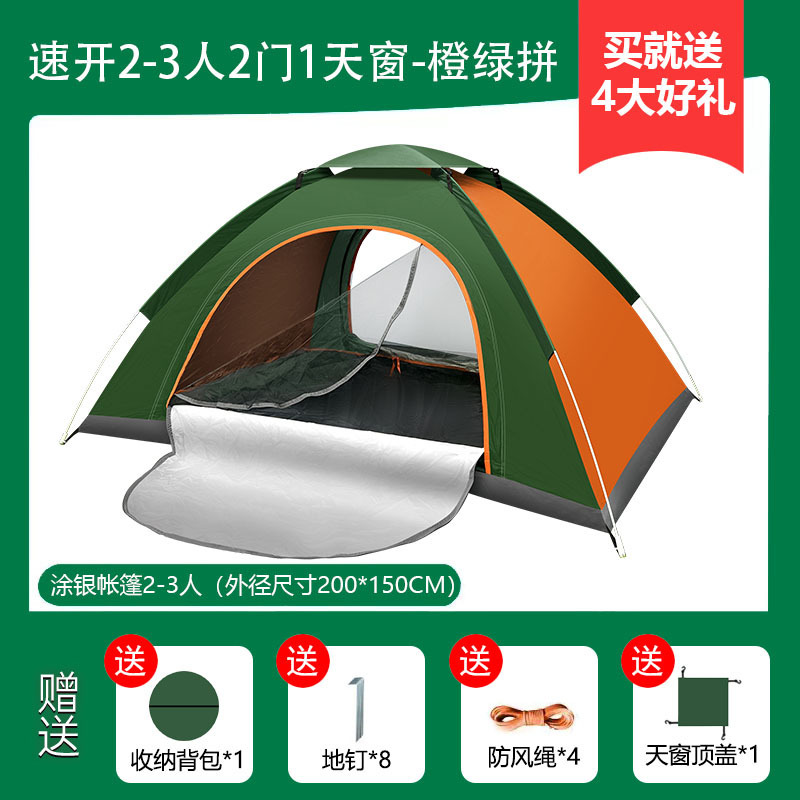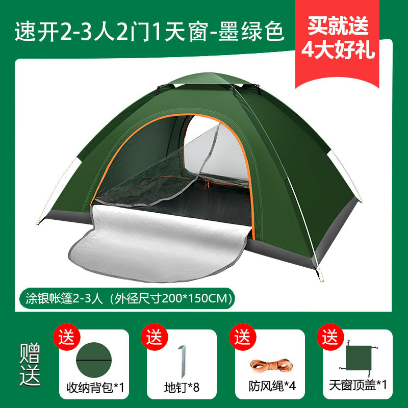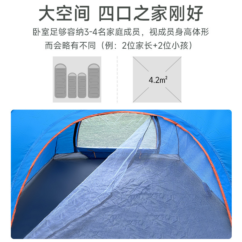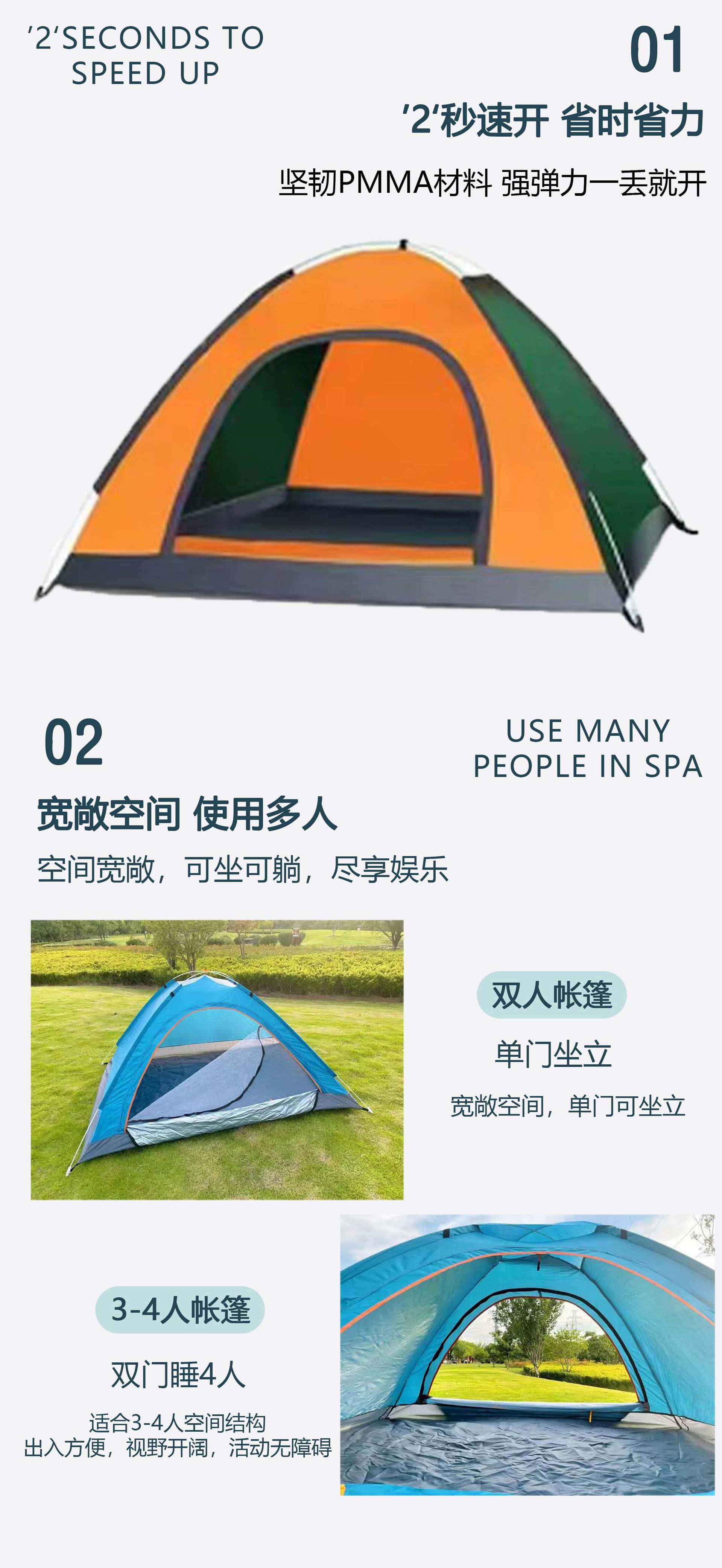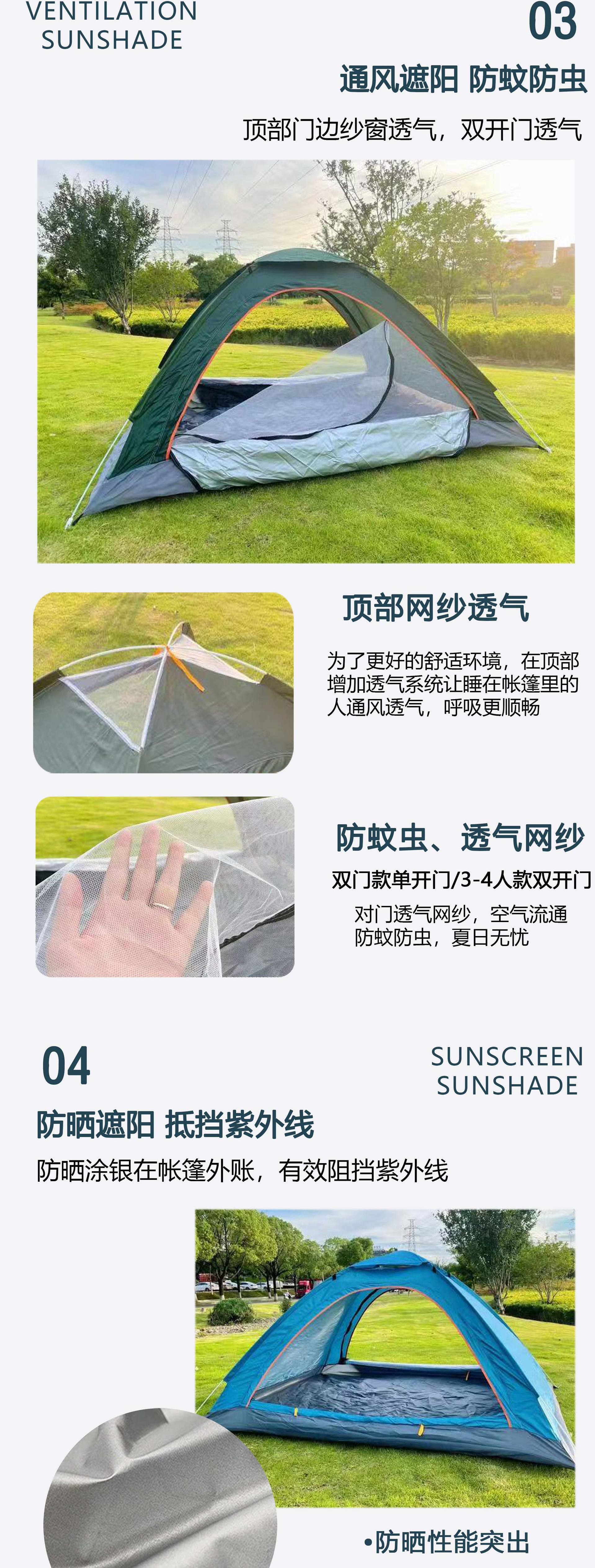旷野行小型帐篷双人3-4人自动抛账批发野营露营沙滩防雨速开帐篷