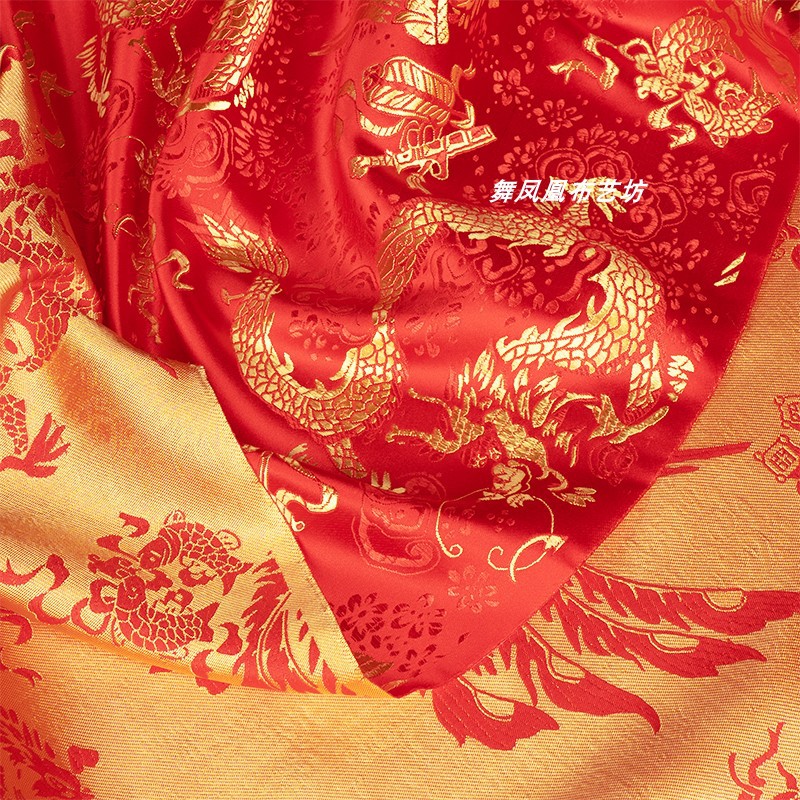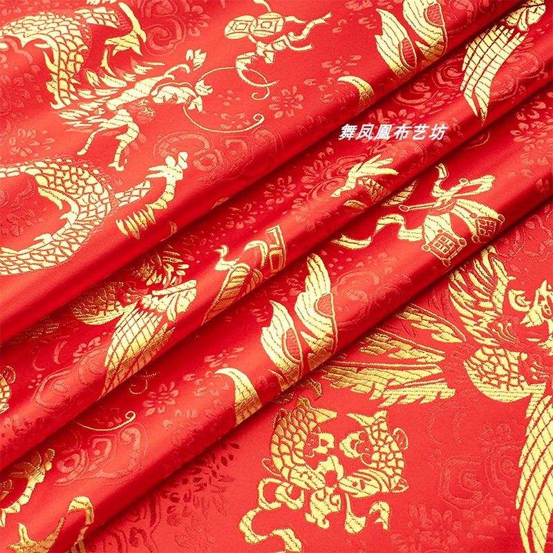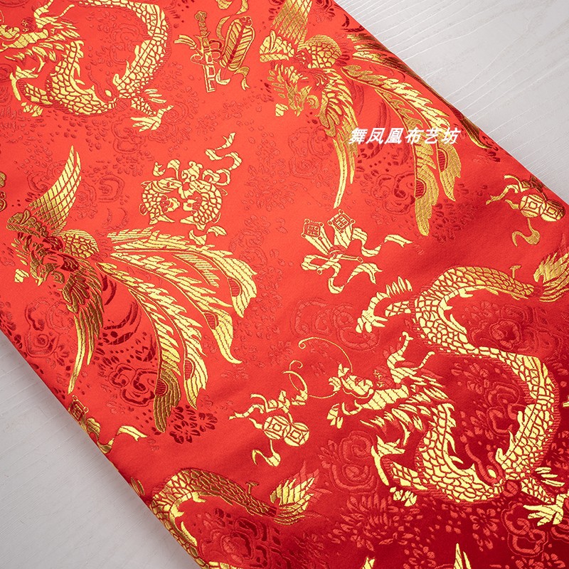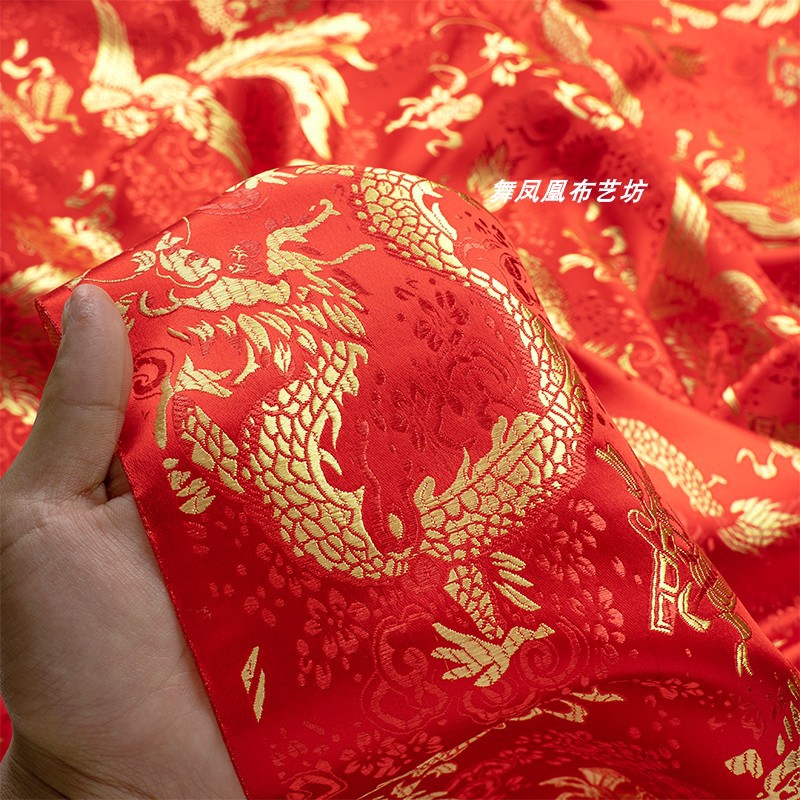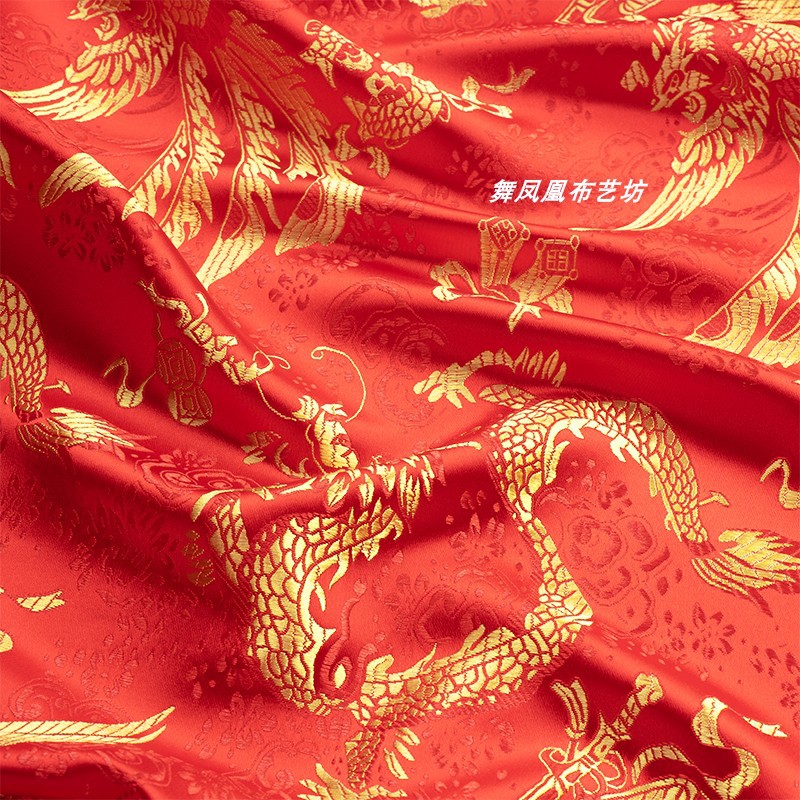 120CM龙凤呈祥织锦缎提花面料 中国红喜庆汉服仿宋锦丝绸垂顺布料
