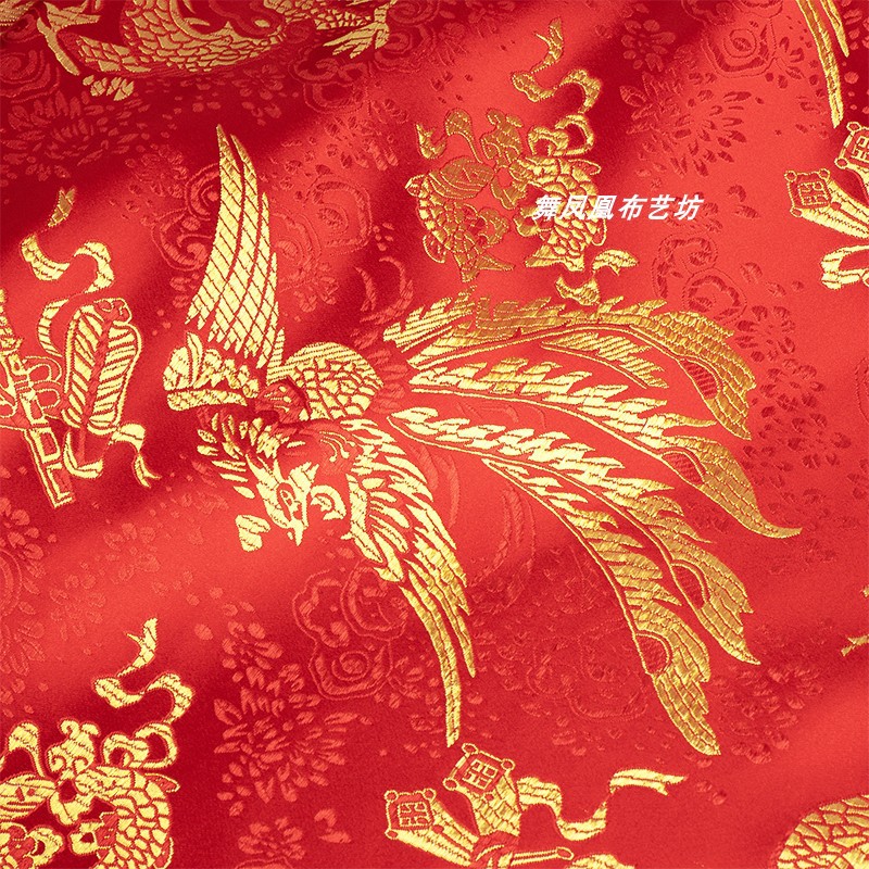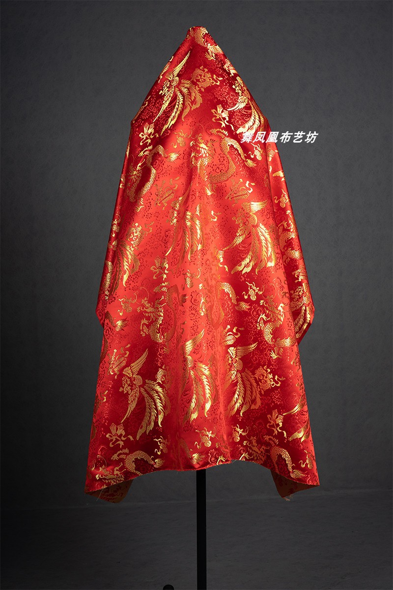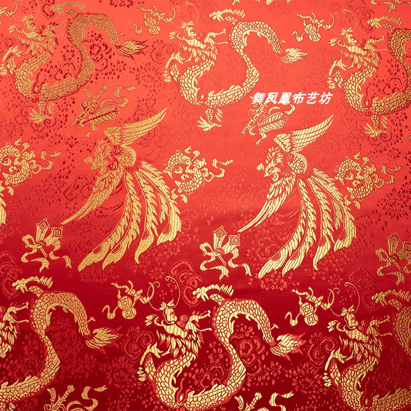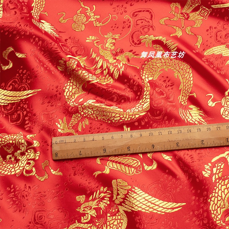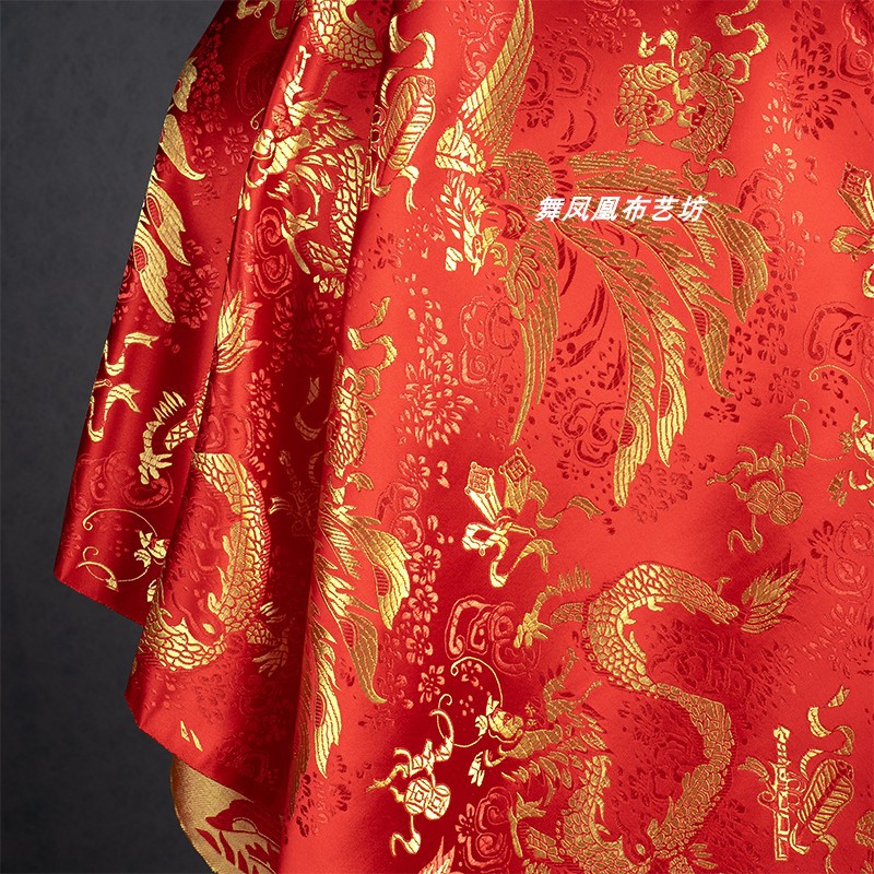 120CM龙凤呈祥织锦缎提花面料 中国红喜庆汉服仿宋锦丝绸垂顺布料