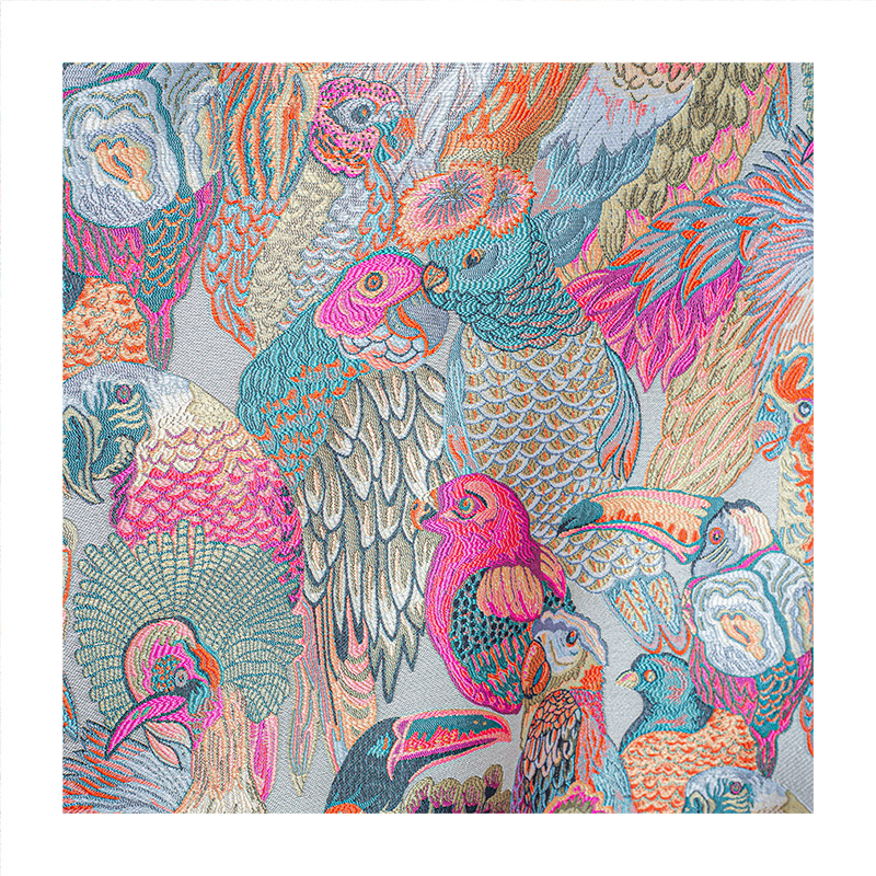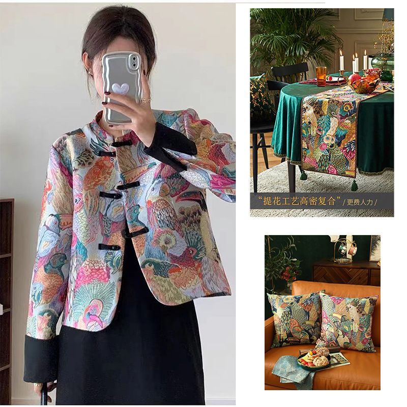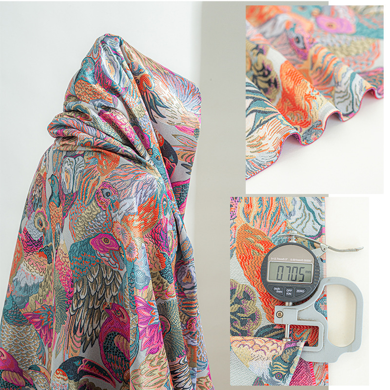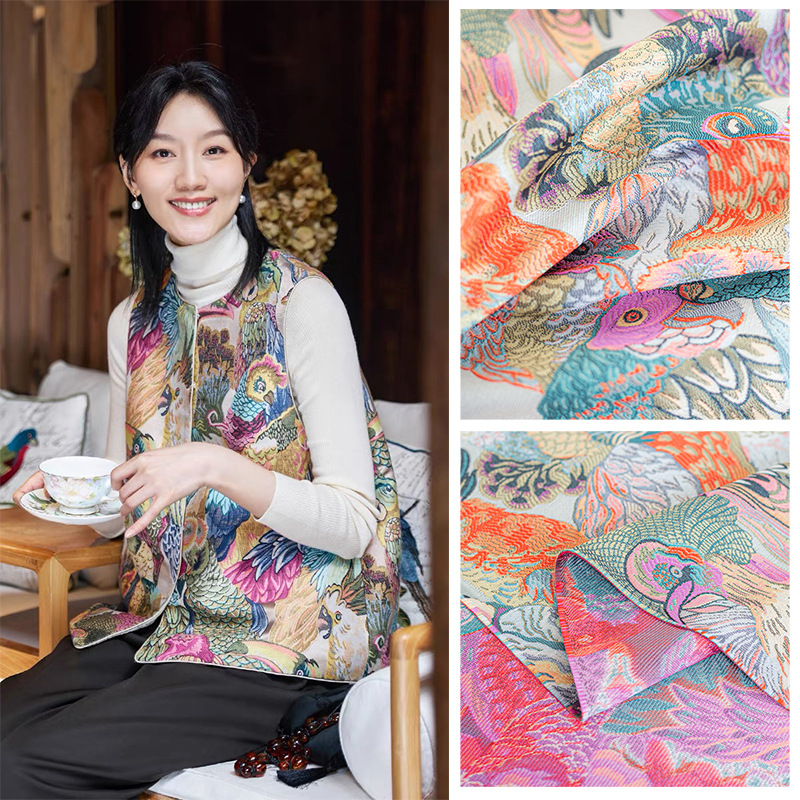 国潮 七彩鹦鹉提花织锦缎面料 外套马甲裙子抱枕仿宋锦提花布料