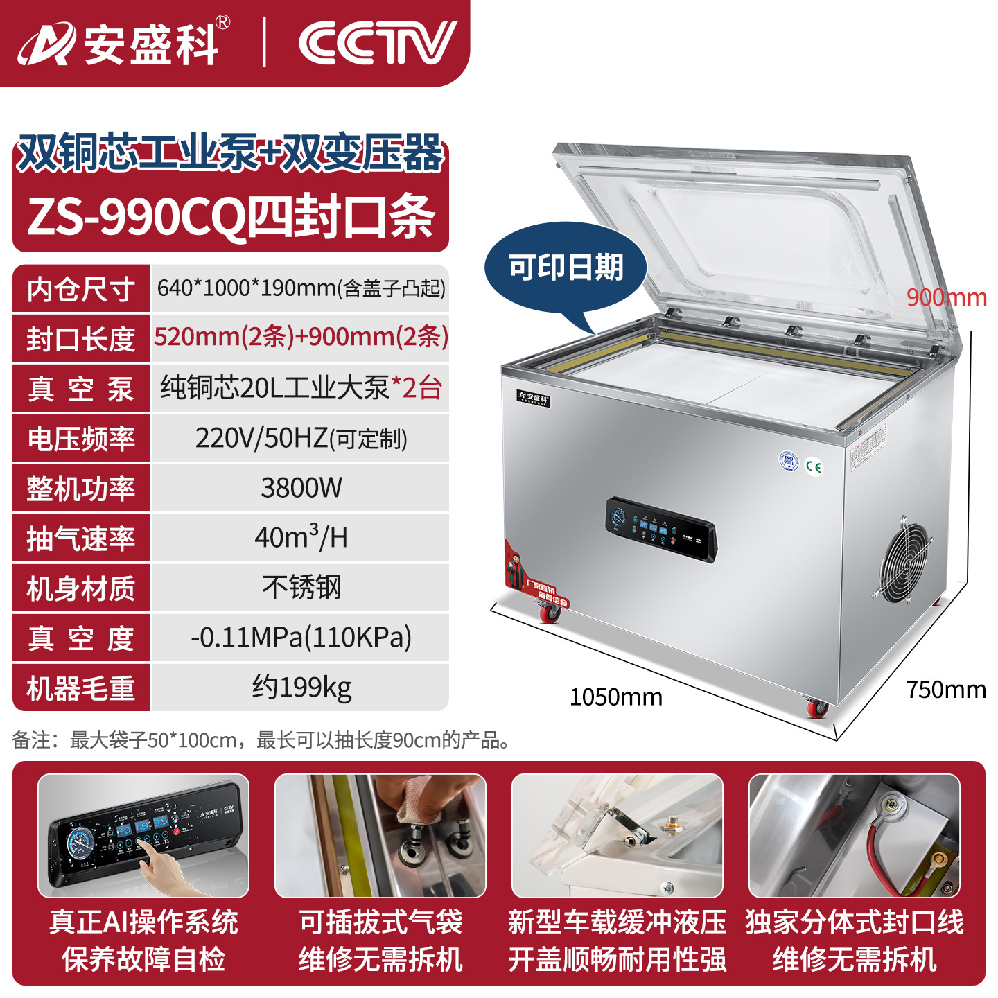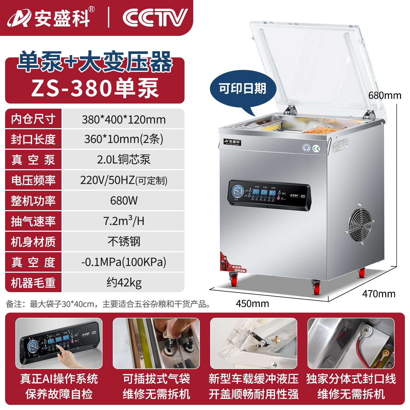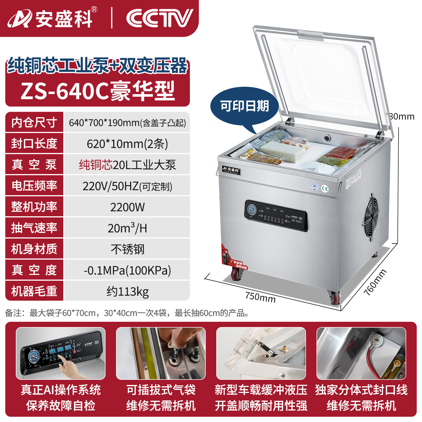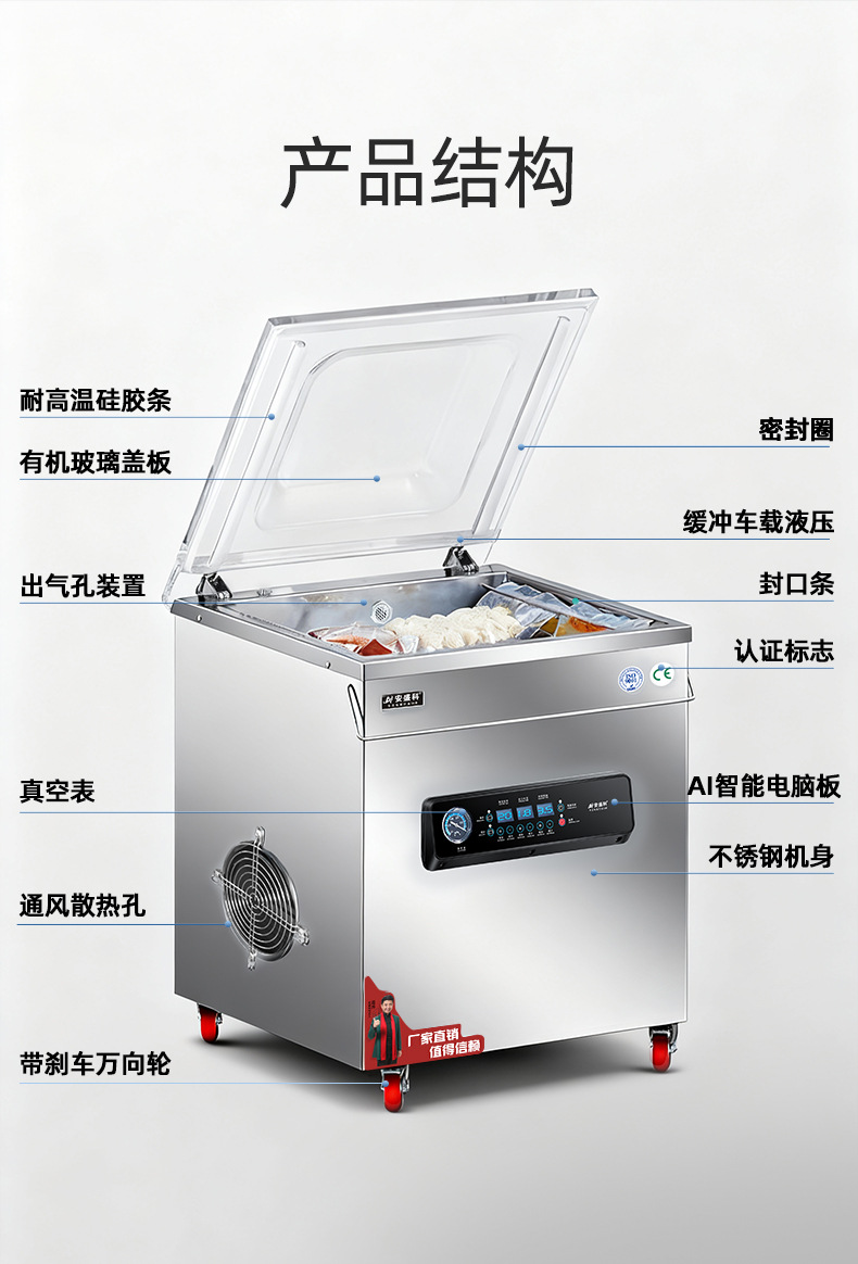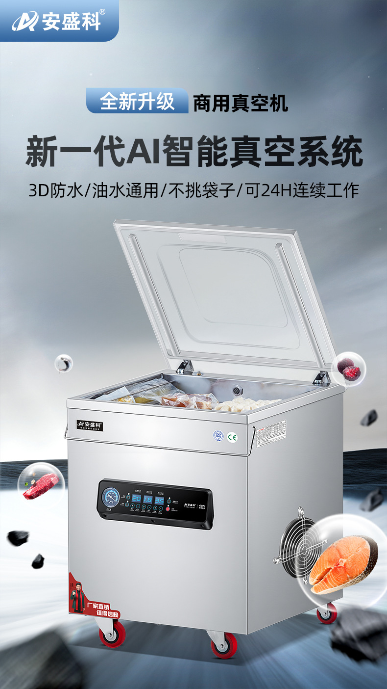 安盛科真空机食品包装机熟食肉类海鲜全自动大型商用抽空机封口机
