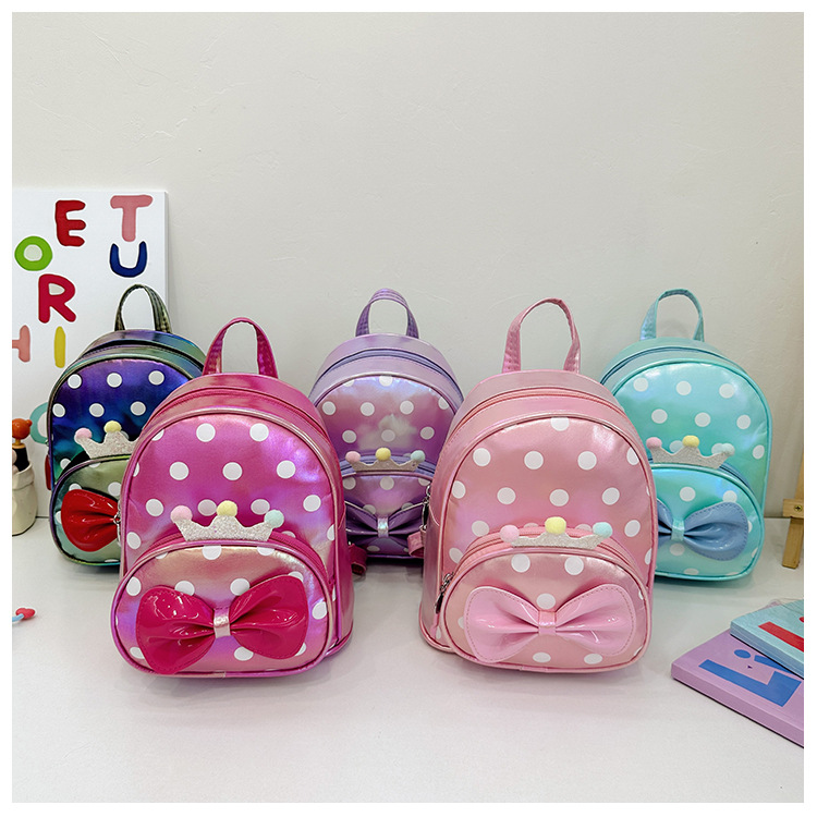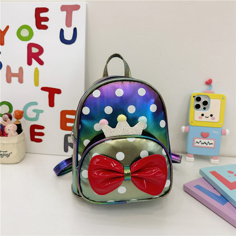 波点蝴蝶结皇冠儿童包包可爱女童双肩包小女孩时尚洋气小书包背包