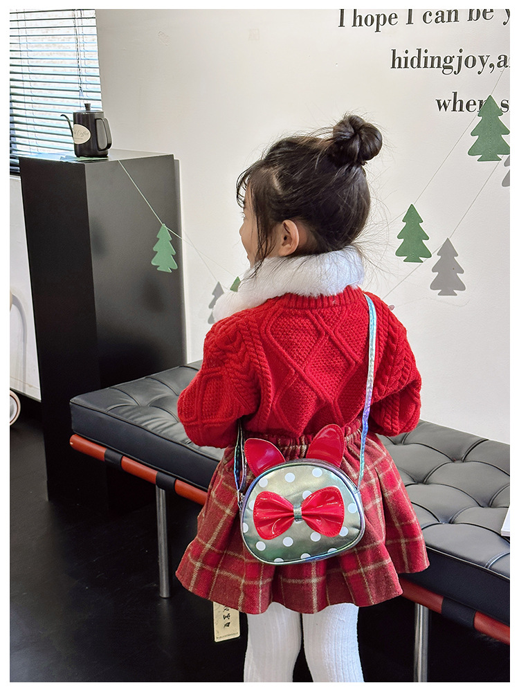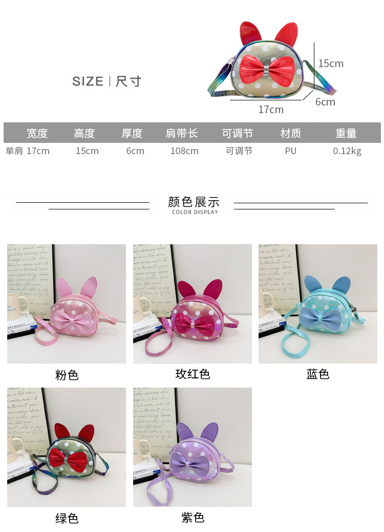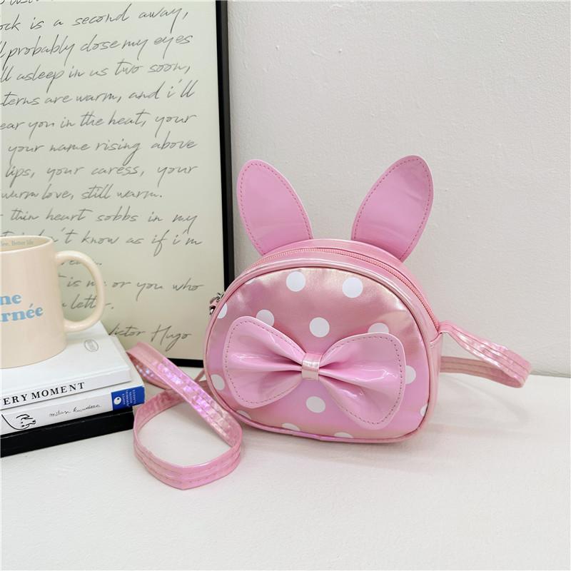 新款斜挎包儿童包包单肩兔子耳朵蝴蝶结波点小女孩时尚洋气可爱卡