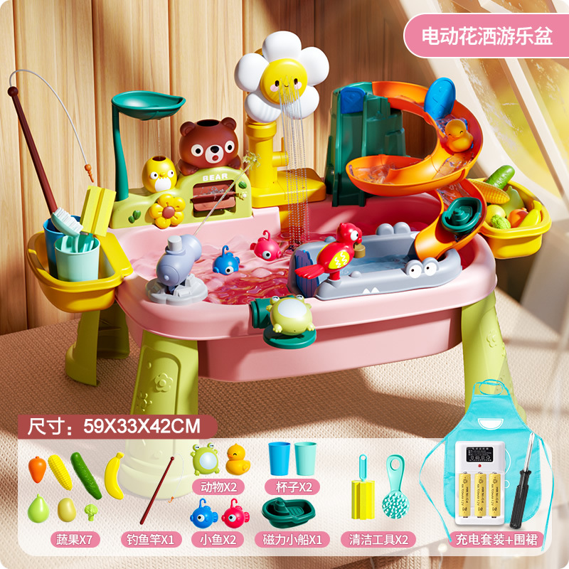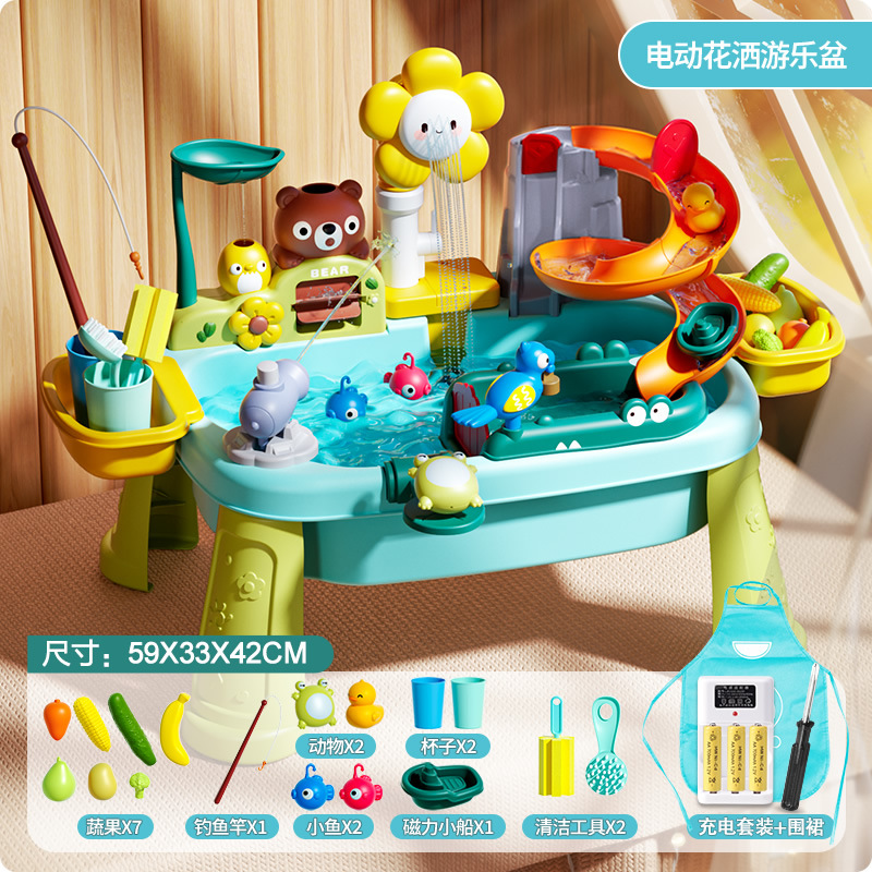 跨境儿童过家家厨房洗碗盆套装电动循环可出水洗菜钓鱼台戏水玩具