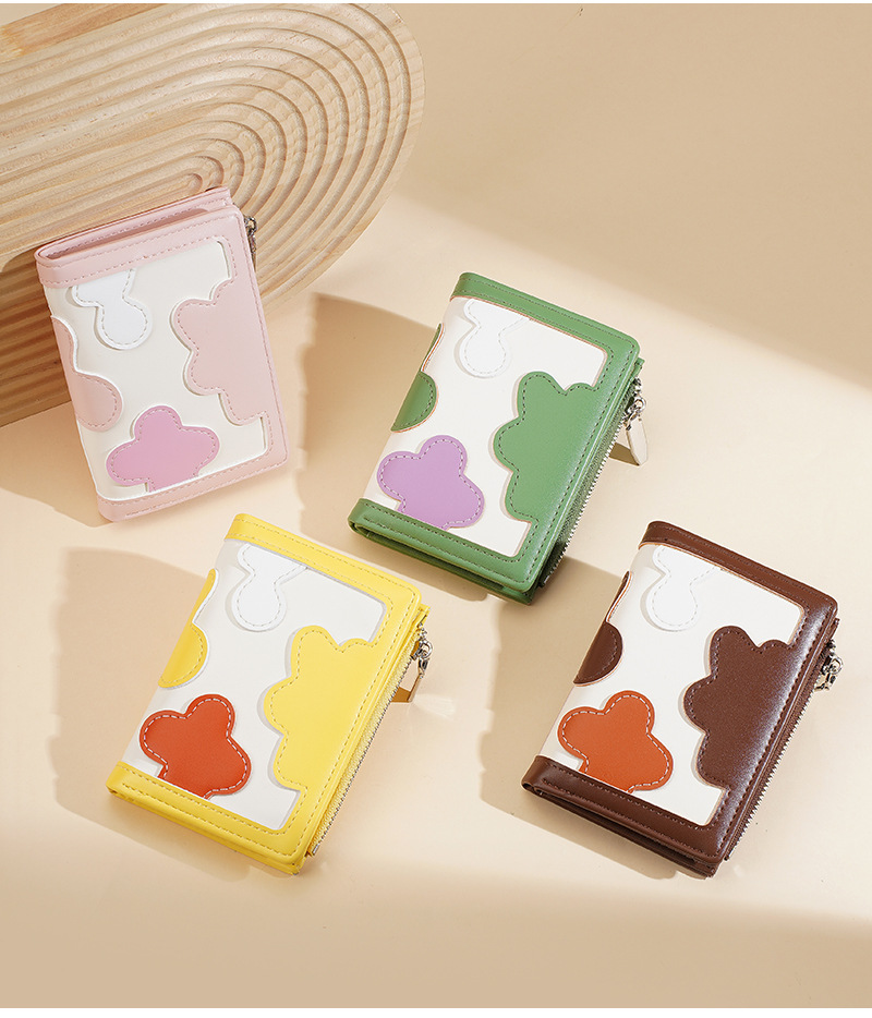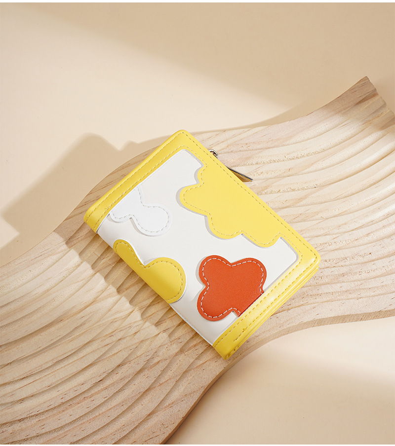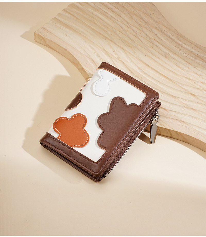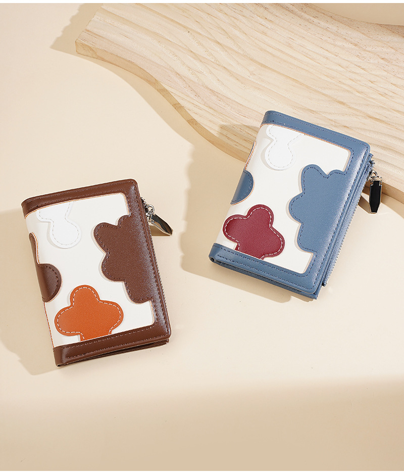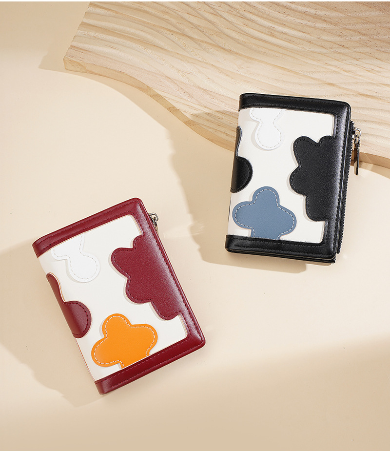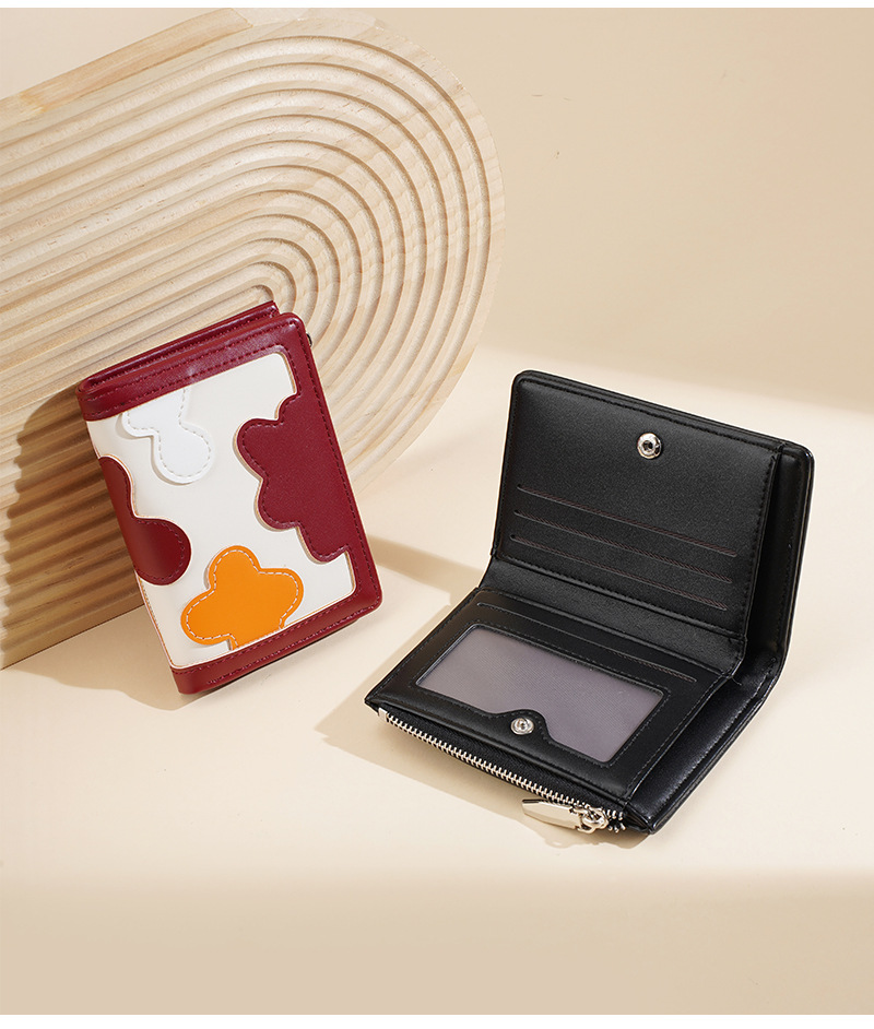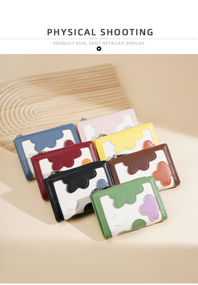 新款女士短款钱包撞色拼接时尚多卡位简约钱夹高级感拉链小零钱包