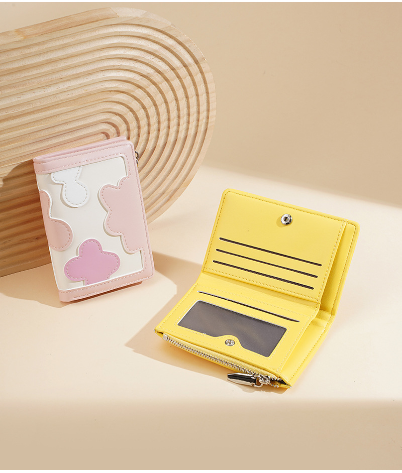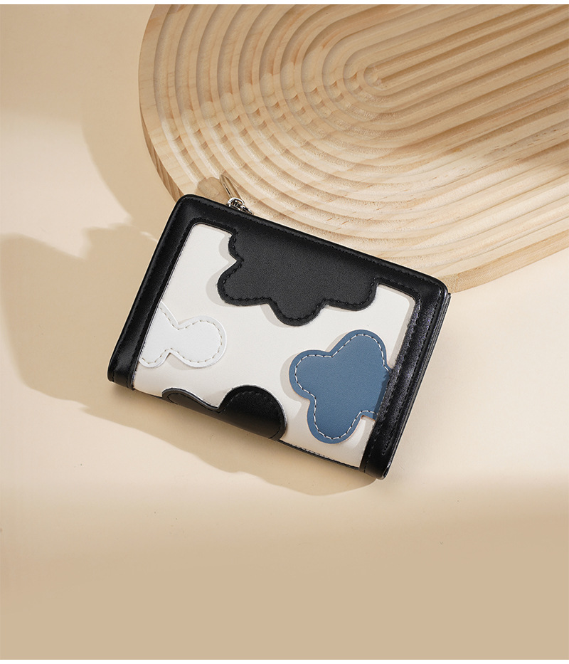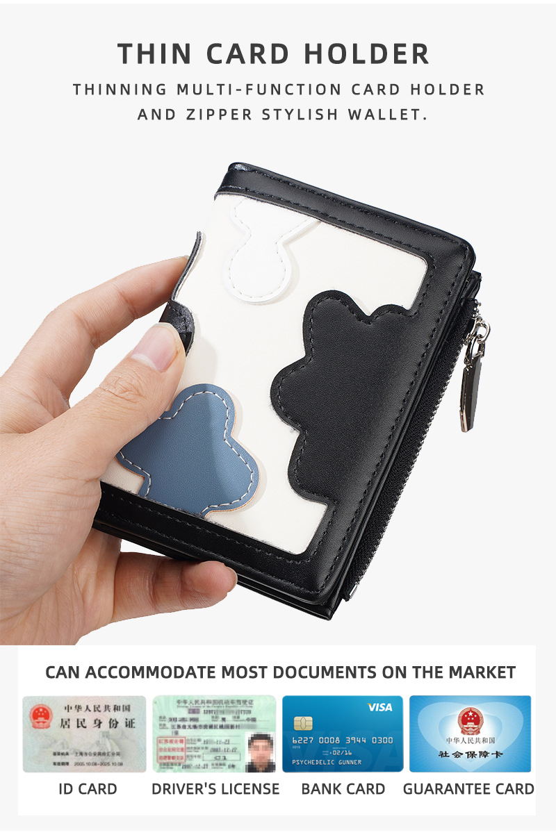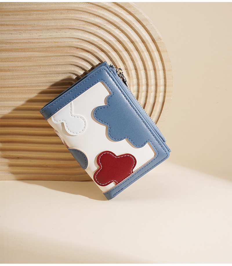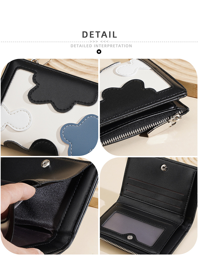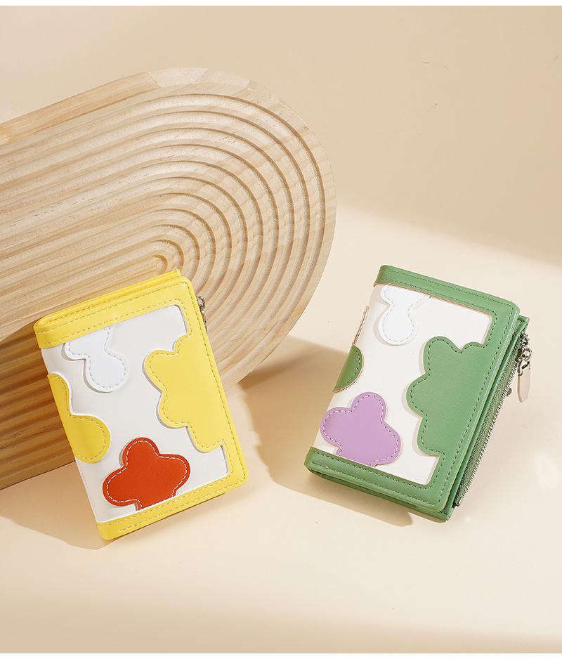 新款女士短款钱包撞色拼接时尚多卡位简约钱夹高级感拉链小零钱包