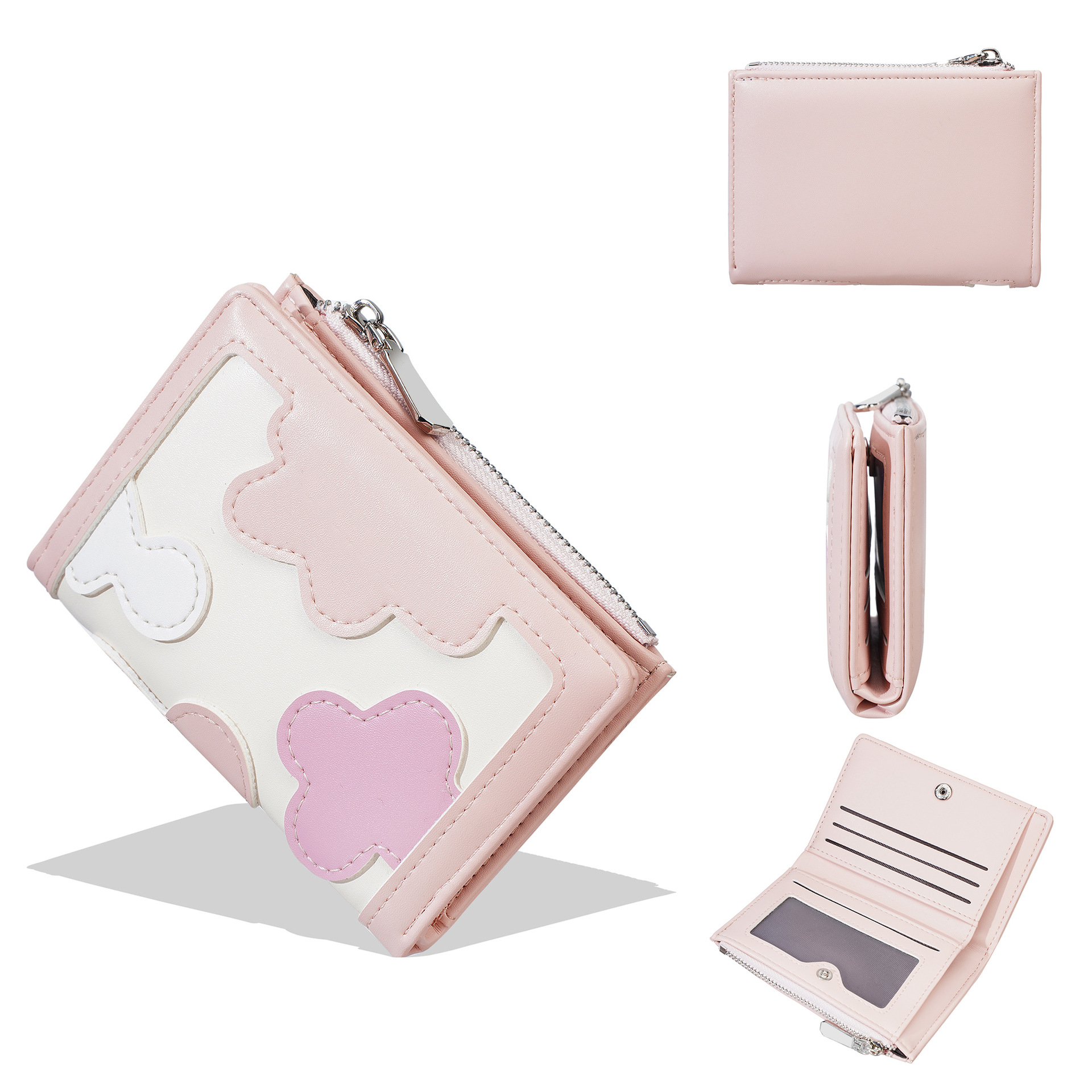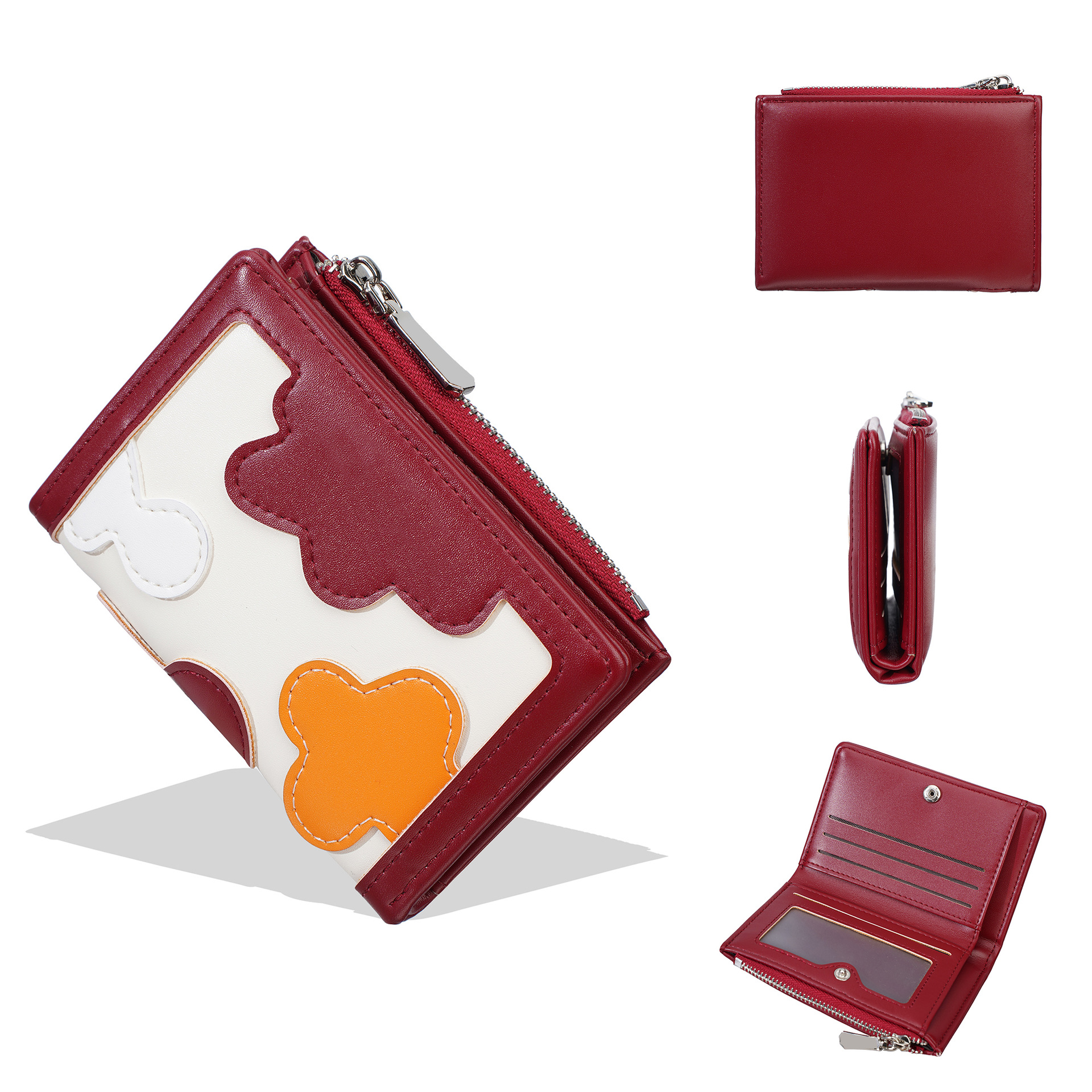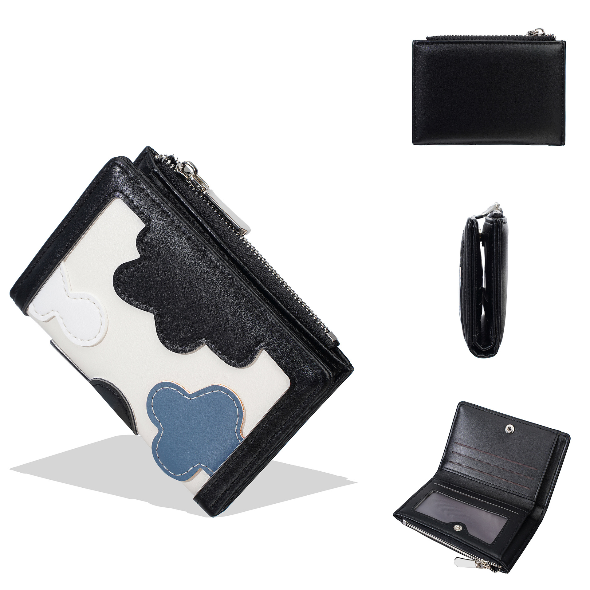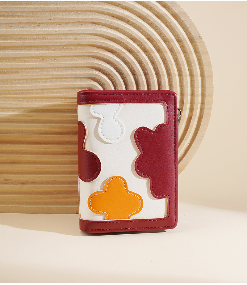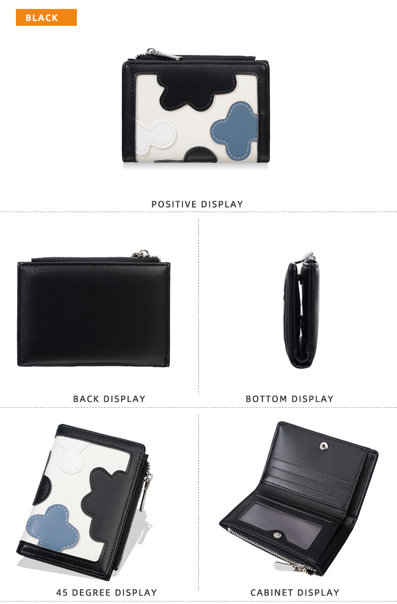 新款女士短款钱包撞色拼接时尚多卡位简约钱夹高级感拉链小零钱包