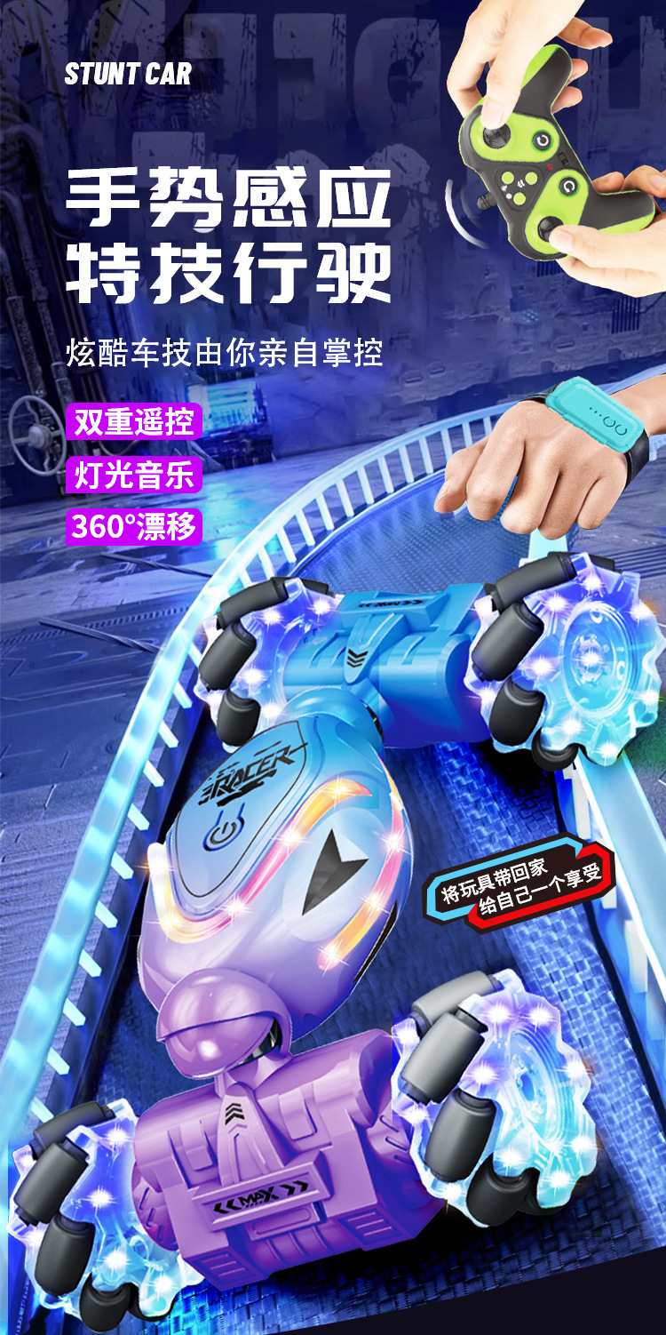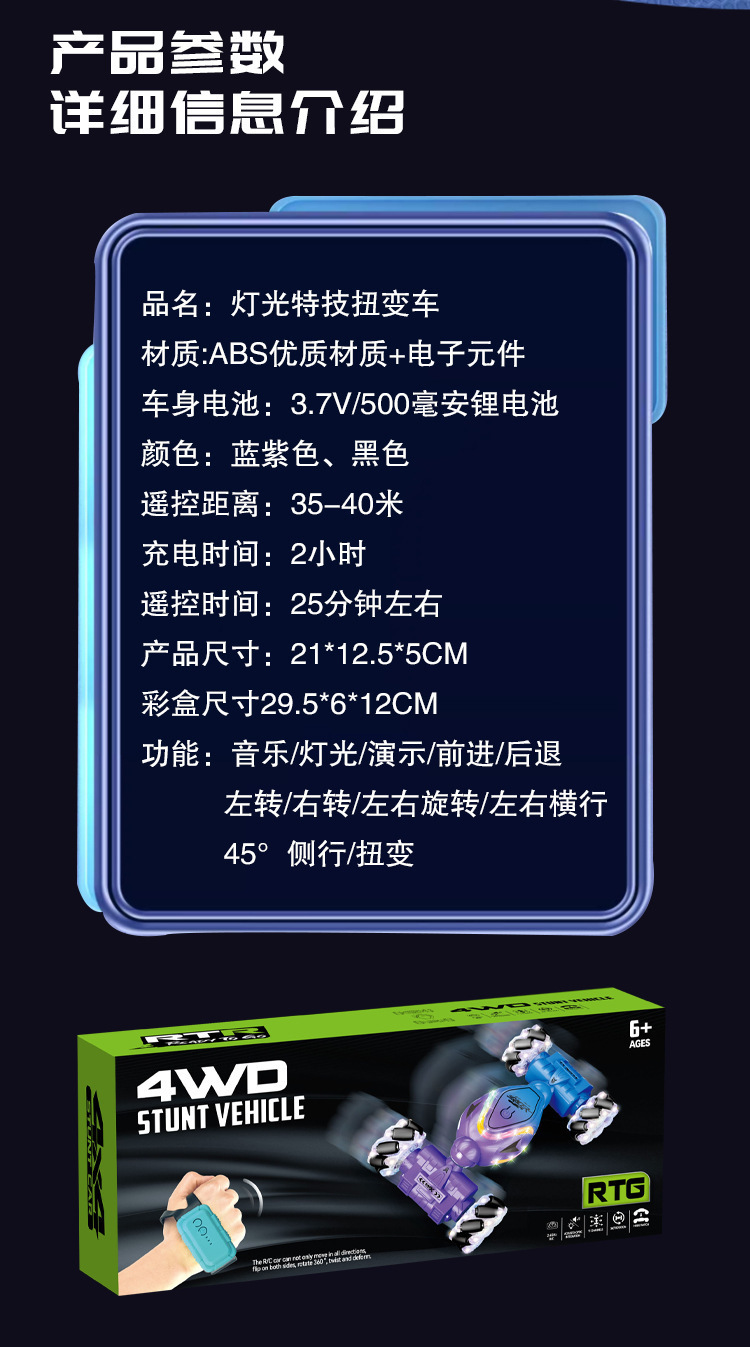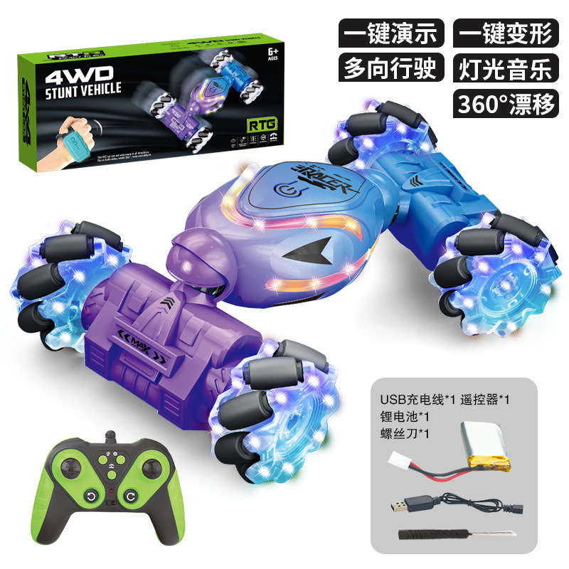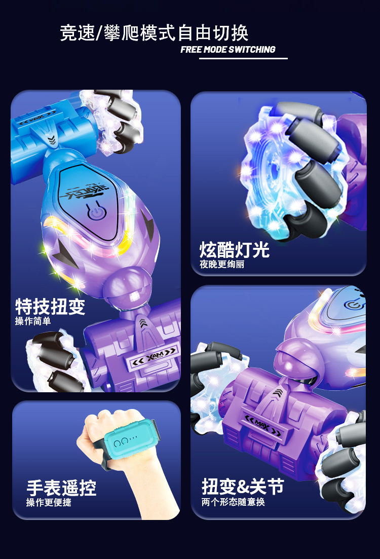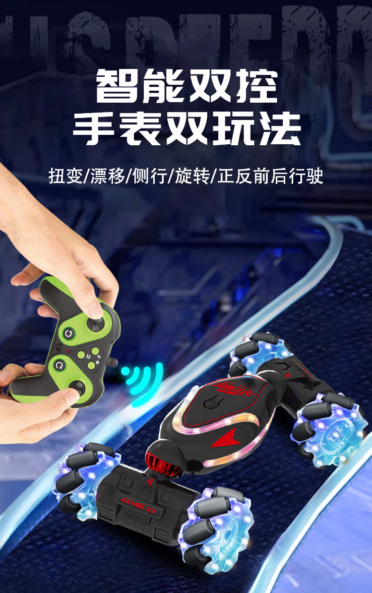 跨境灯光特技四驱扭变车双控漂移越野遥控攀爬车玩具批发一件代发