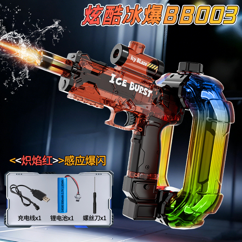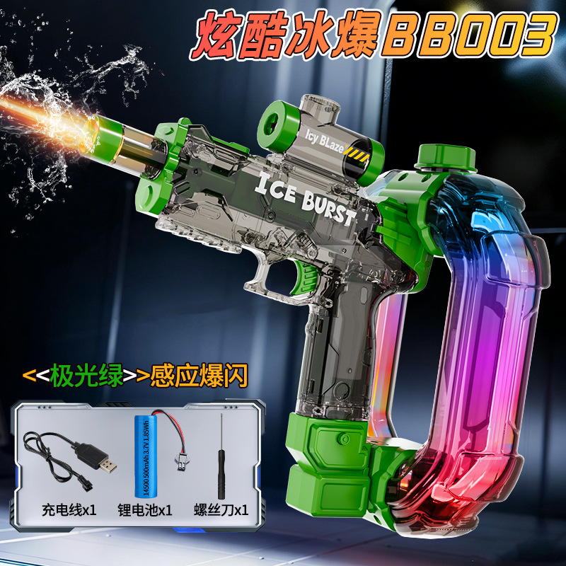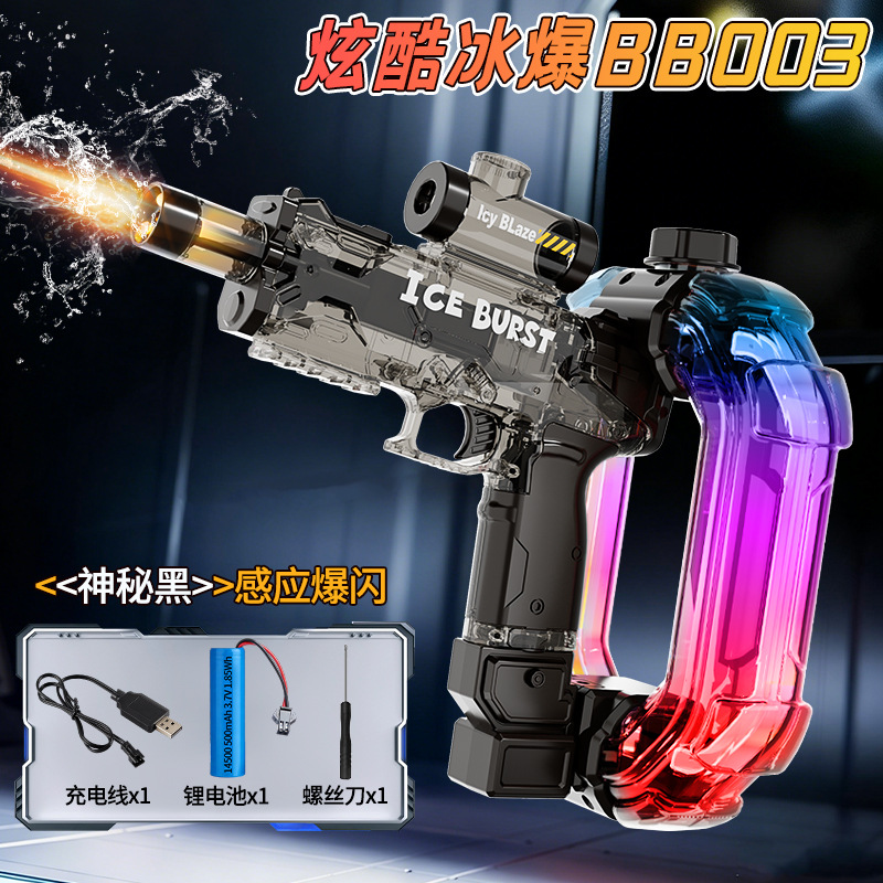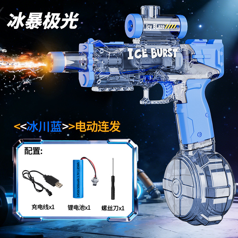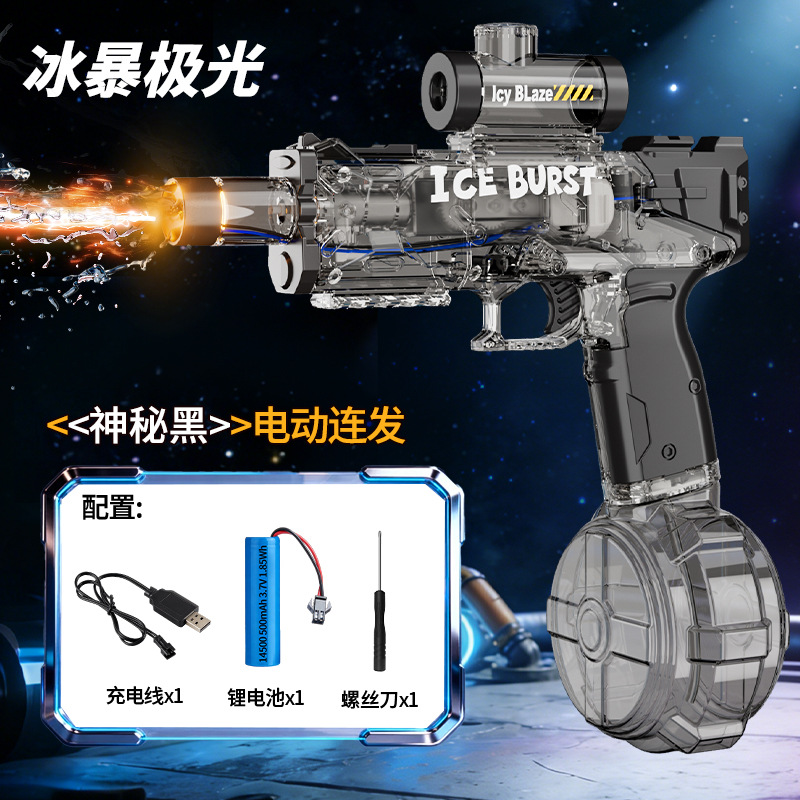 跨境新款电动水枪玩具儿童炫酷七彩灯光动态音效脉冲电动连发水枪