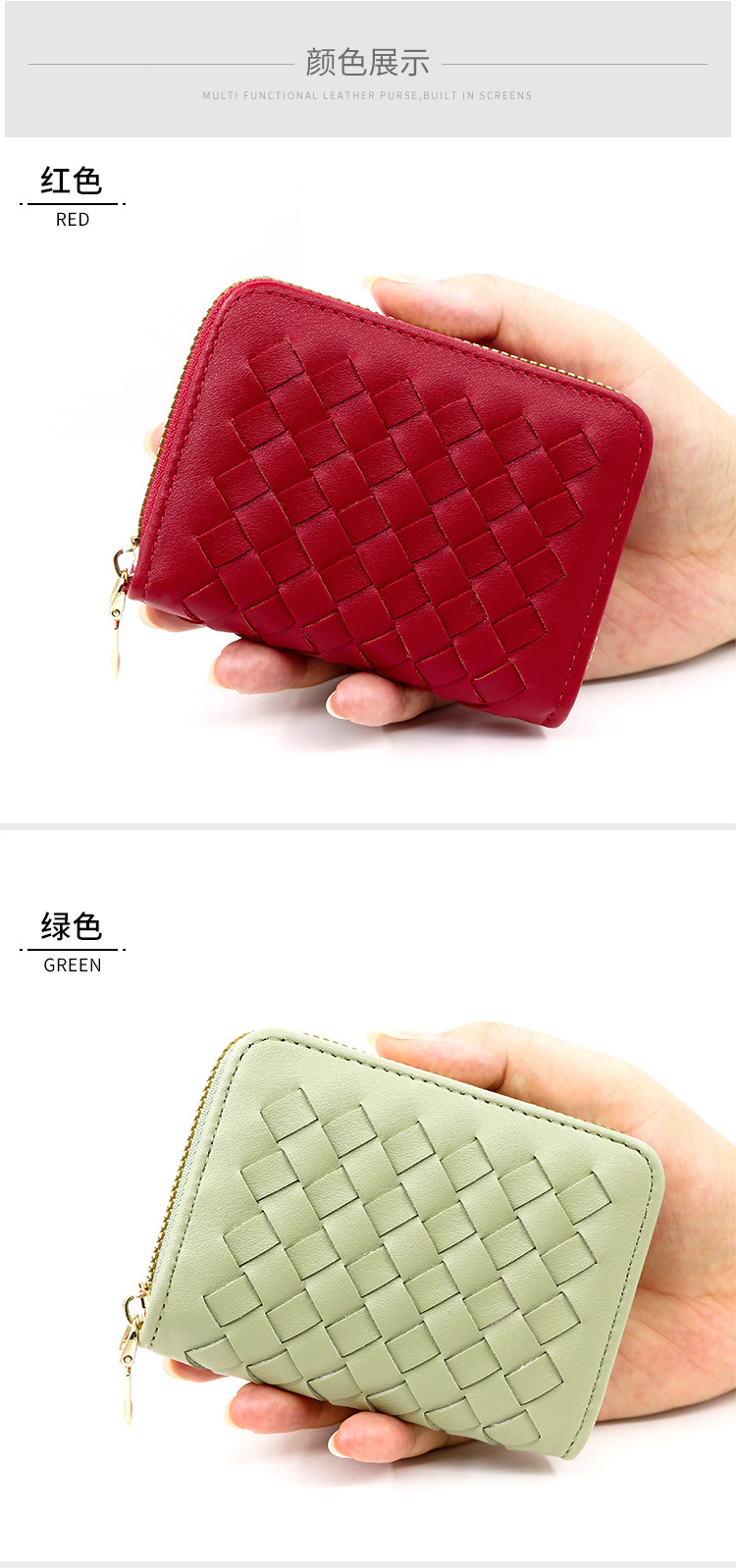 欧美时尚女士卡包拉链小零钱包 编织包男女式风琴卡包多卡位卡套