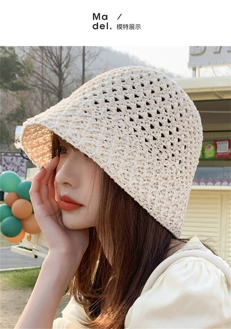 渔夫帽女夏季日系显脸小盆帽遮阳防晒帽韩版镂空透气编织水桶草帽