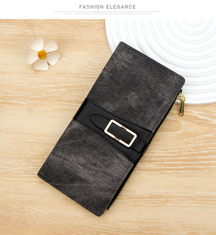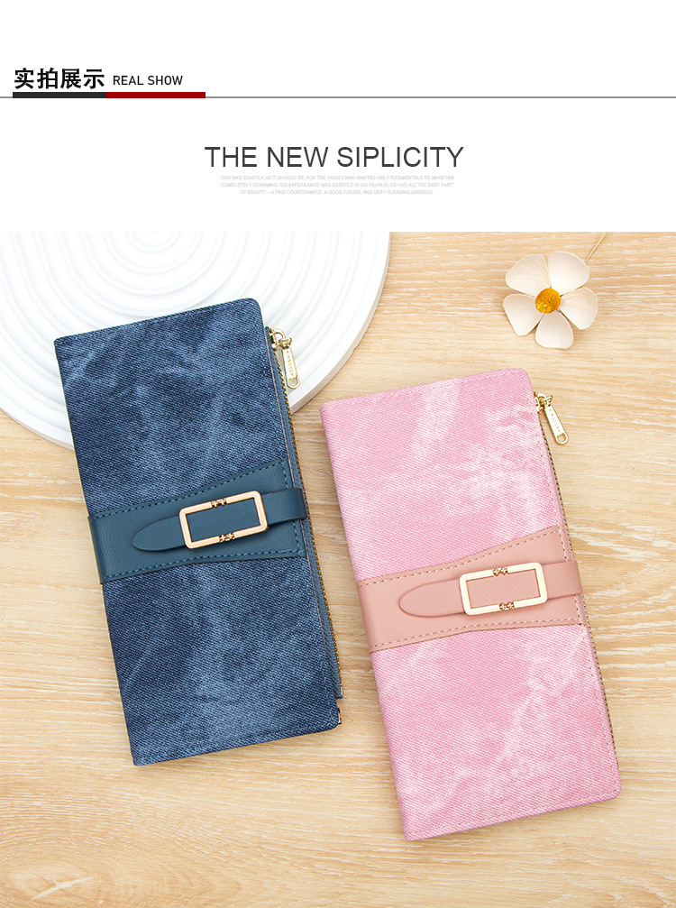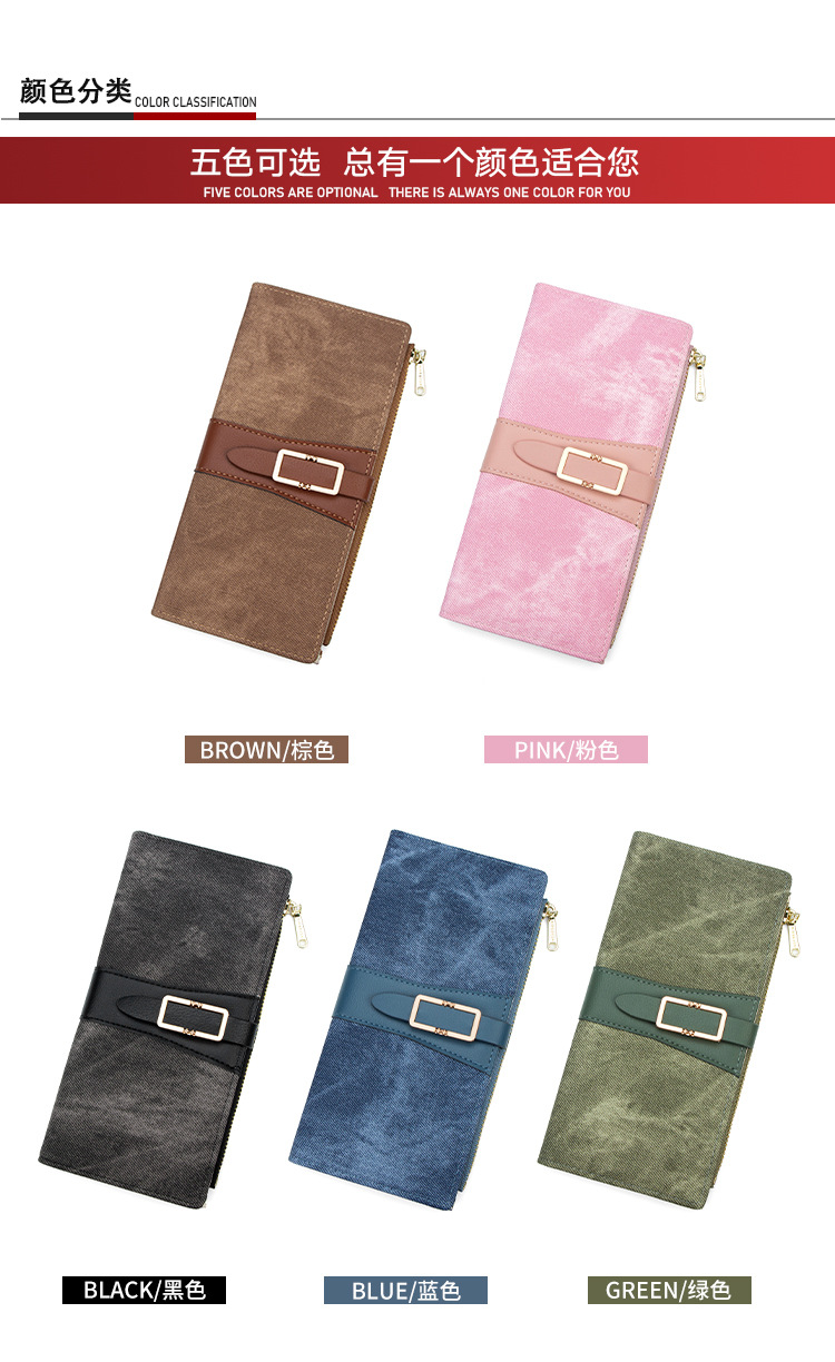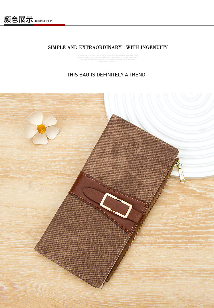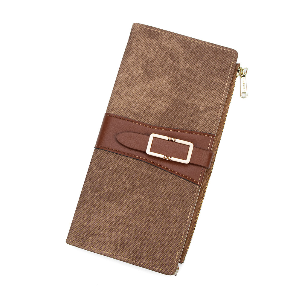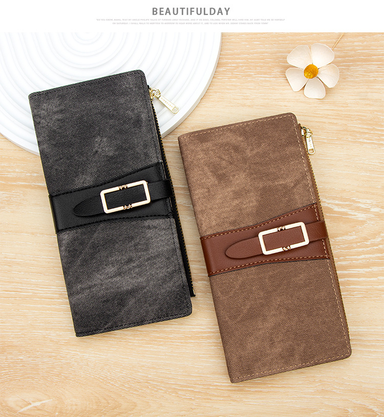 磨砂PU皮长款收纳女士零钱包侧拉链带扣大容量多卡位钱包