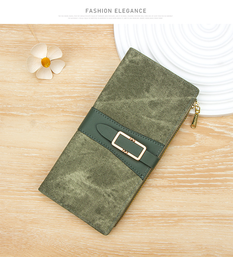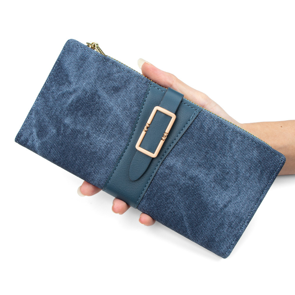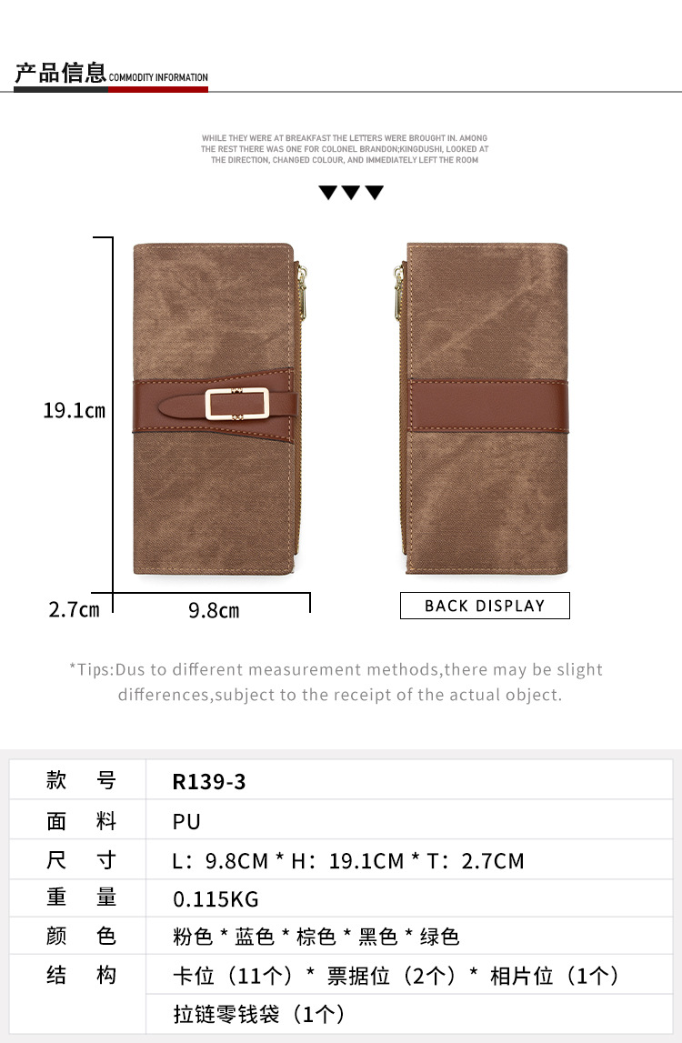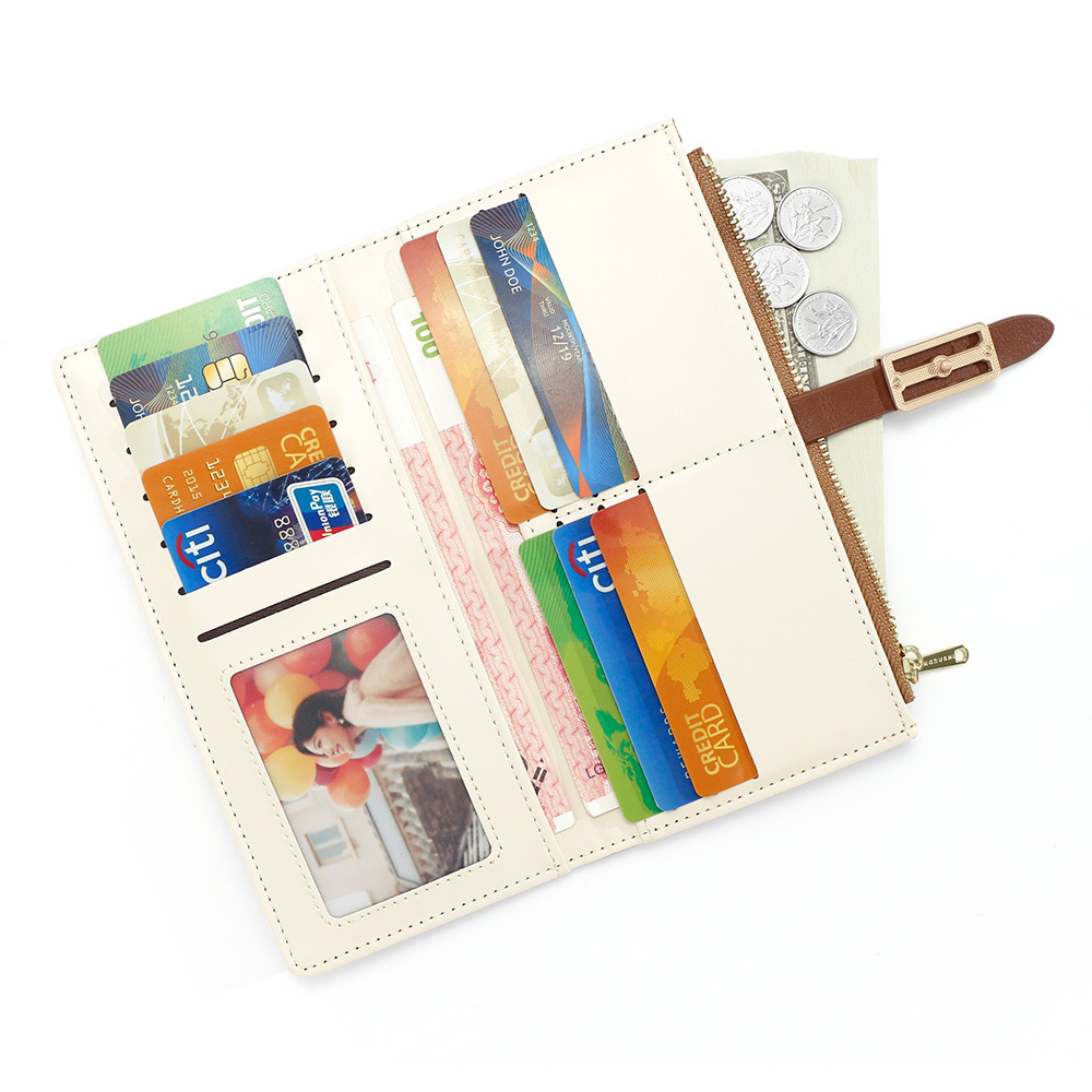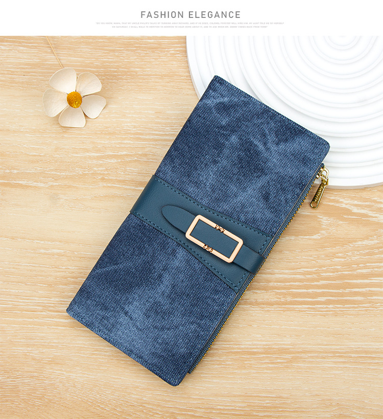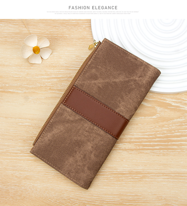 磨砂PU皮长款收纳女士零钱包侧拉链带扣大容量多卡位钱包