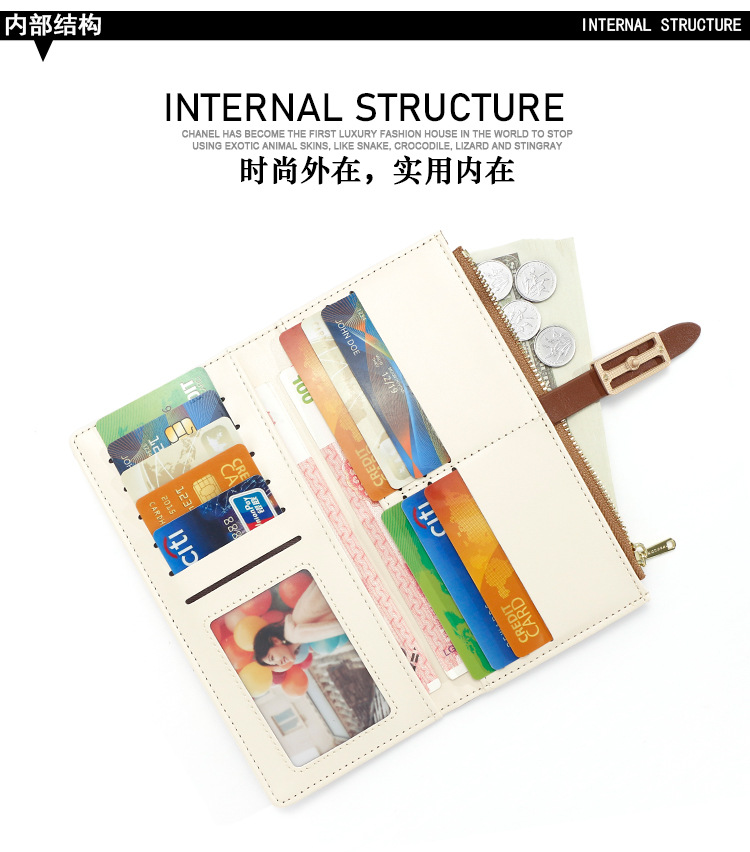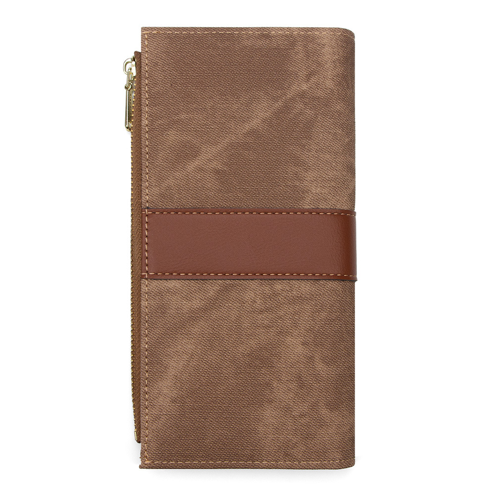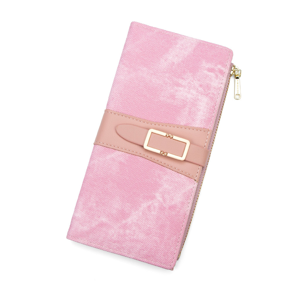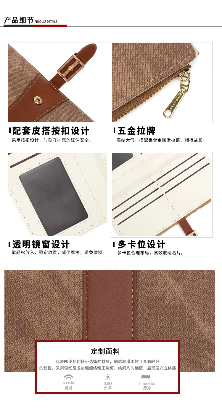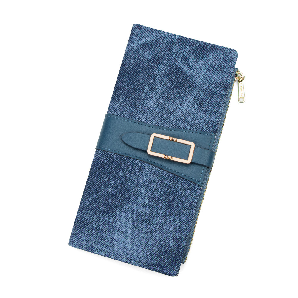 磨砂PU皮长款收纳女士零钱包侧拉链带扣大容量多卡位钱包