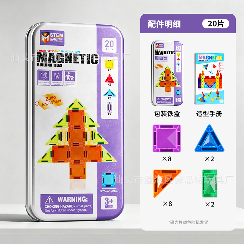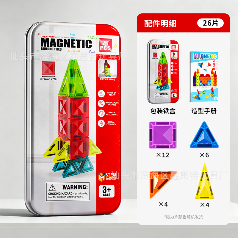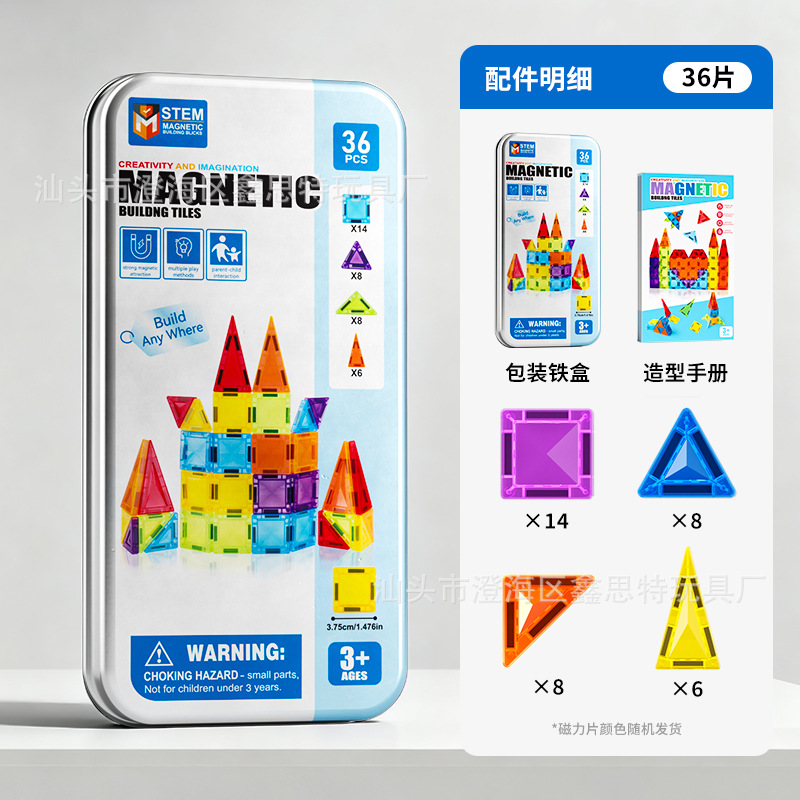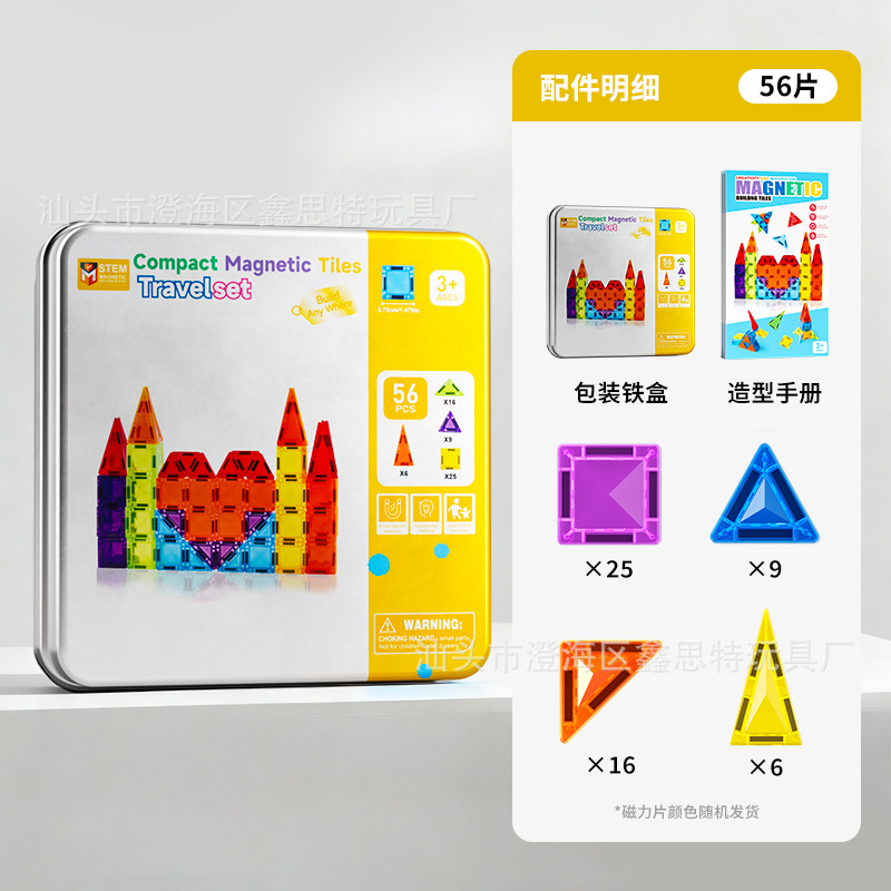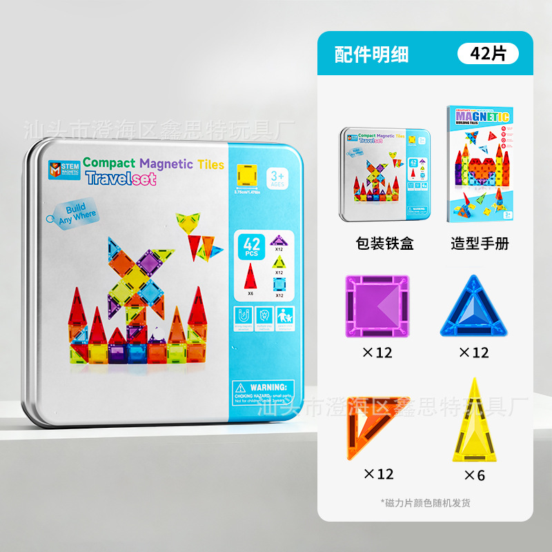 跨境迷你磁力片彩窗磁力积木便携式旅行铁盒套装3.75cm玩具磁力片