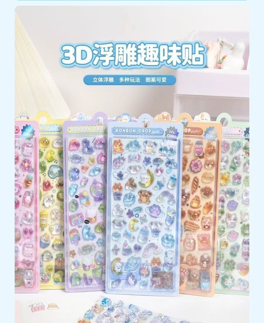儿童贴纸空心3d立体浮雕贴宝石水晶贴可爱贴画玩具手机装饰小图案