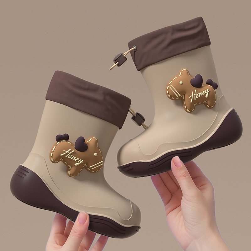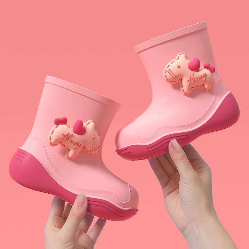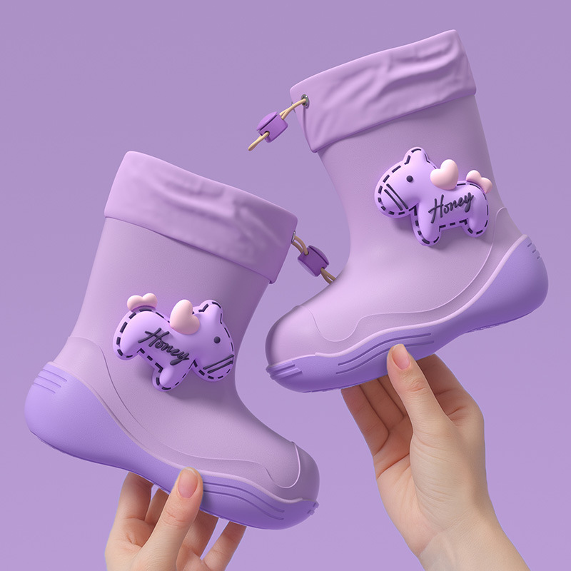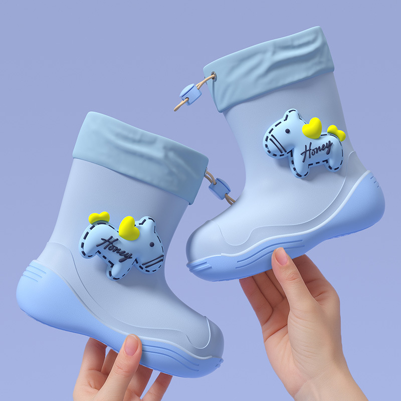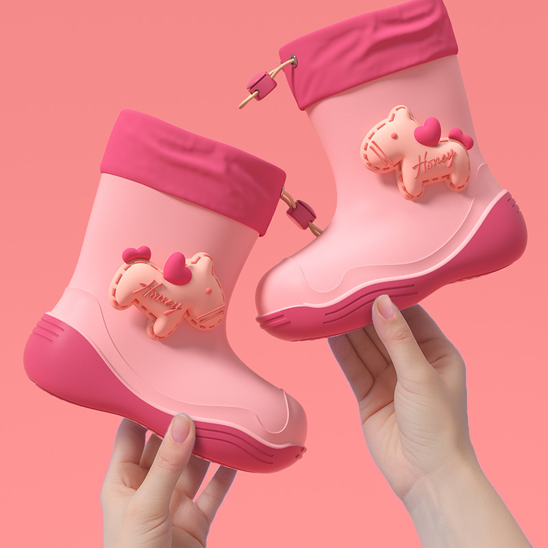 防水口可爱儿童雨鞋女款学生中小童防滑软底雨靴加绒防水鞋胶鞋男