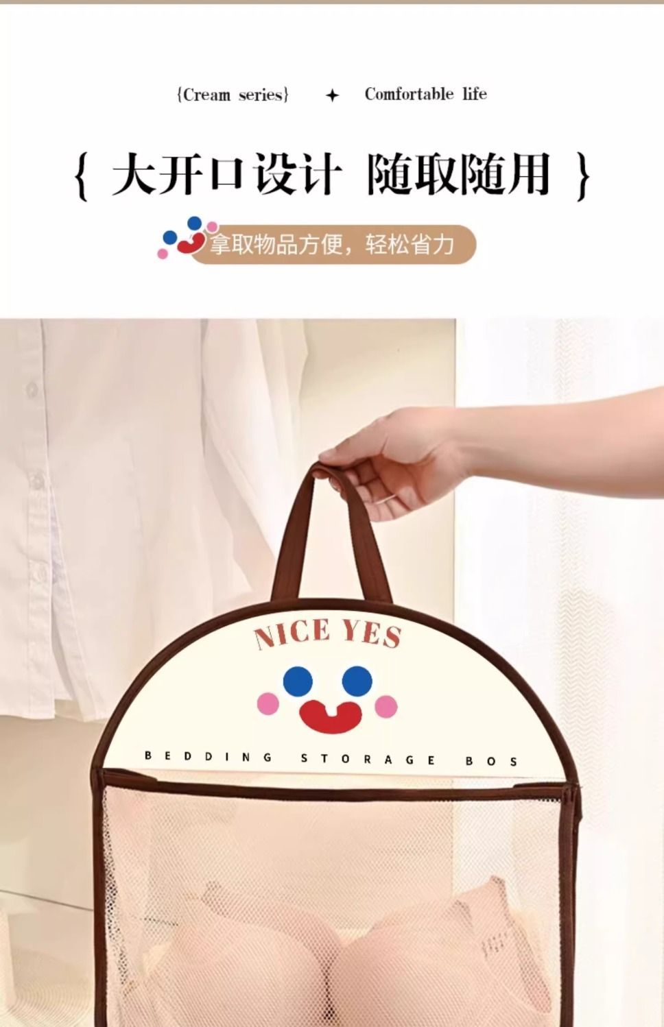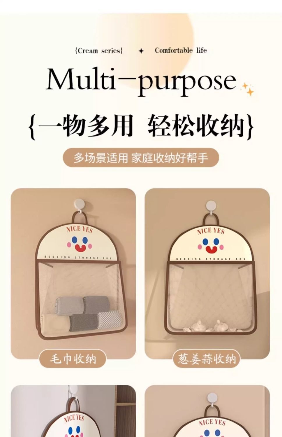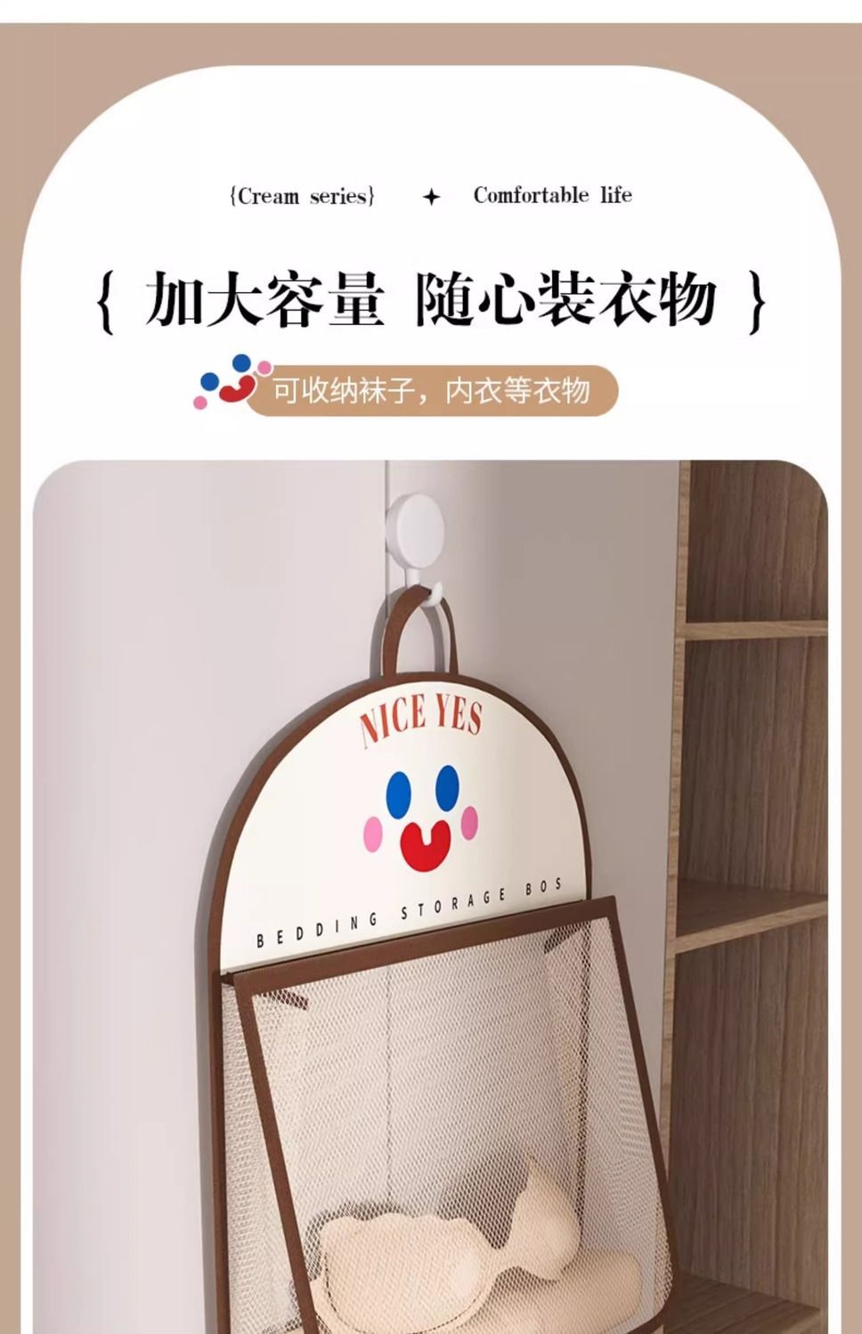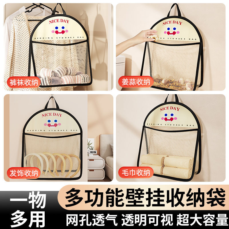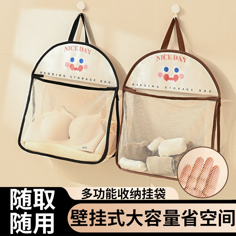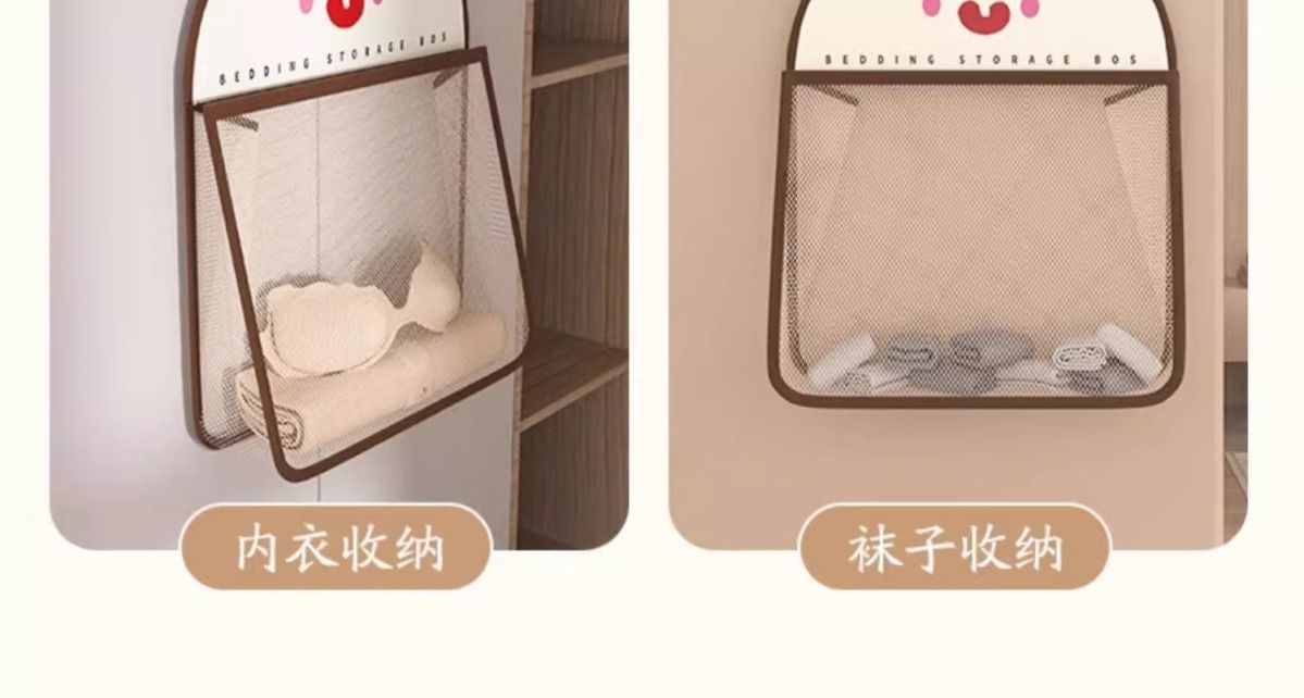 收纳网兜内衣袜子收纳袋宿舍衣柜家用卧室挂墙透气衣物笑脸收纳袋