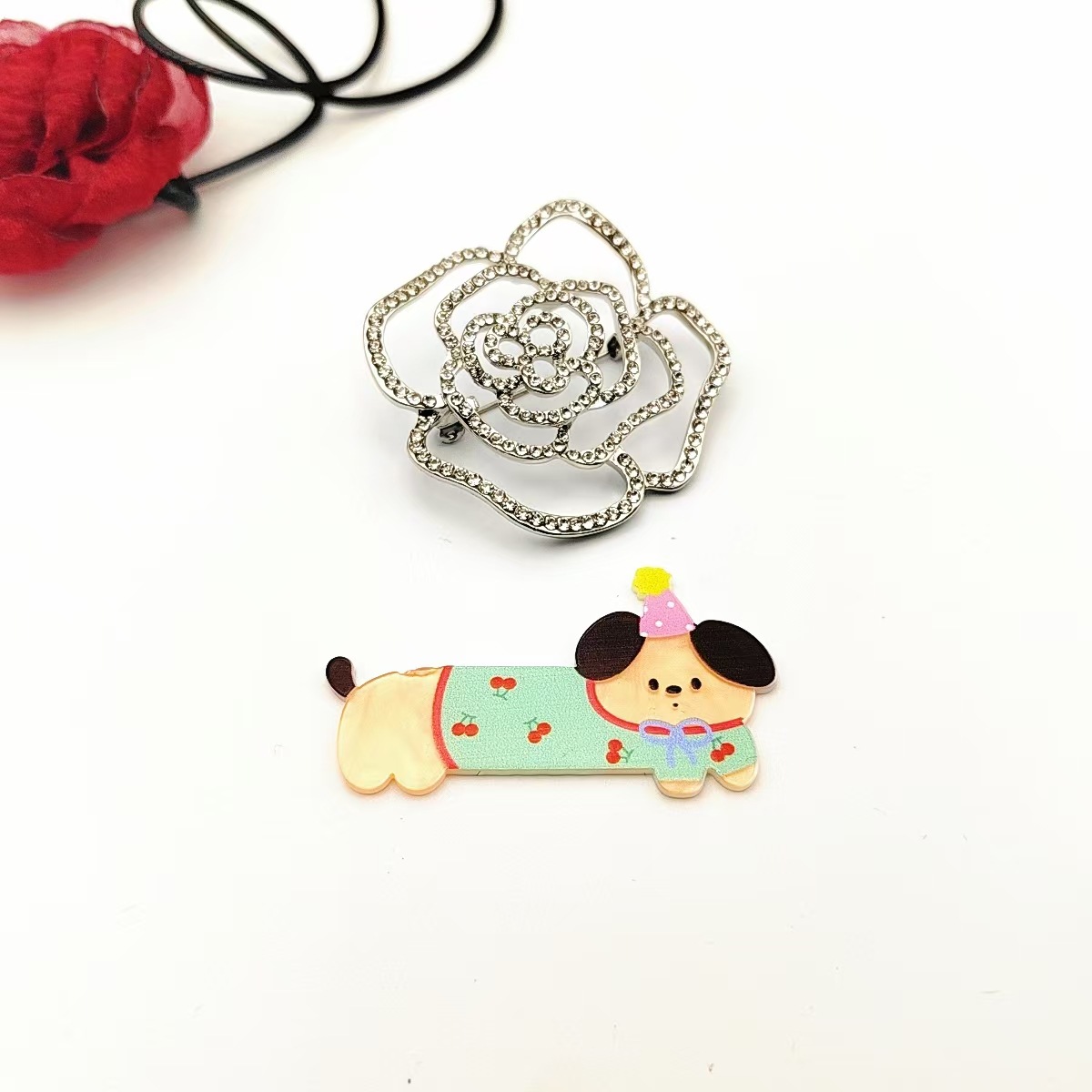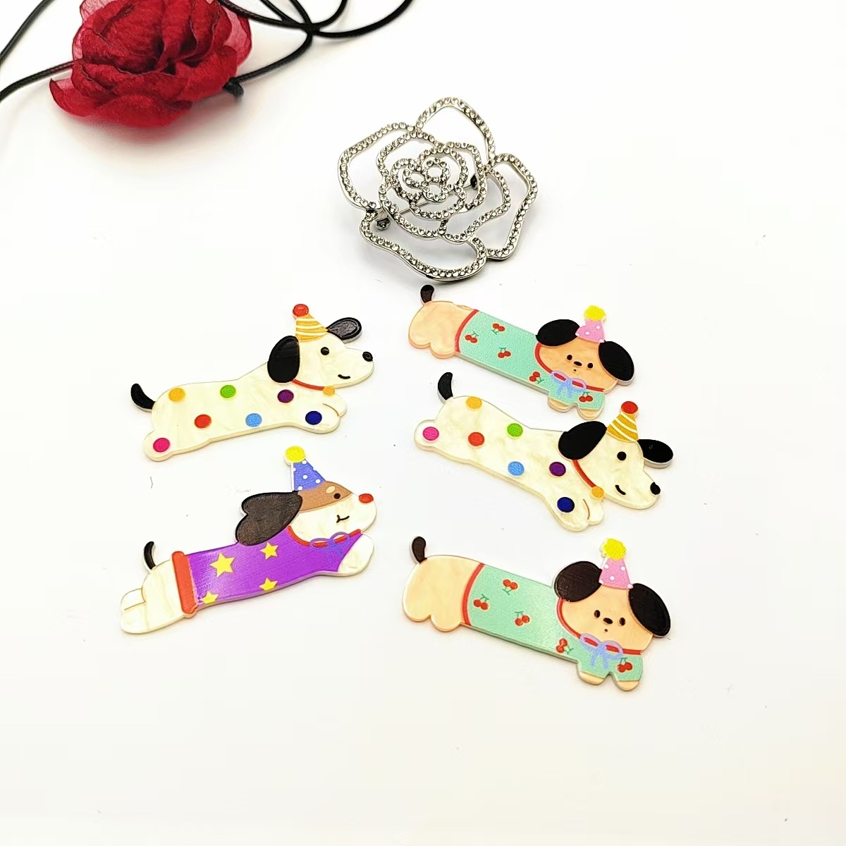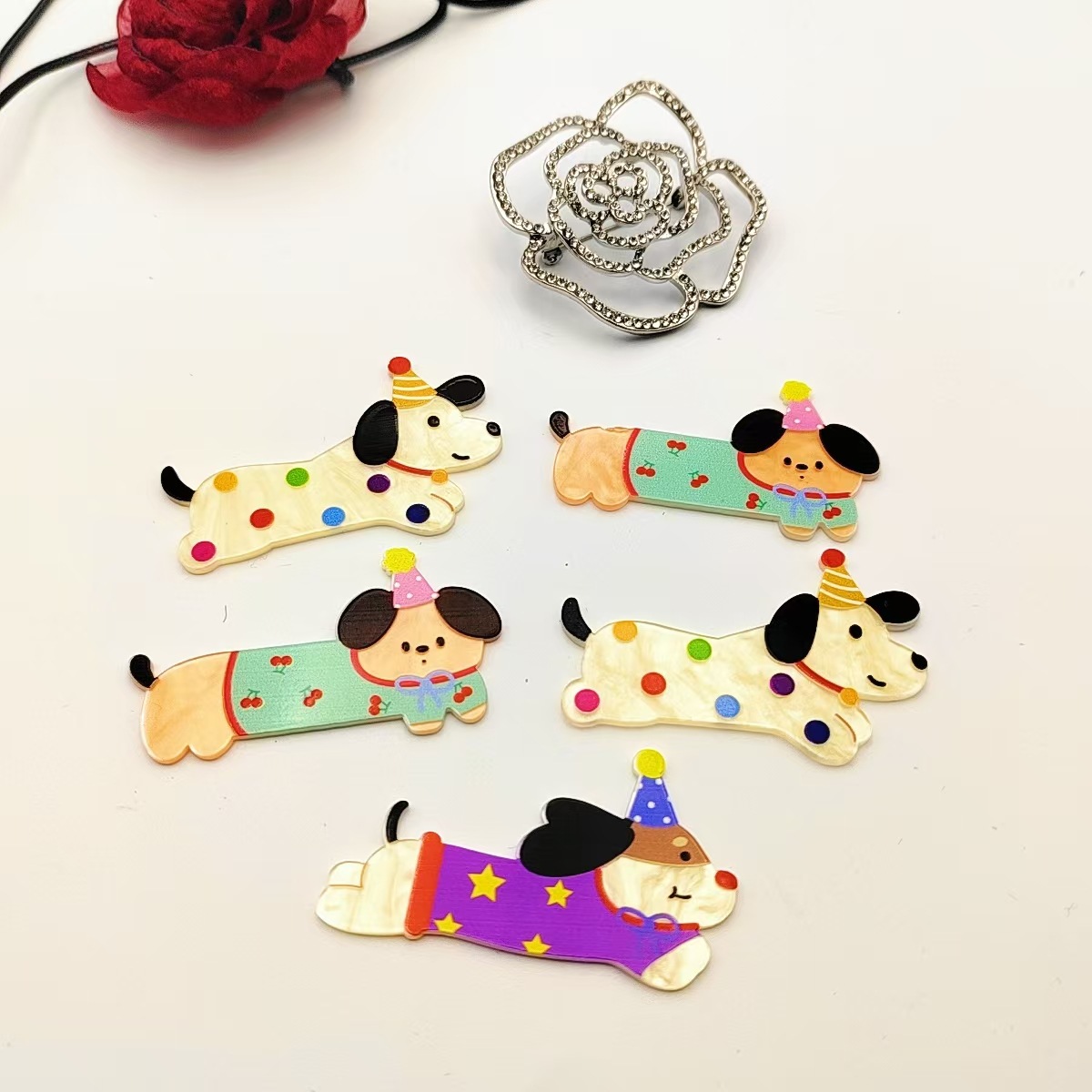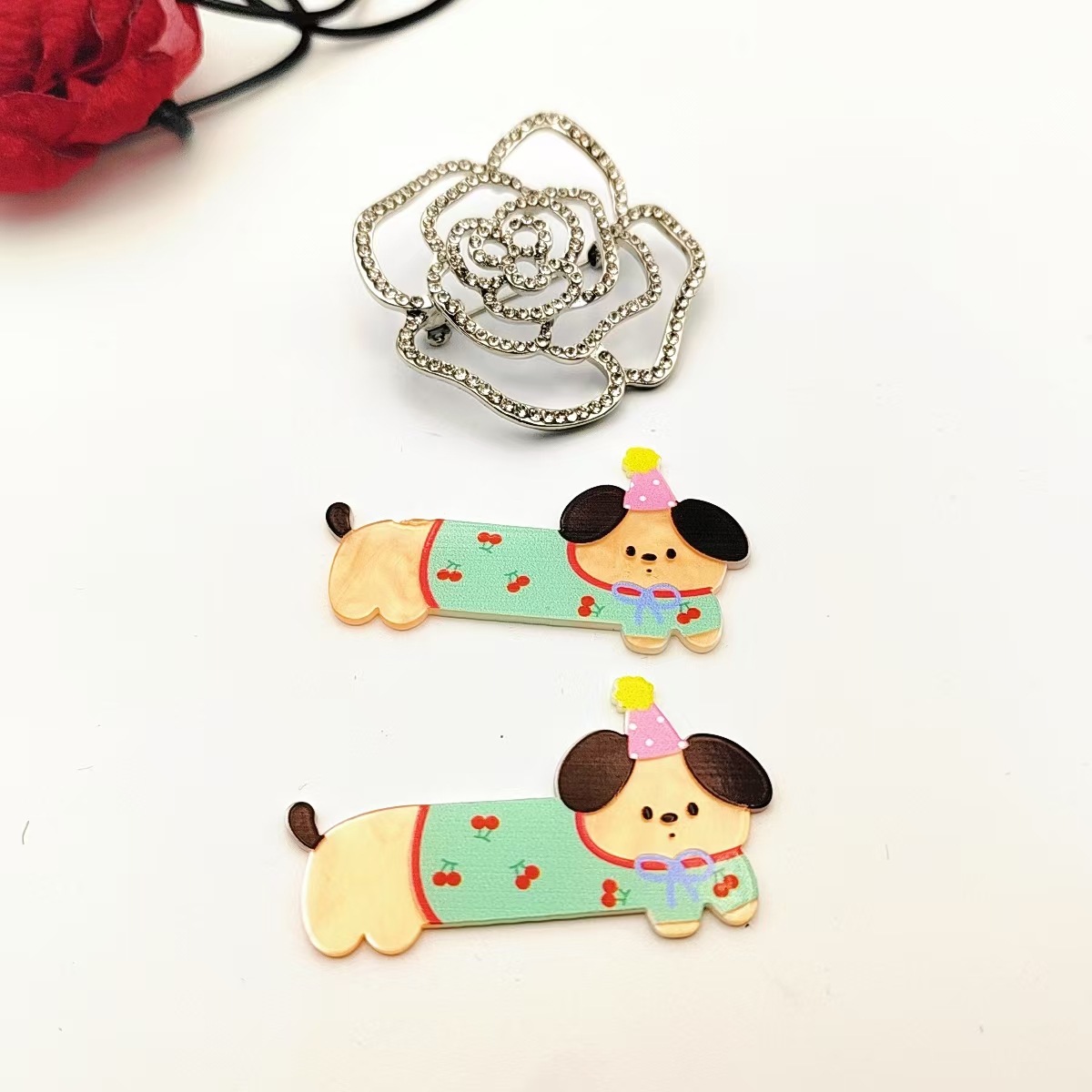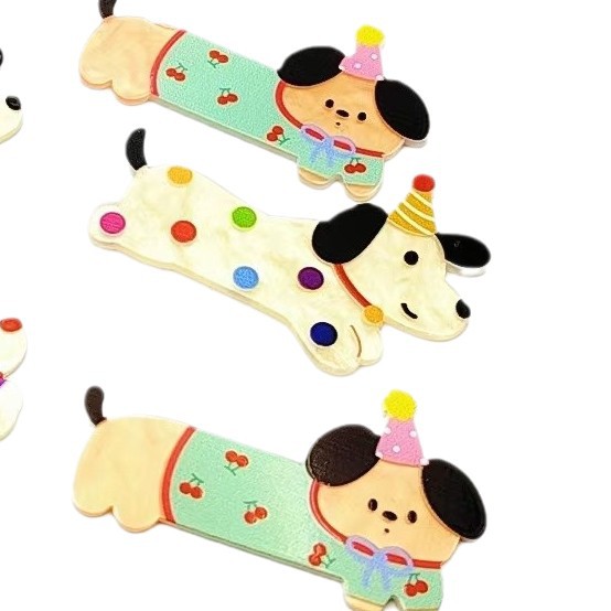 亚克力趣味可爱腊肠狗发夹侧边刘海儿童发根碎发鸭嘴发卡头饰批
