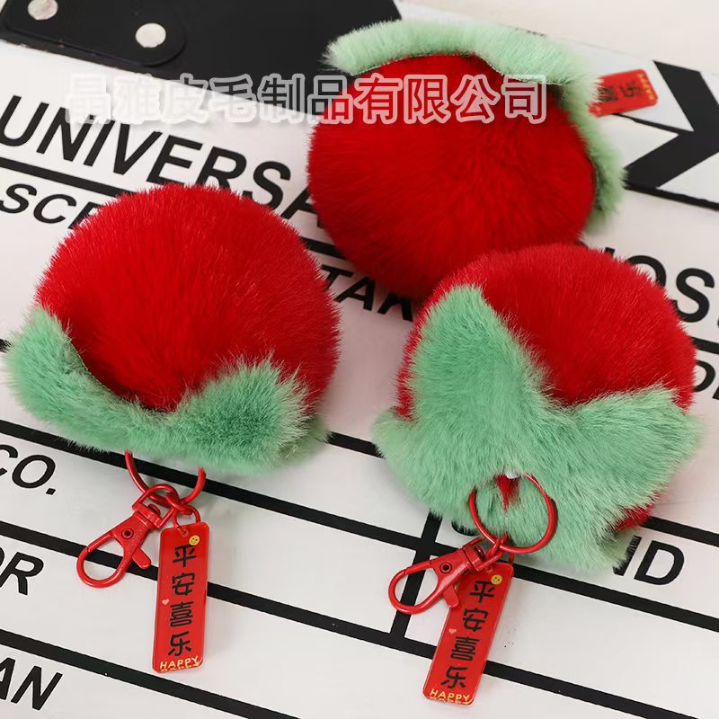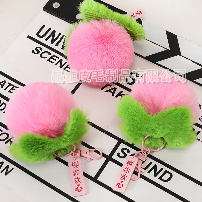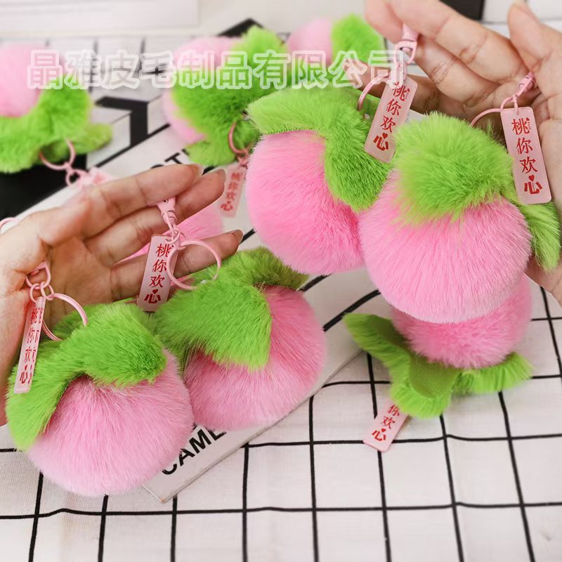 定制2024新款桃你欢心好事发生毛绒挂件创意钥匙扣女包包柿子挂件