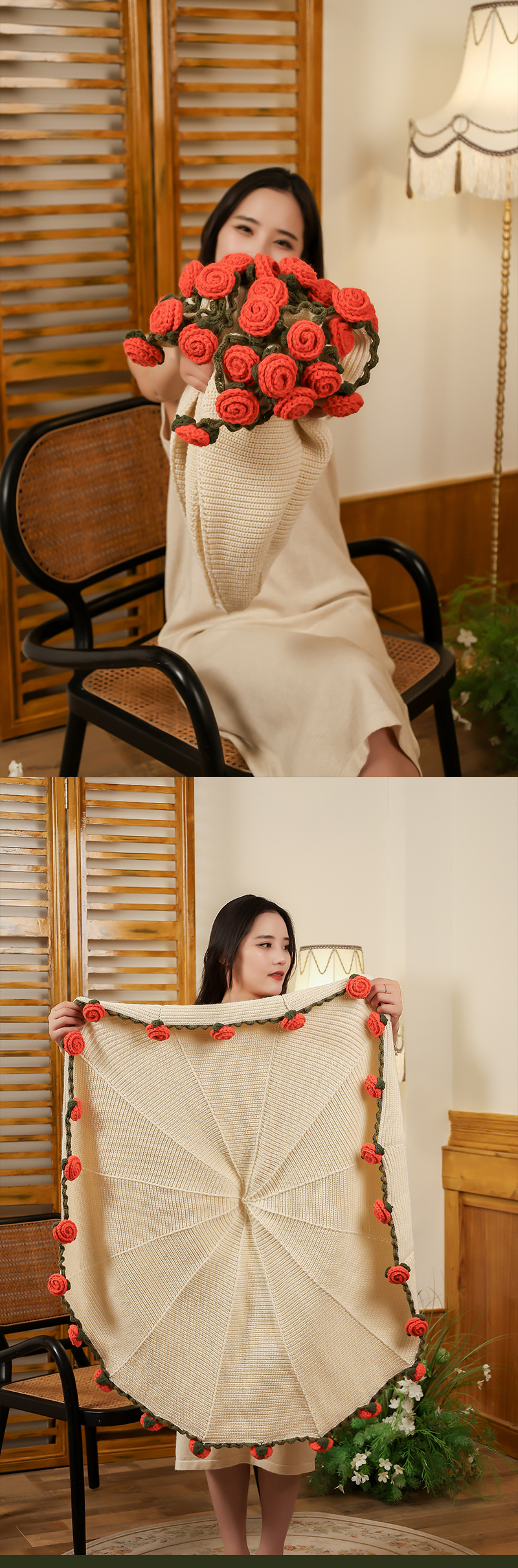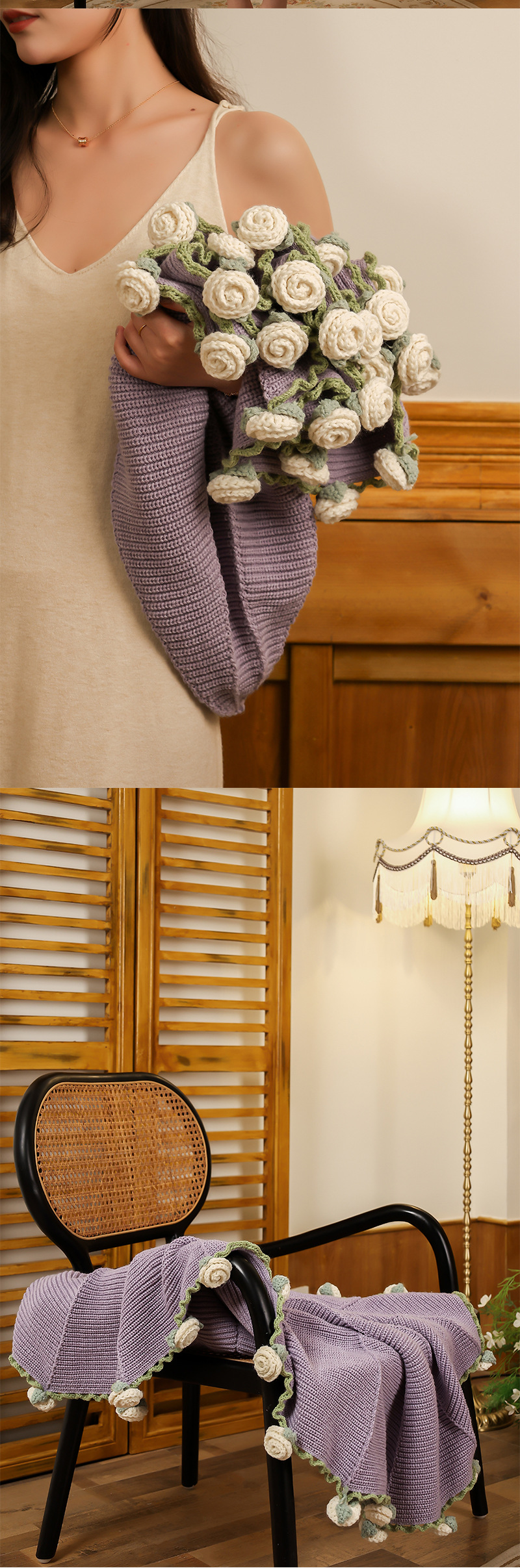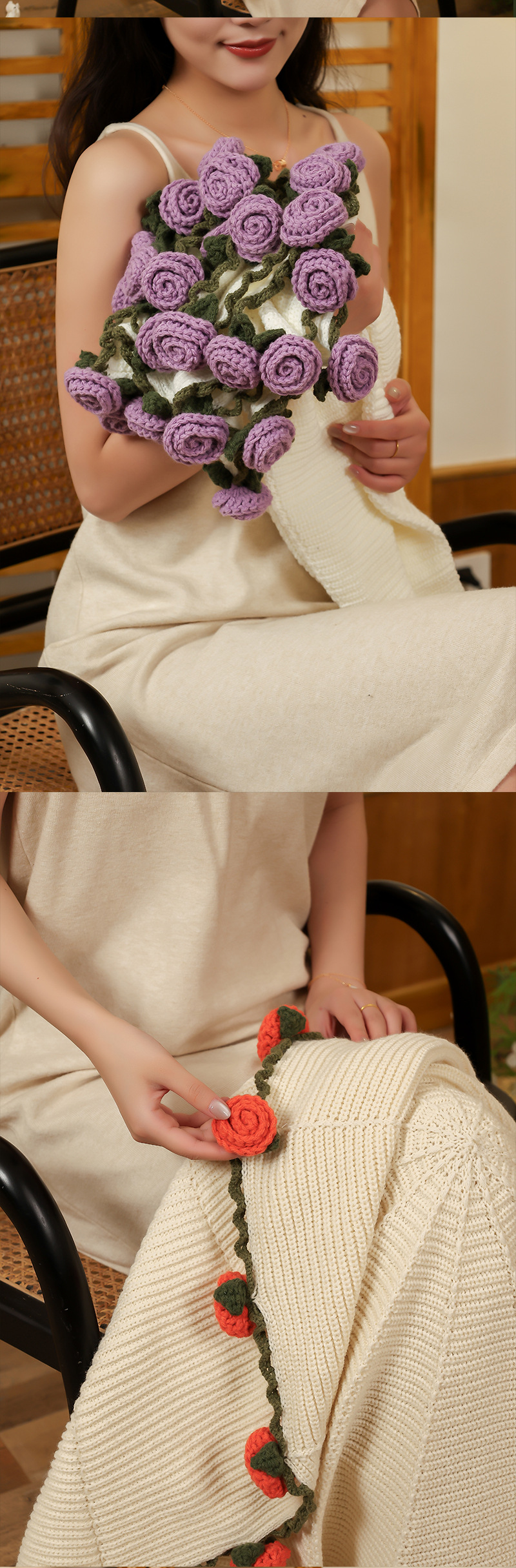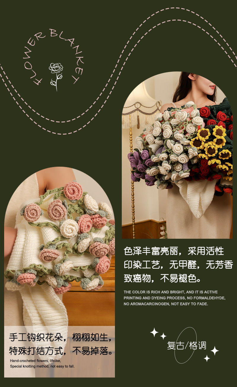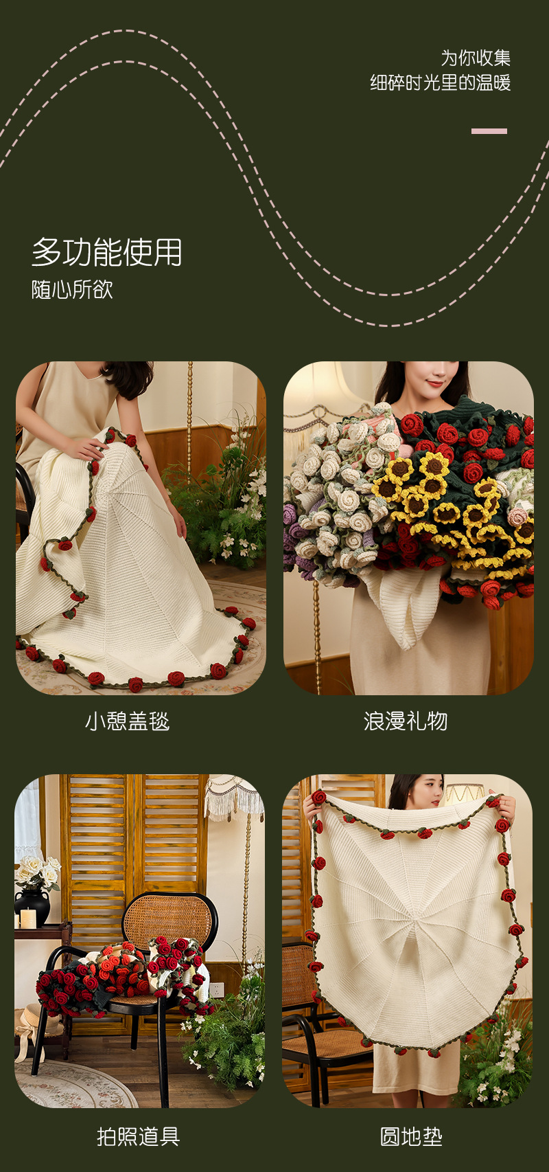 玫瑰花束成品针织毛毯子手工编织送女生礼物沙发午睡盖毯拍照道具