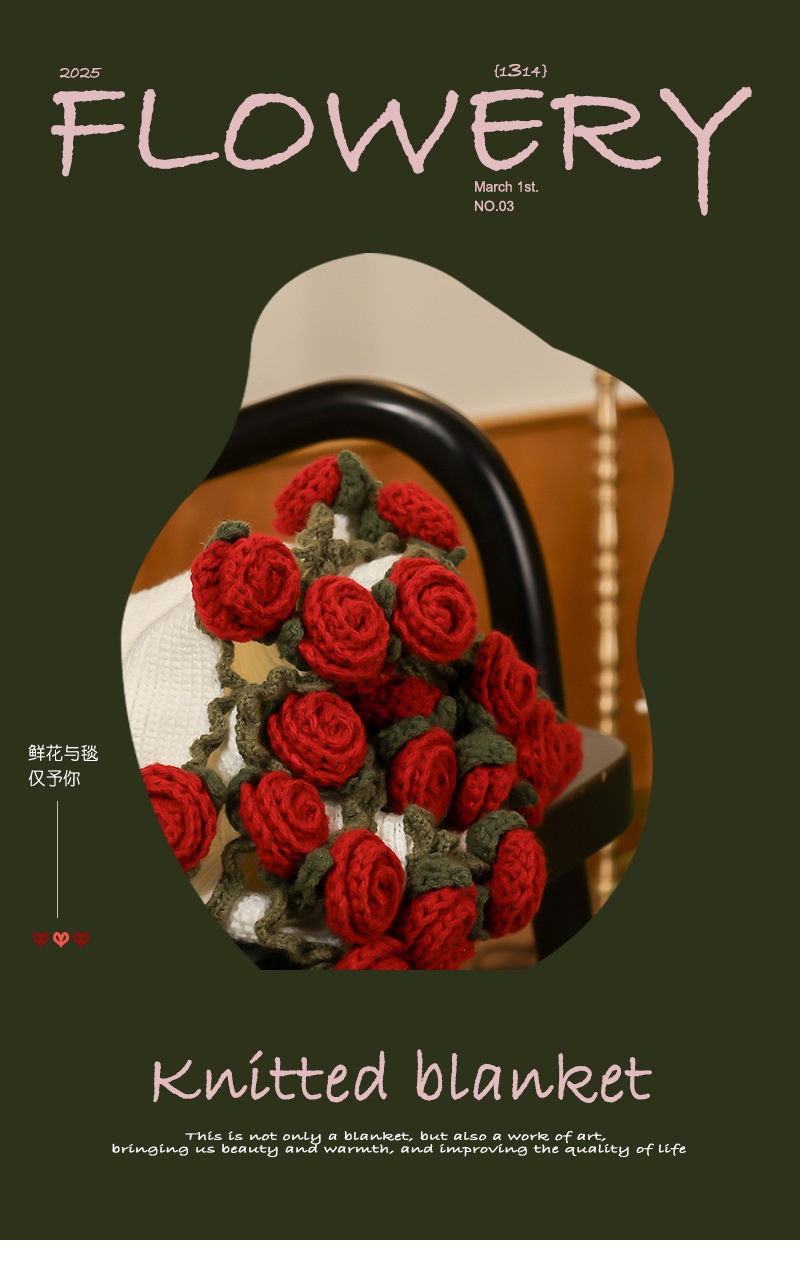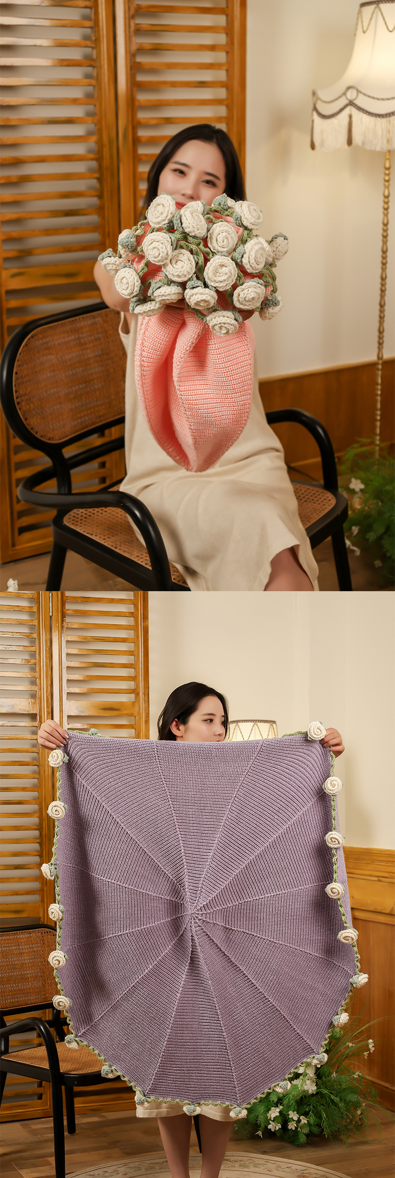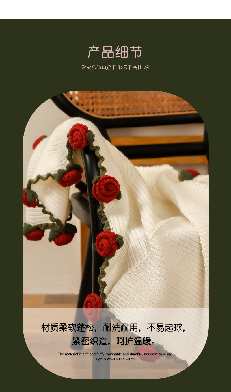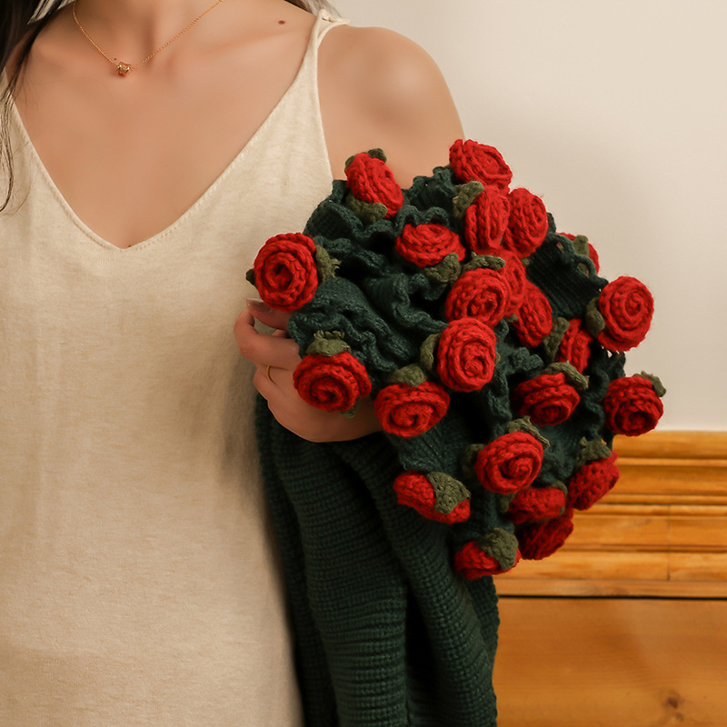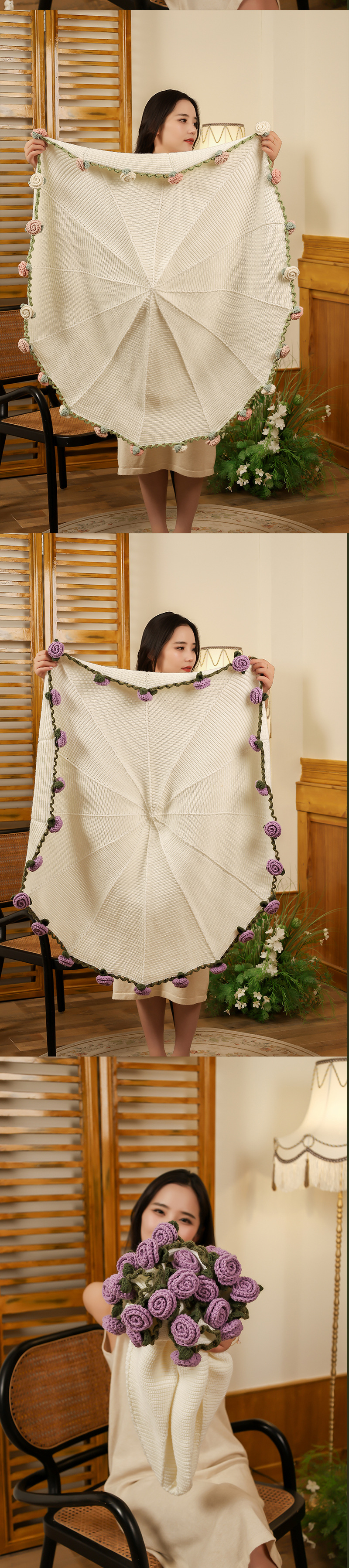 玫瑰花束成品针织毛毯子手工编织送女生礼物沙发午睡盖毯拍照道具