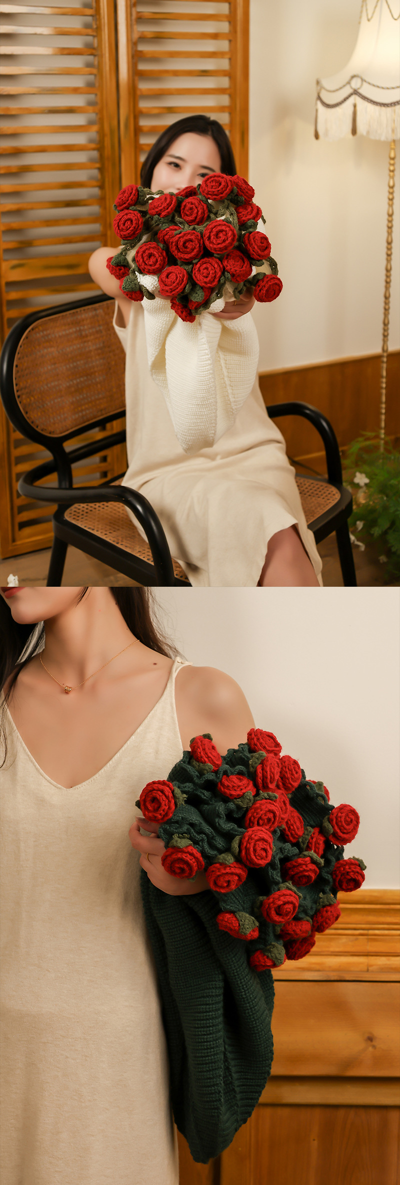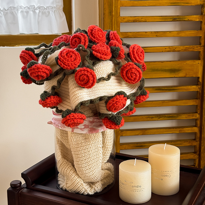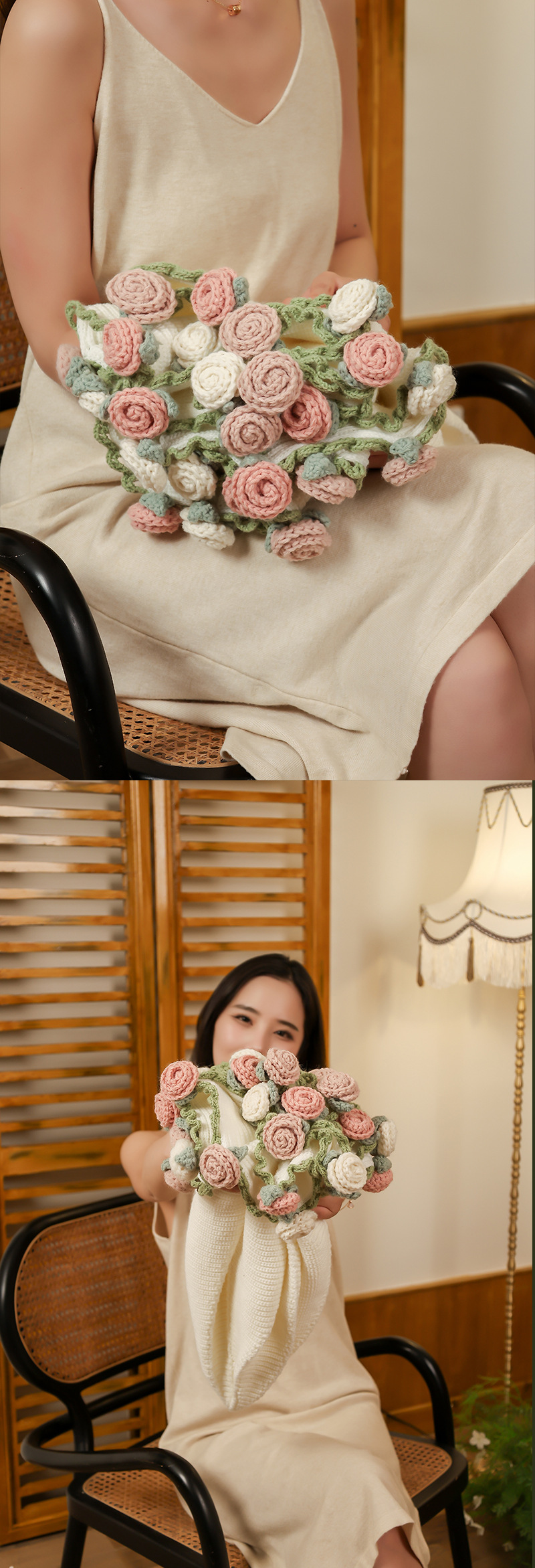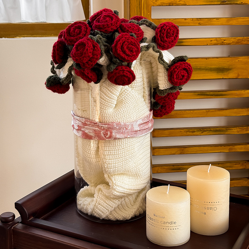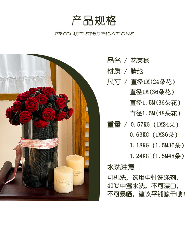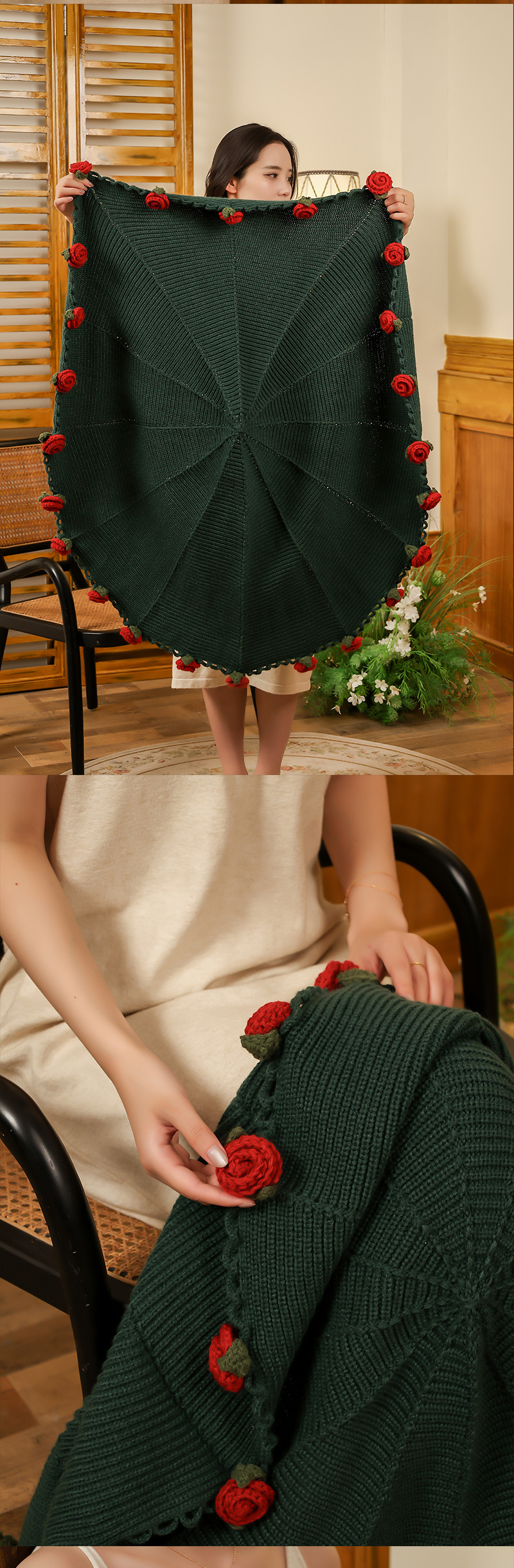 玫瑰花束成品针织毛毯子手工编织送女生礼物沙发午睡盖毯拍照道具