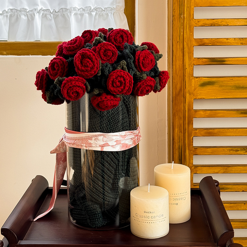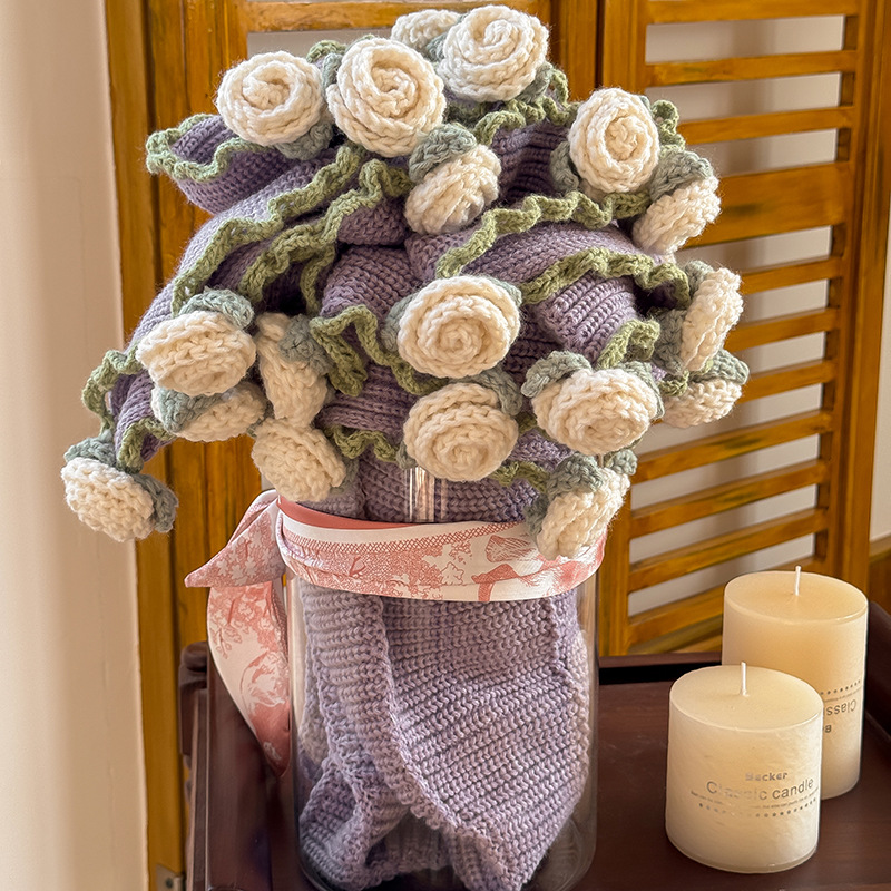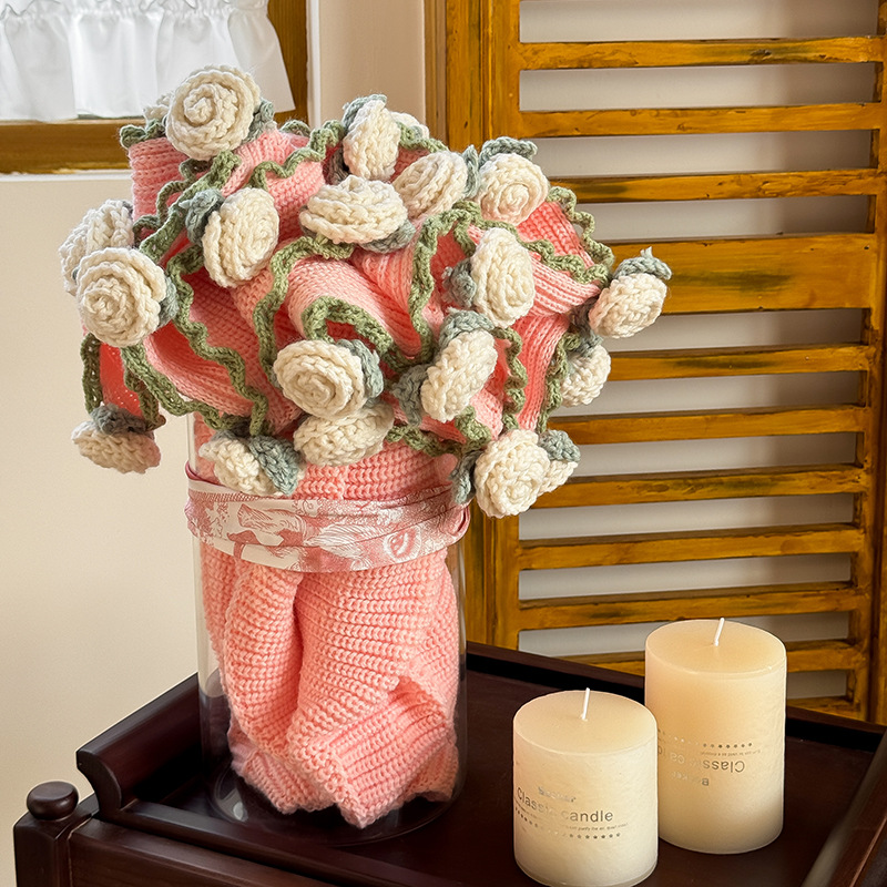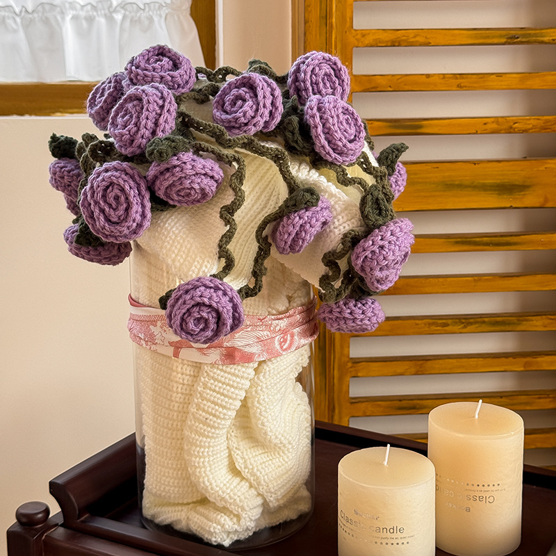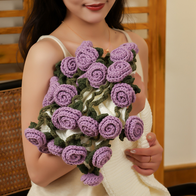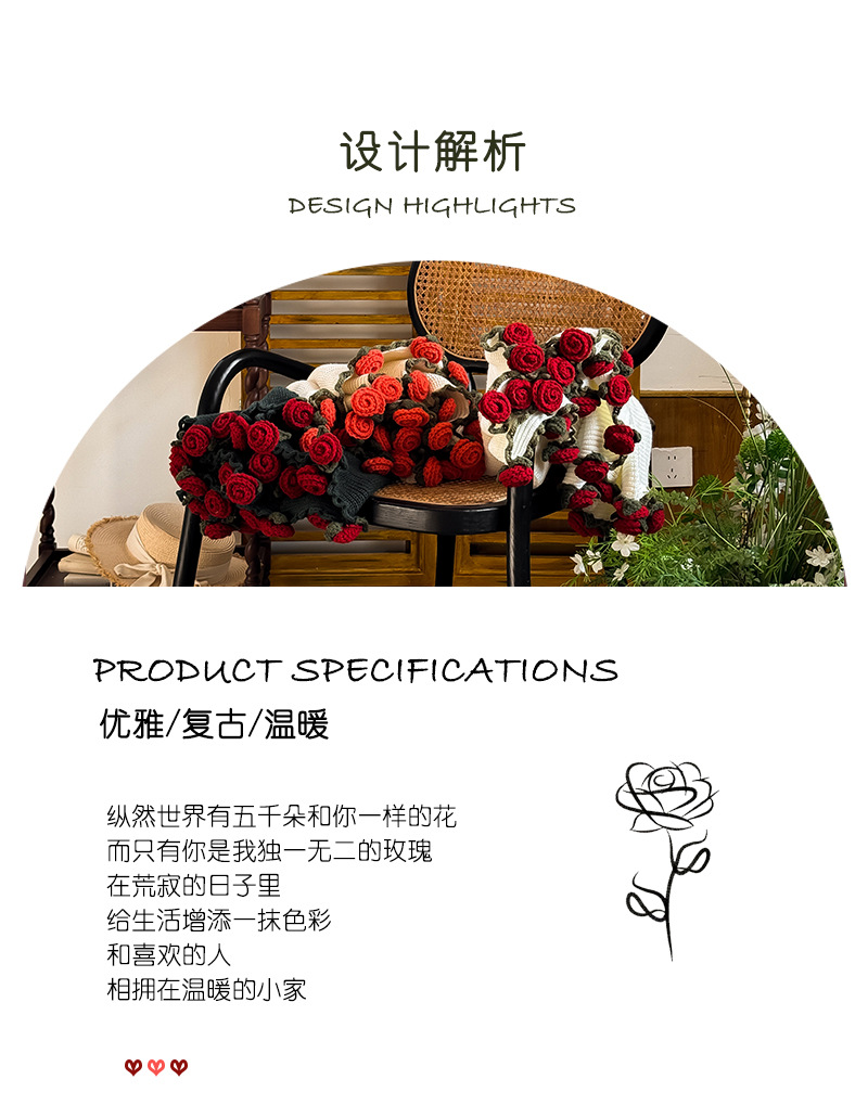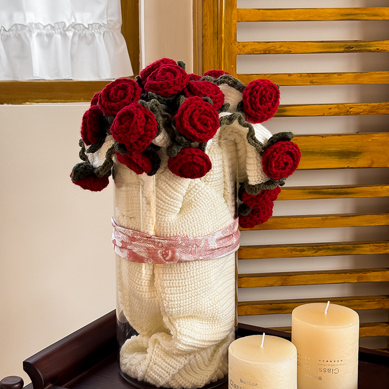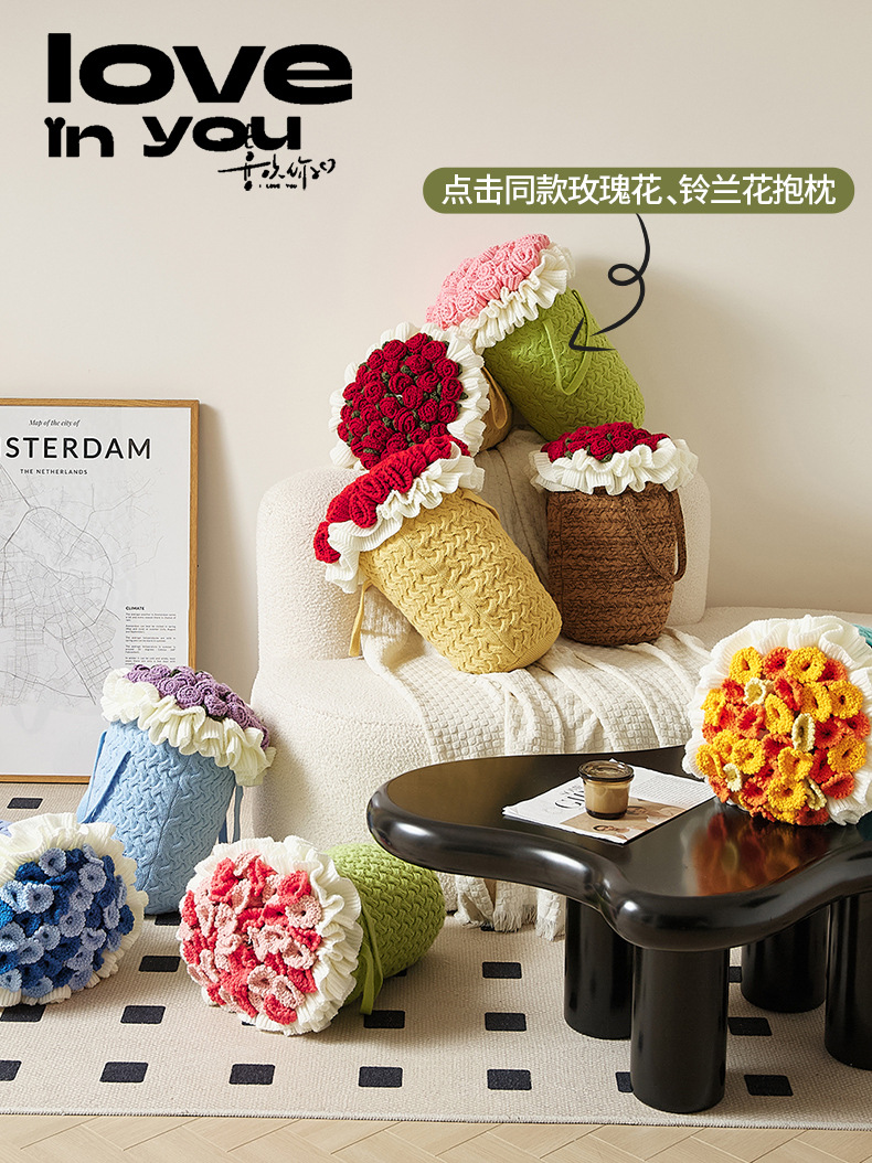 玫瑰花束成品针织毛毯子手工编织送女生礼物沙发午睡盖毯拍照道具