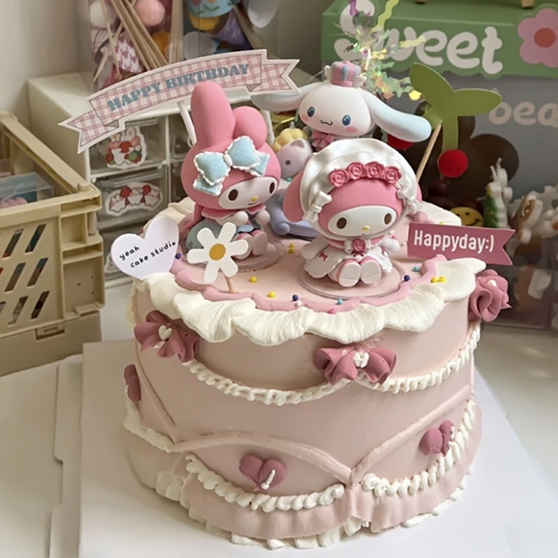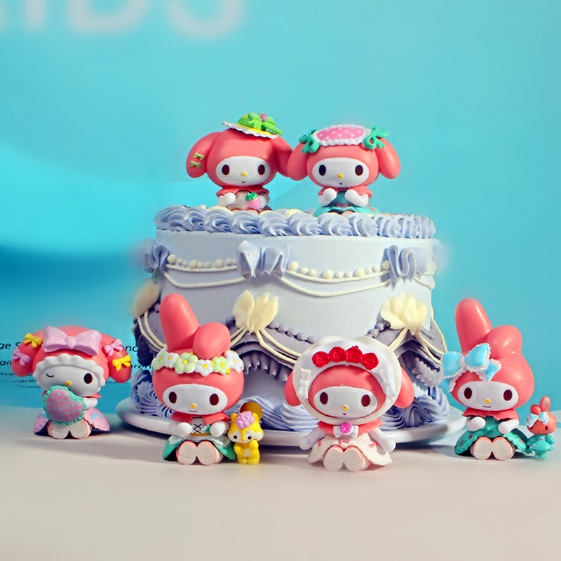 美乐迪二代茶话会手办盲盒扭蛋公仔玩具DIY蛋糕装饰生日烘焙摆件
