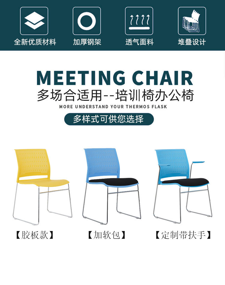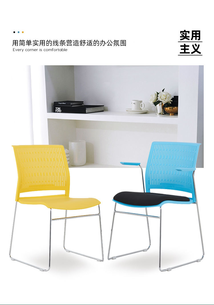 跨境代发培训椅可堆叠弓形椅靠背实心钢架办公椅会议椅会客电脑椅