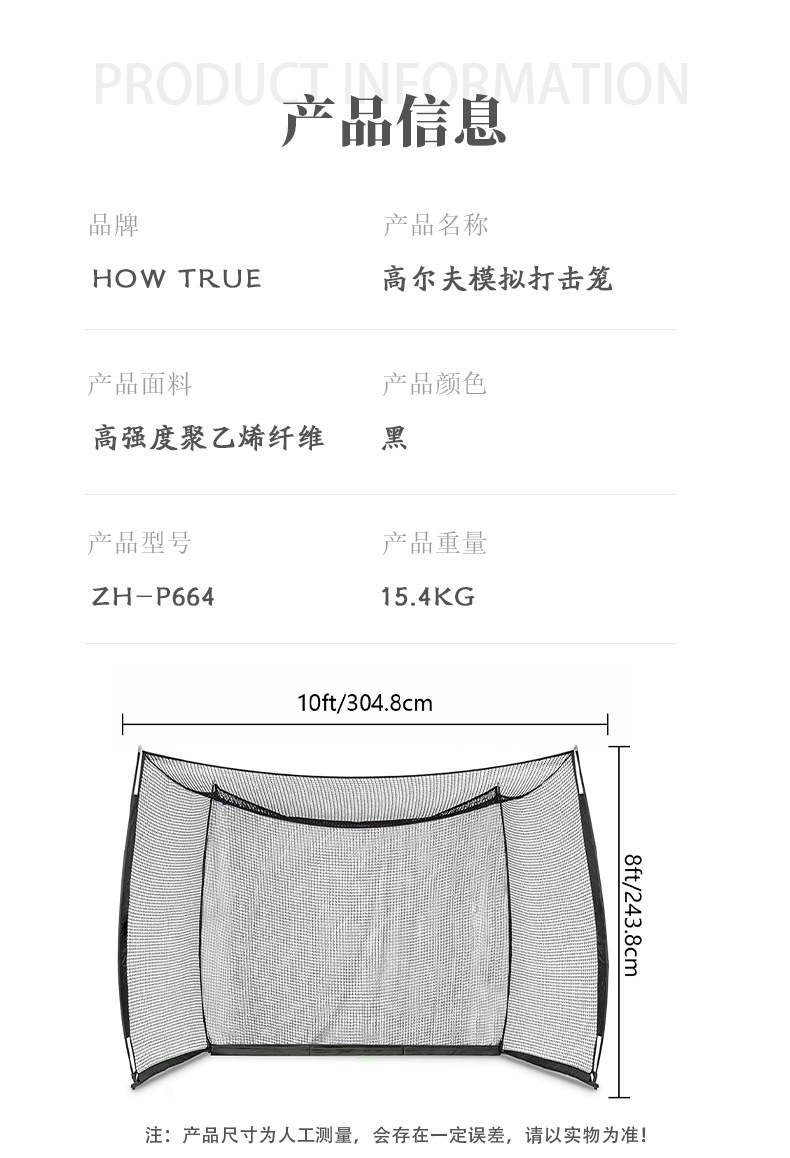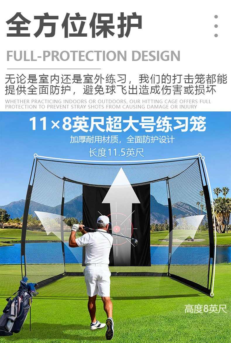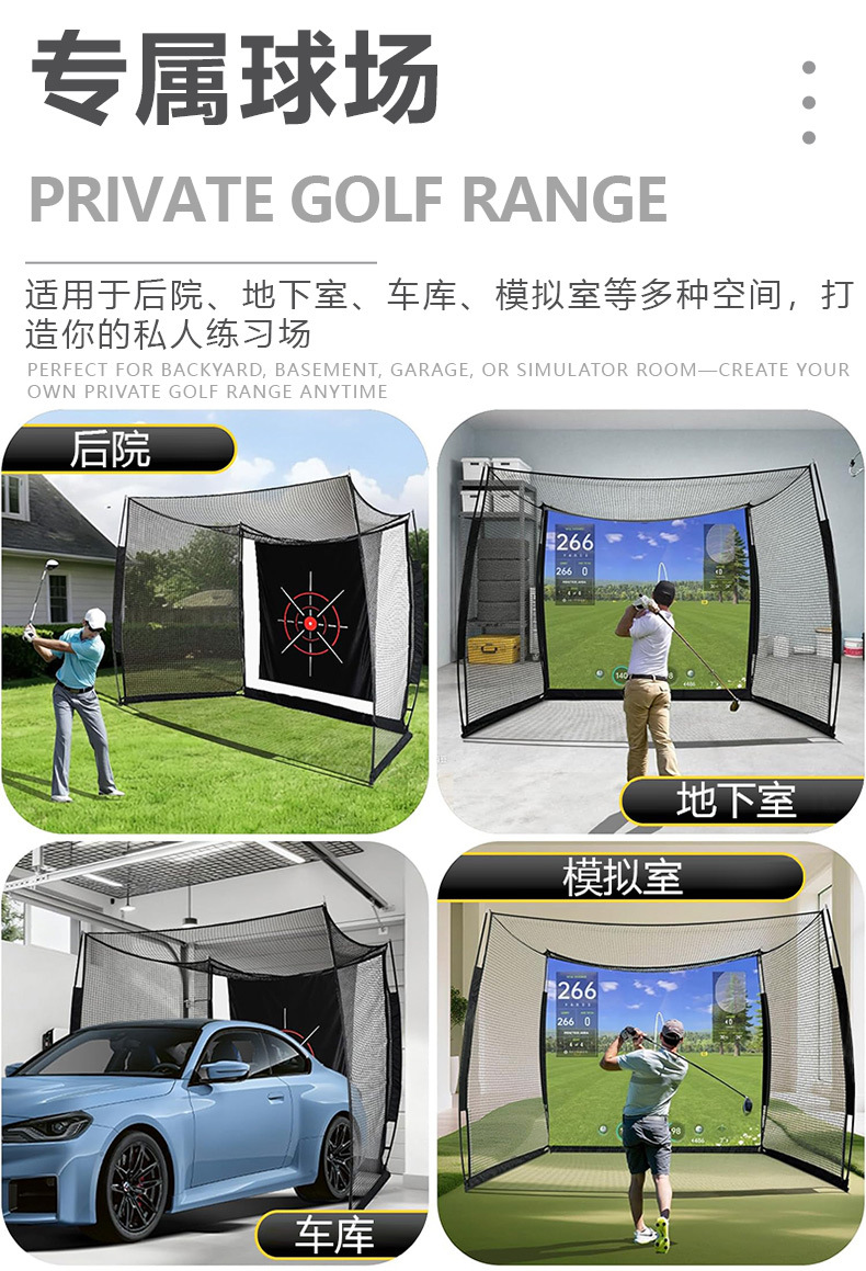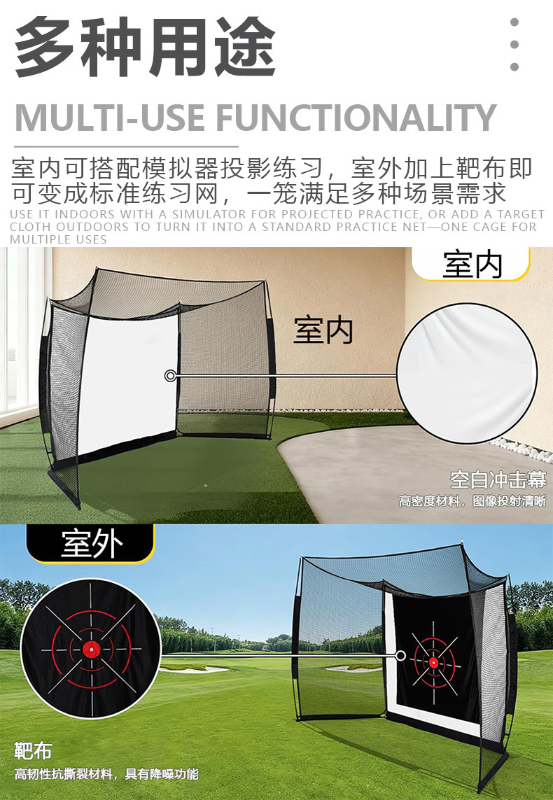 高尔夫练习网10*8*5ft便携式打击网室内外挥杆练习训练网配幕布