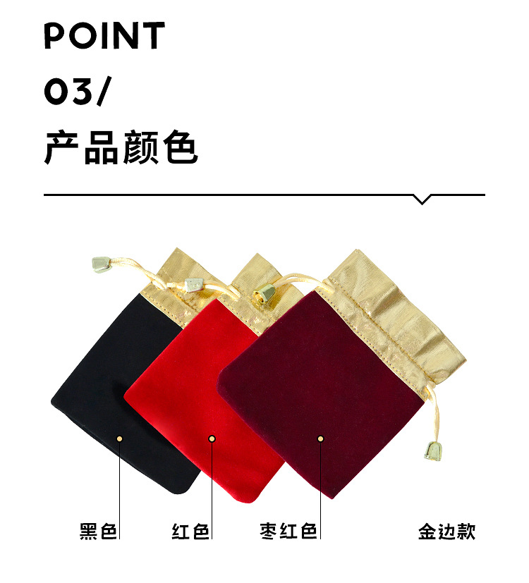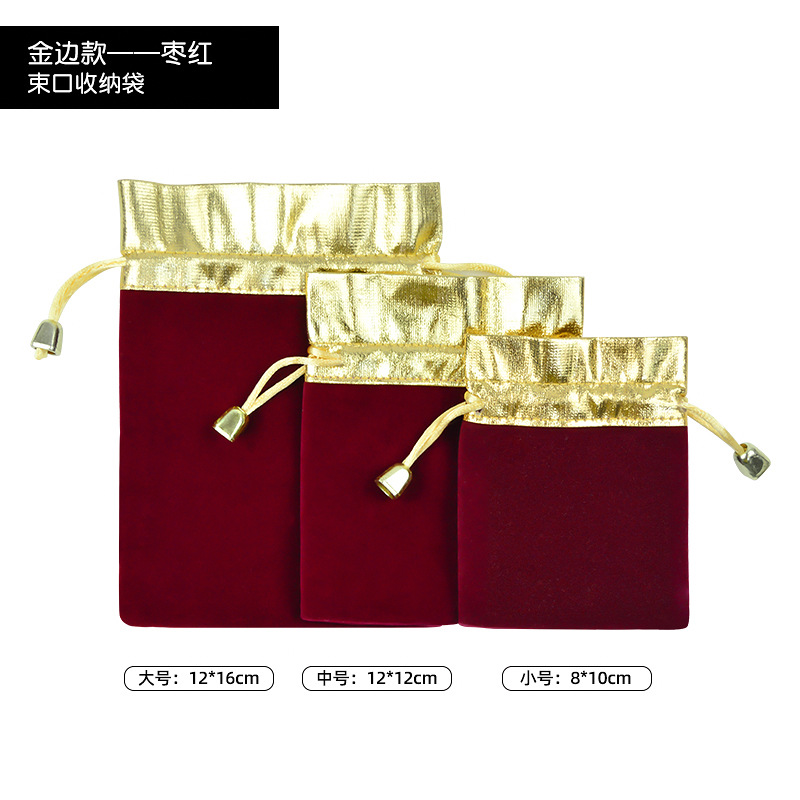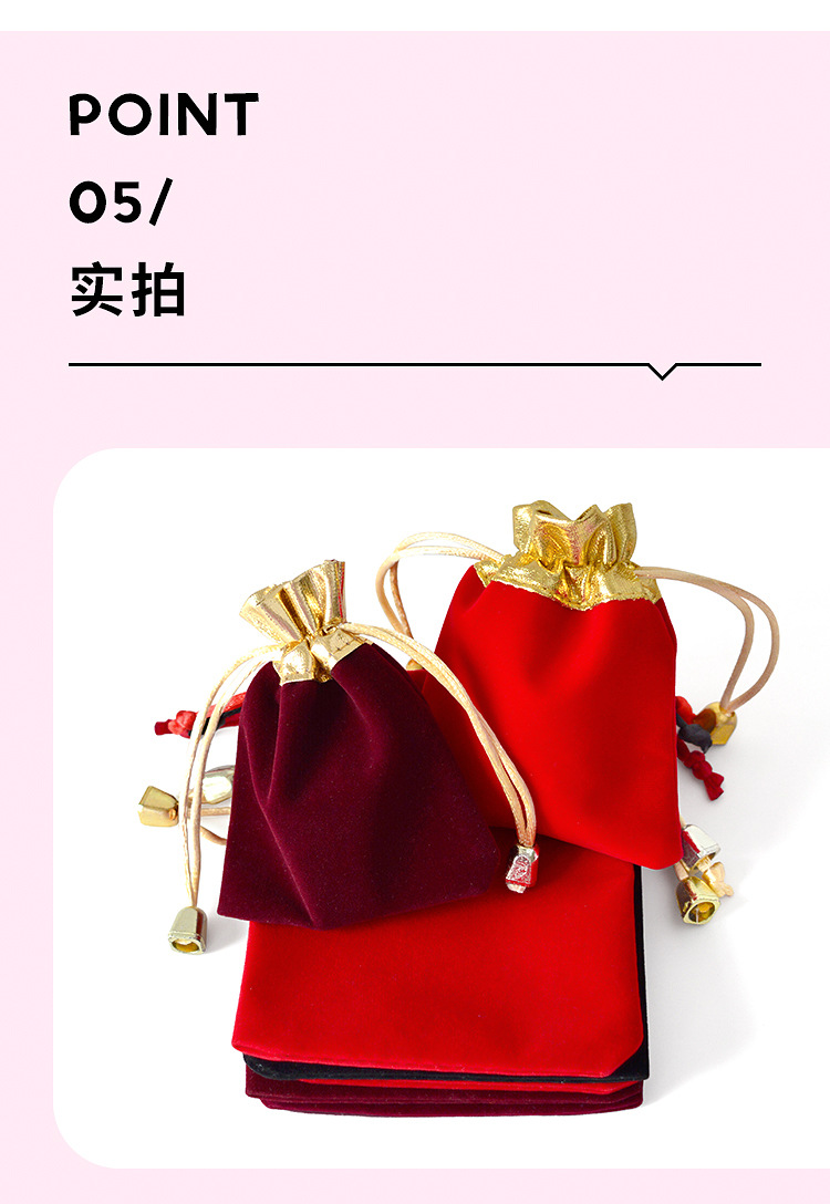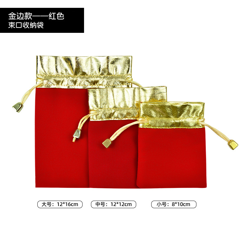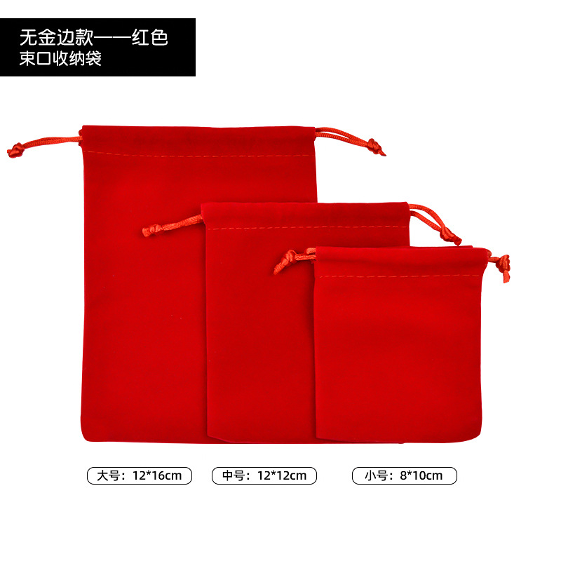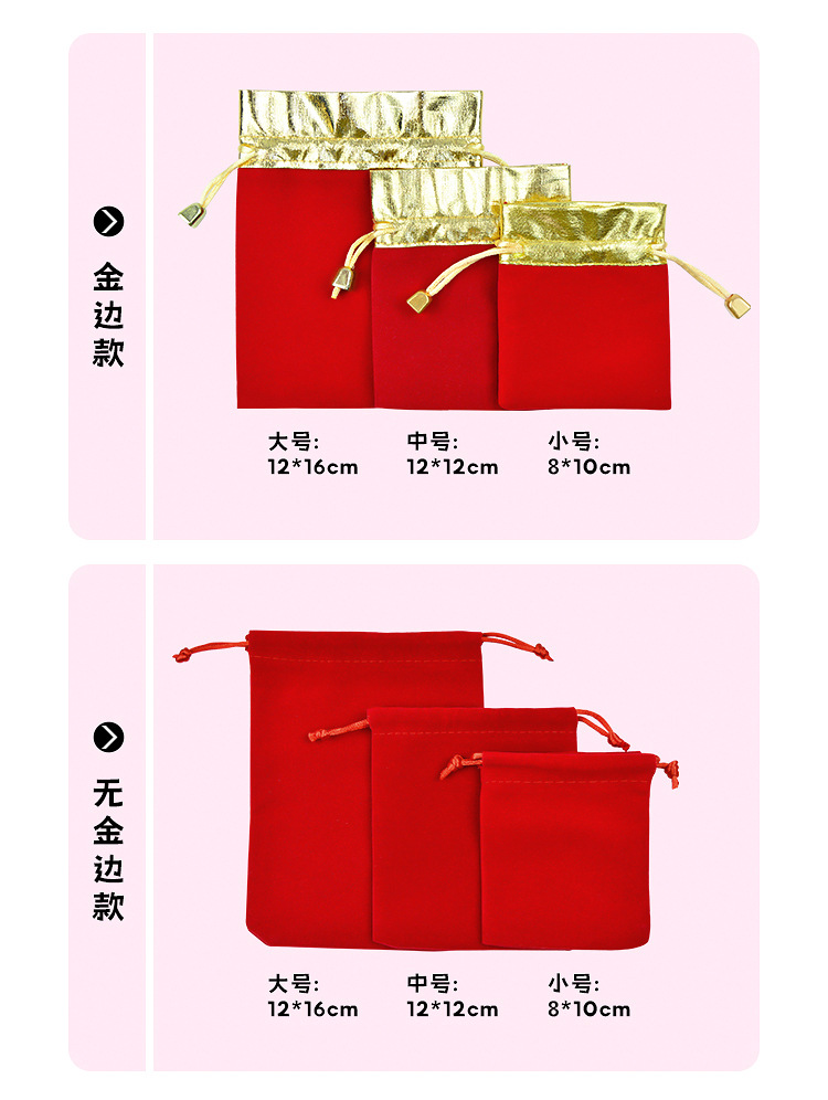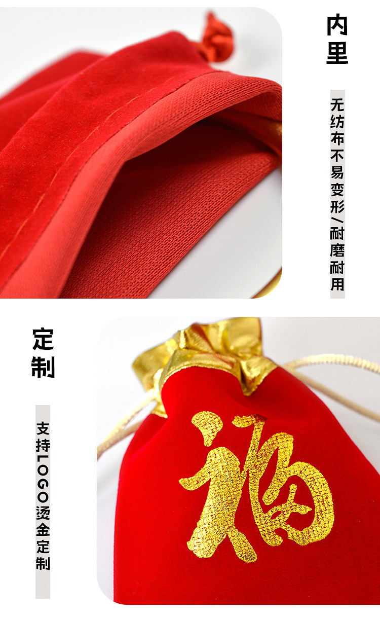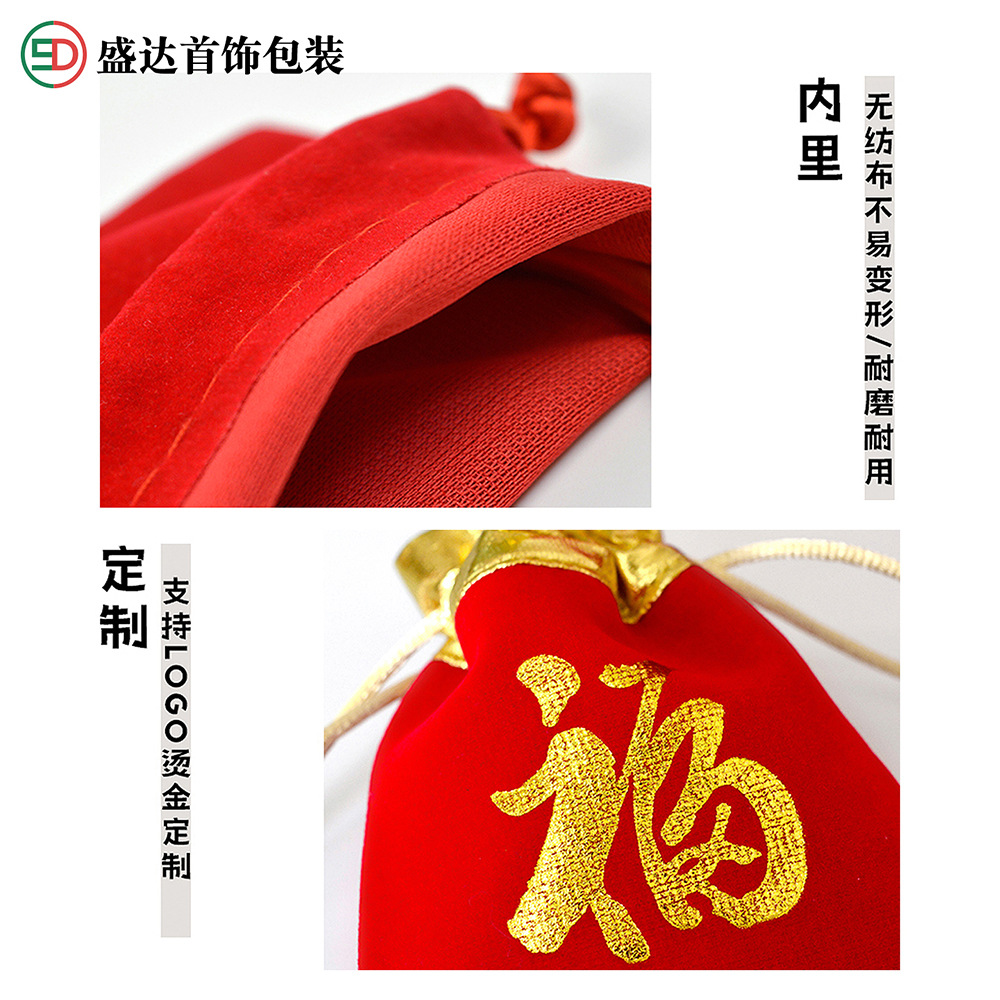抽绳束口袋珠宝饰品文玩包装袋首饰收纳袋现货红色金边福字绒布袋