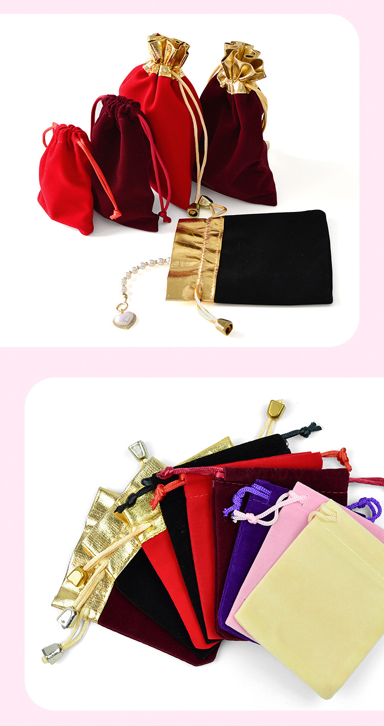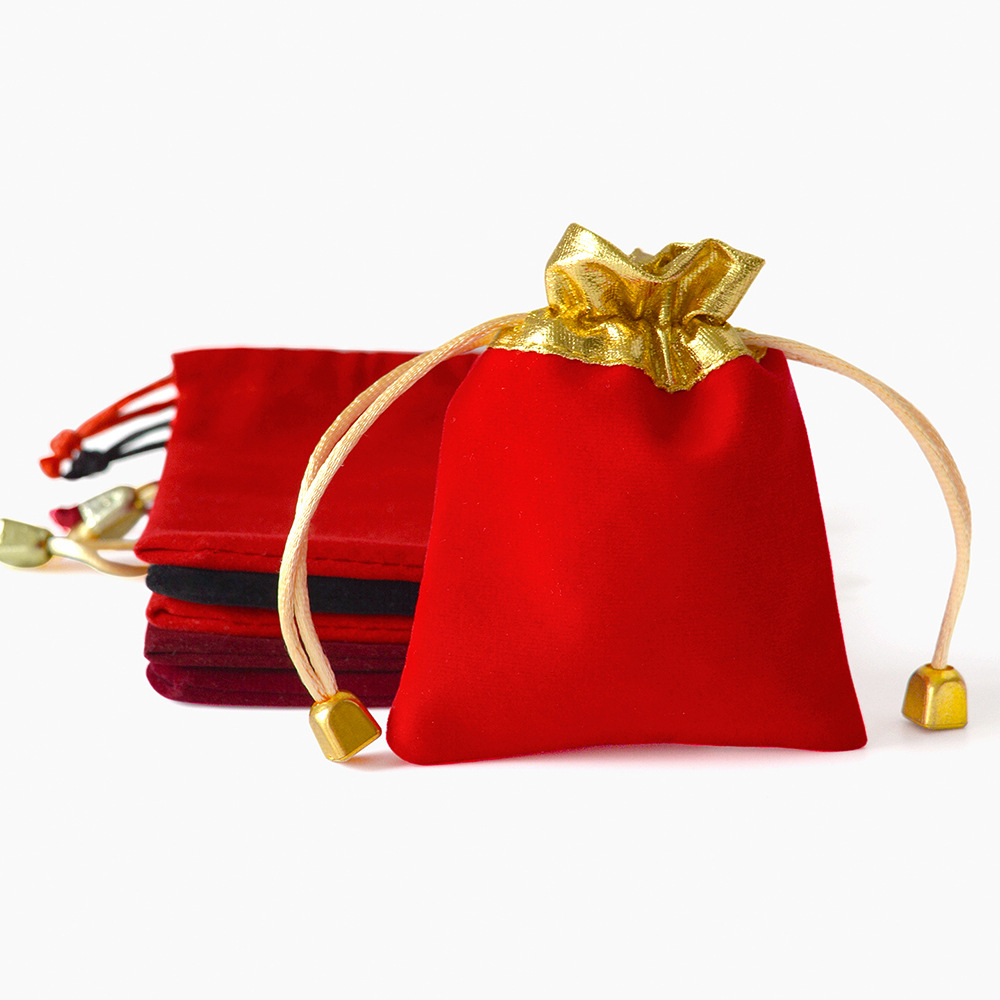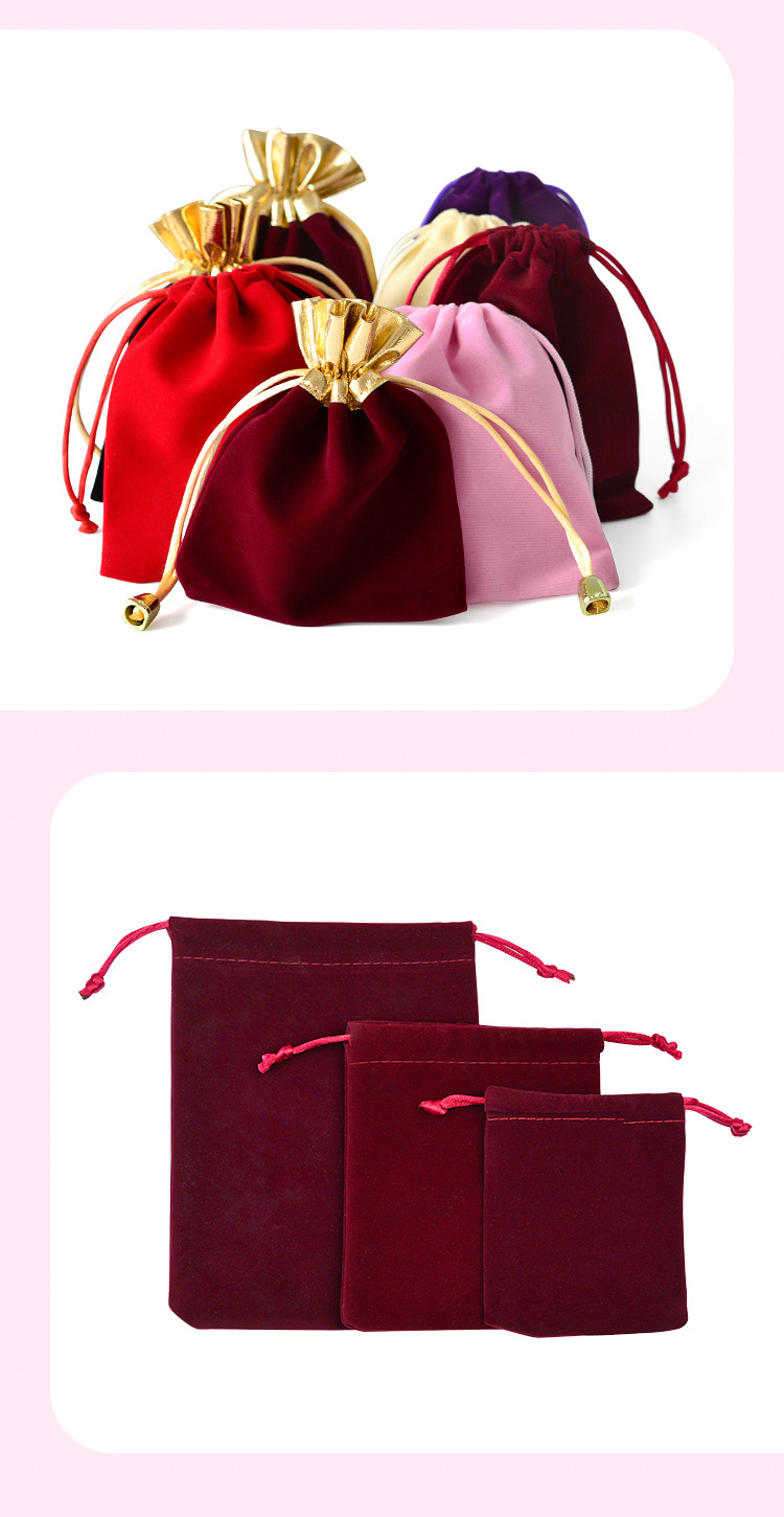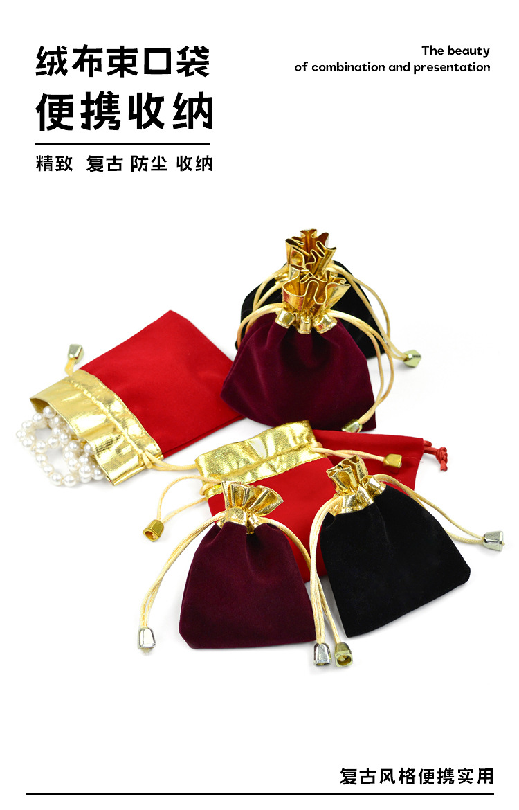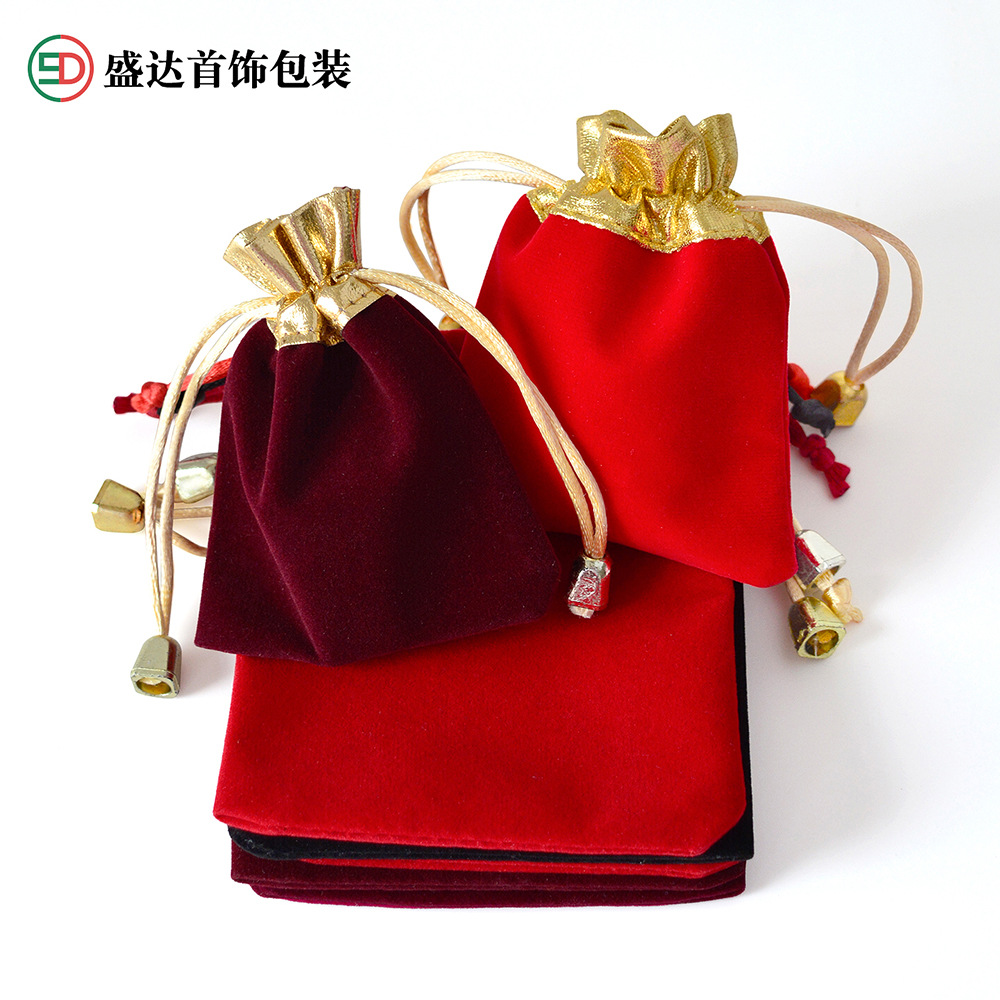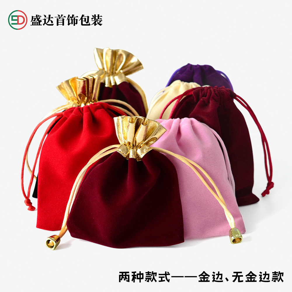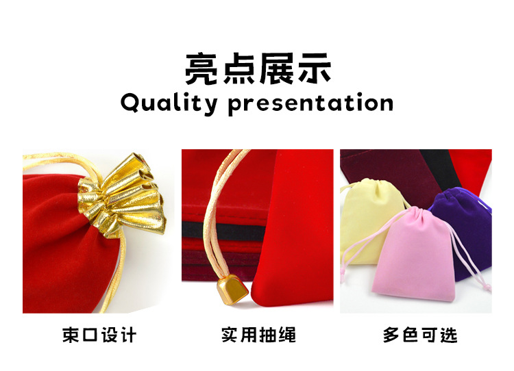 抽绳束口袋珠宝饰品文玩包装袋首饰收纳袋现货红色金边福字绒布袋