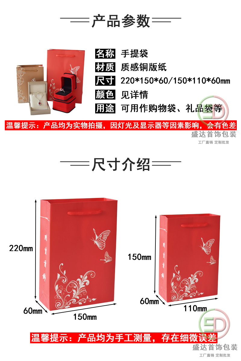 珠宝首饰袋手提袋纸袋饰品包装袋戒指项链吊坠礼品袋送人批发现货