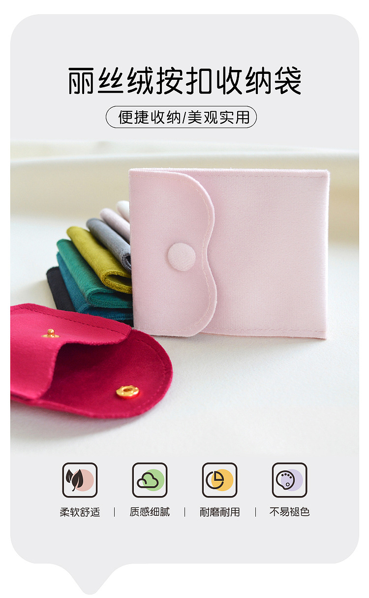 丝绒首饰袋按扣文玩文创保养收纳袋戒指项链饰品包装绒布袋