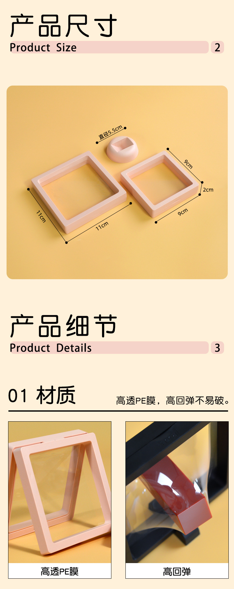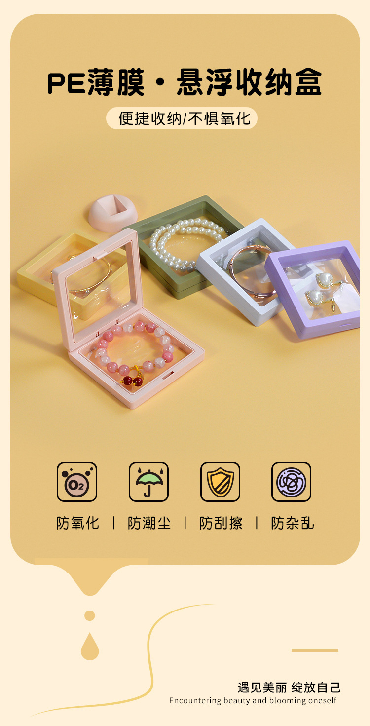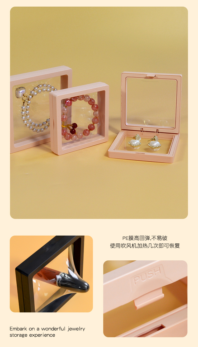 悬浮盒透明pe薄膜饰品包装盒戒指手镯项链耳环文玩手串首饰盒批发