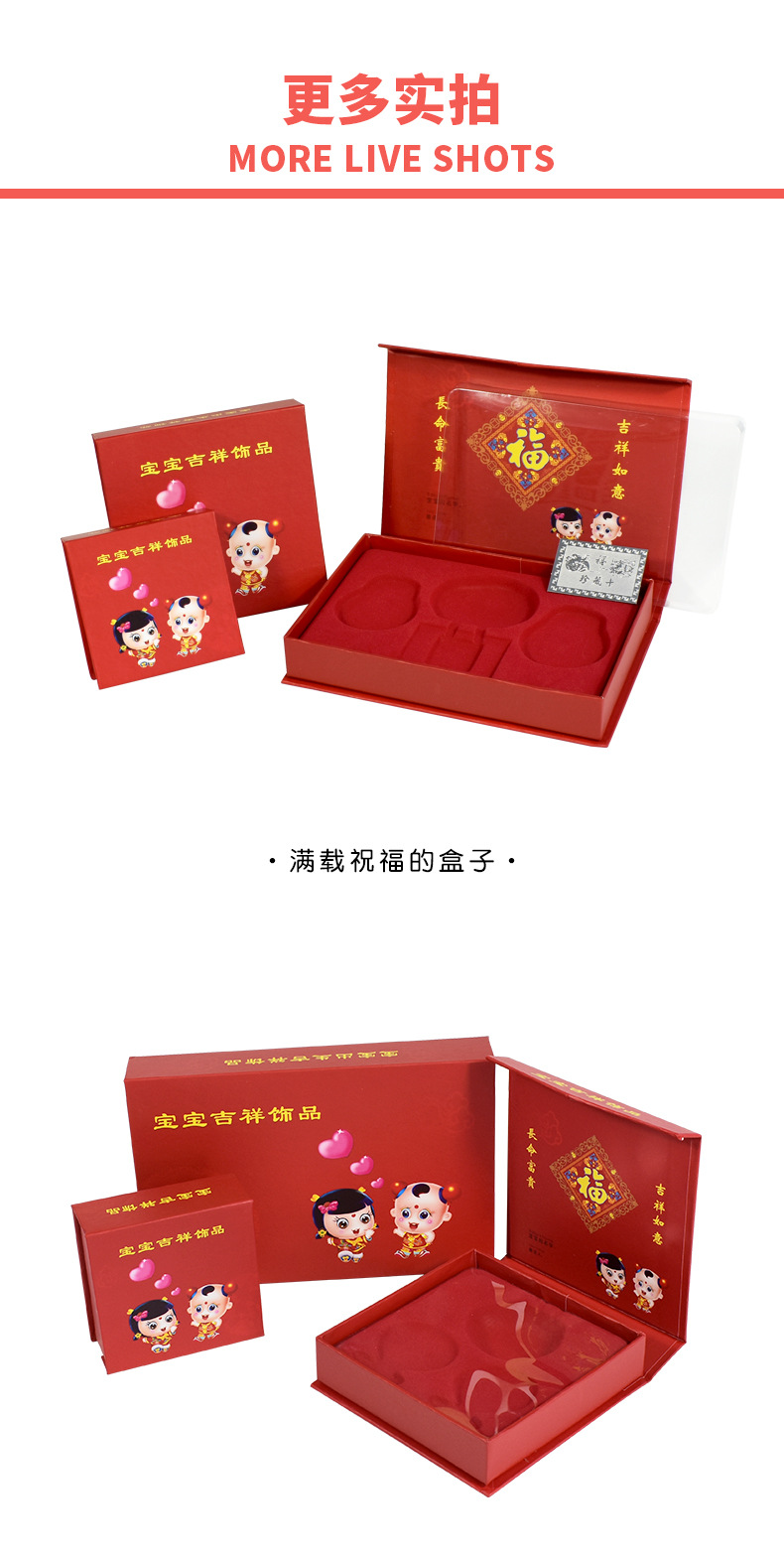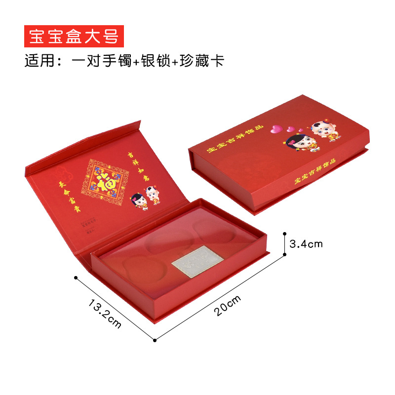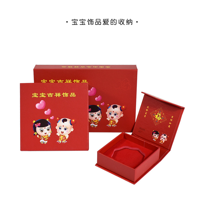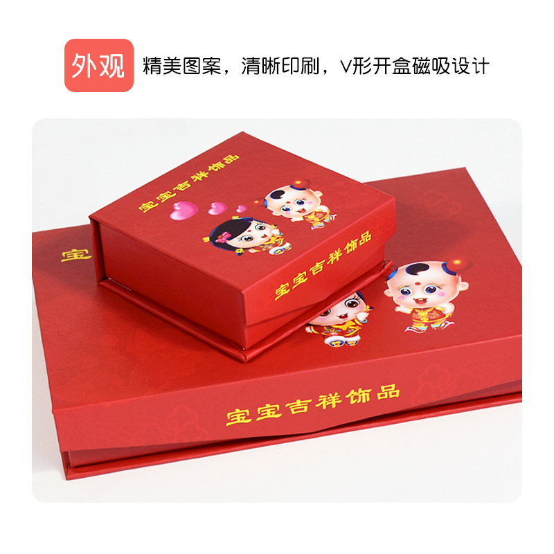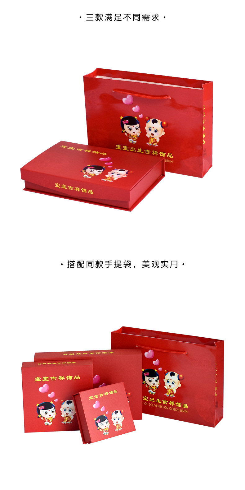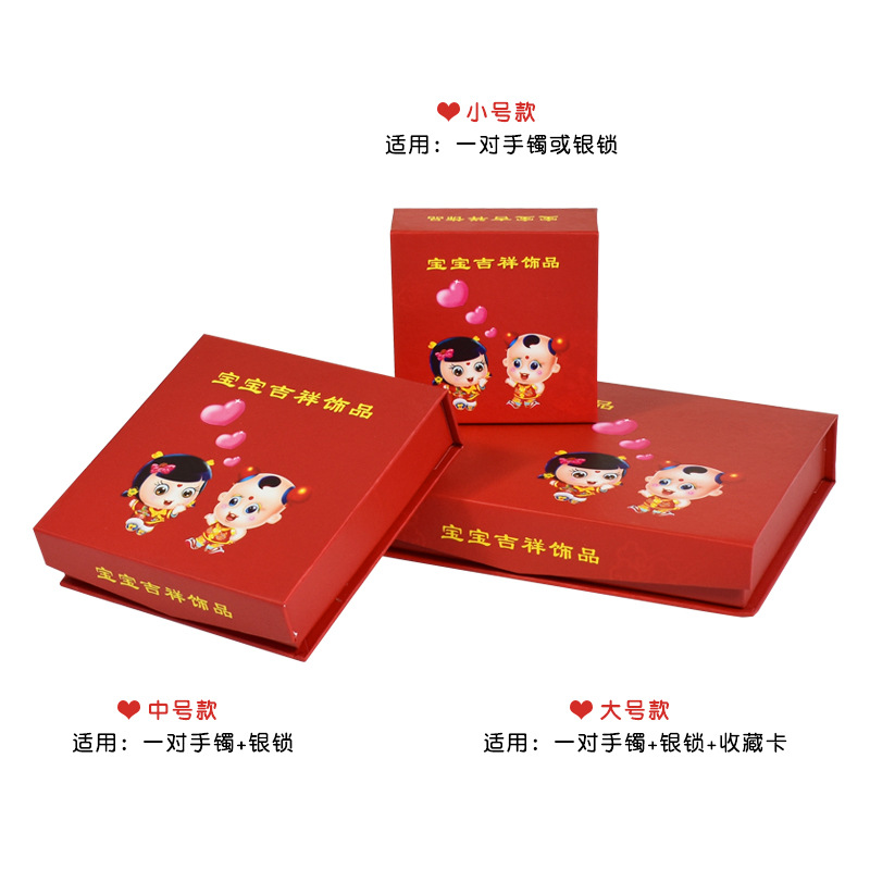 宝宝银项圈手镯套装盒长命锁包装首饰盒满月婴儿银饰品收纳礼品盒