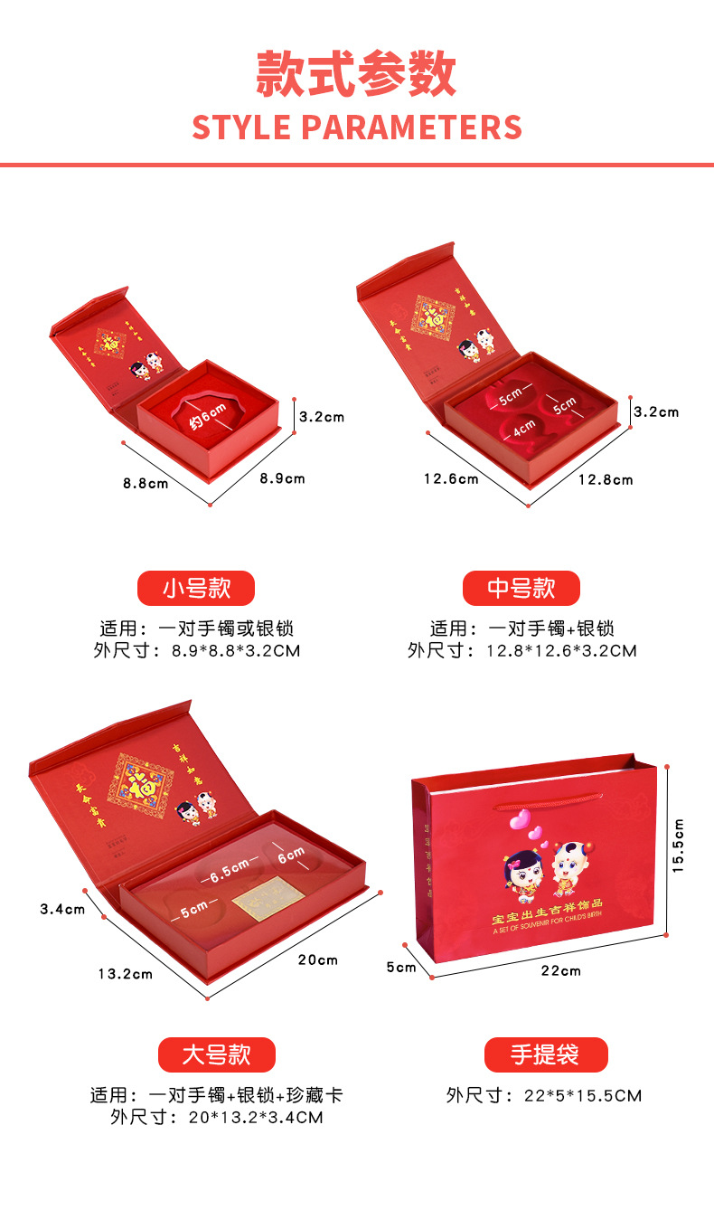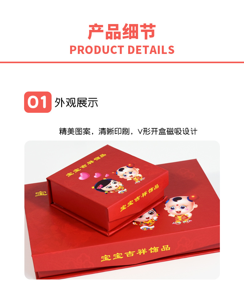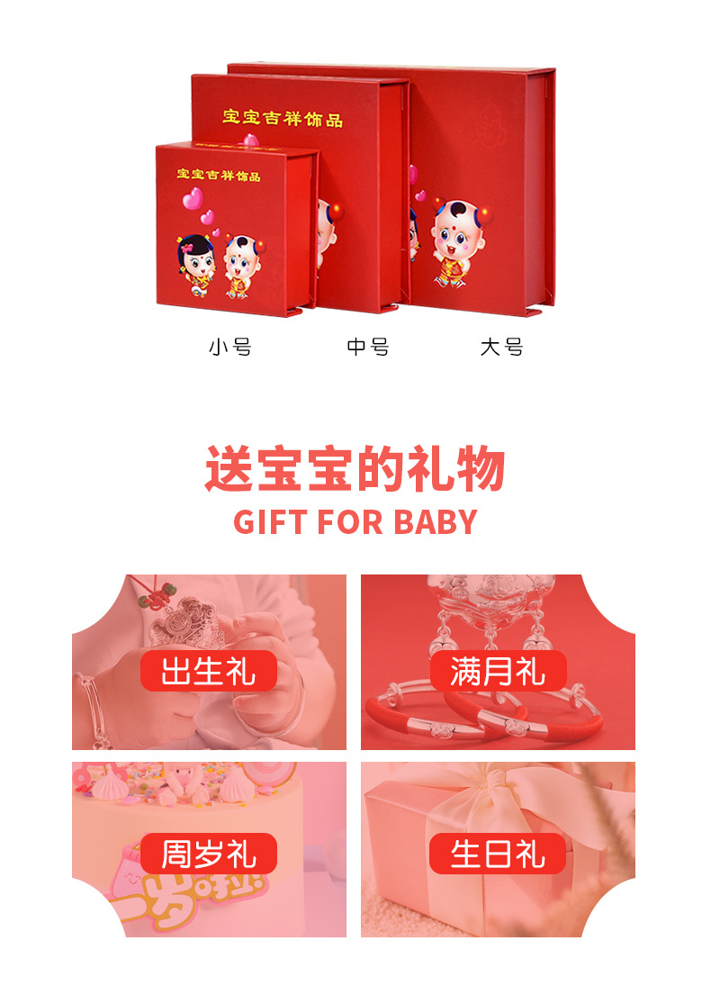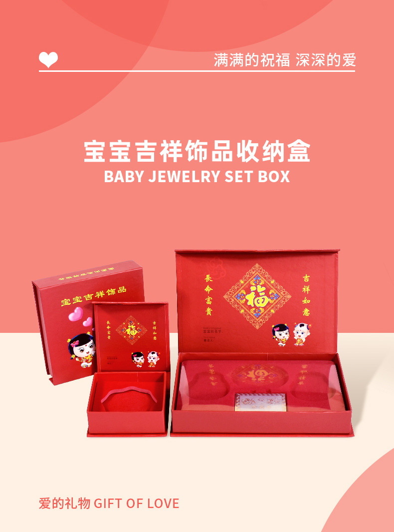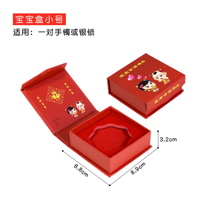 宝宝银项圈手镯套装盒长命锁包装首饰盒满月婴儿银饰品收纳礼品盒
